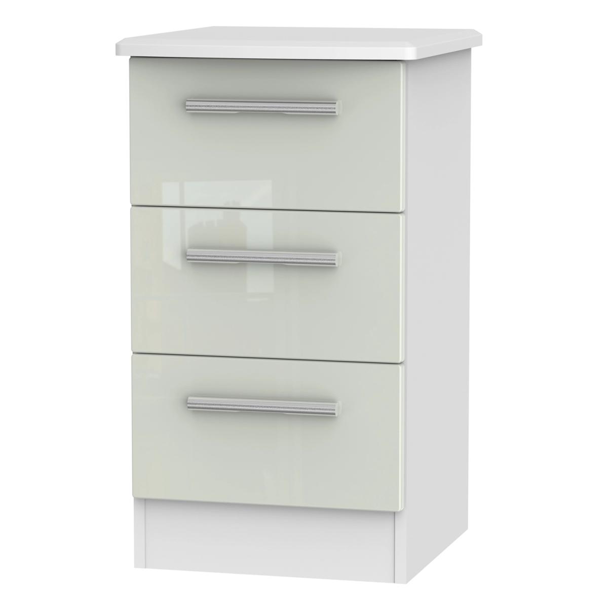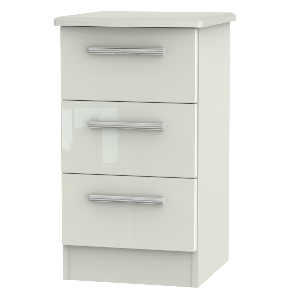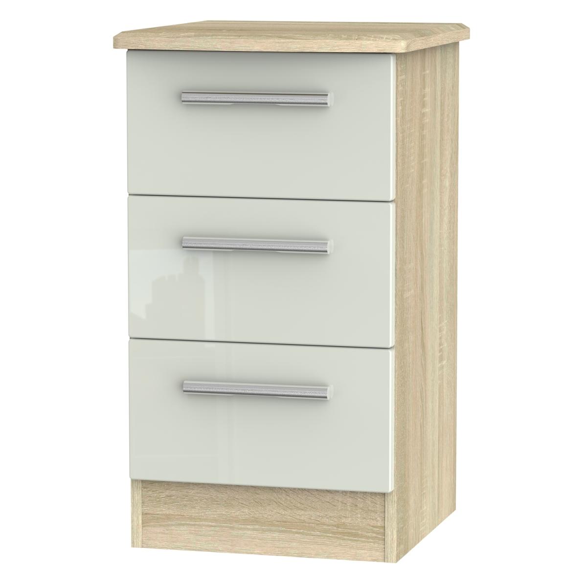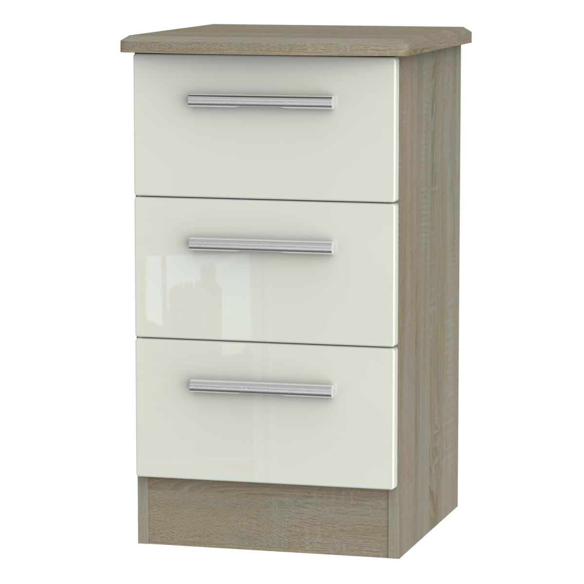 Using a combination of style and practicality, the Kensington Kashmir Three Drawer Locker is beautifully crafted with a Kashmir gloss finish to give you spacious storage for everyday use. The durable and versatile unit is perfect for housing important paperwork in your office or storing away clothing in the bedroom. The simple drawers are sturdy and robust, using a dowel and glue joinery, and gliding smoothly on metal runners. Its metal handles are rounded and slim, adding to the glossy exterior and creating depth and character to the simple design. The minimalist yet contemporary style matches well with modern interior decor, perfect to place in a small corner, turning your house into a stylish home.