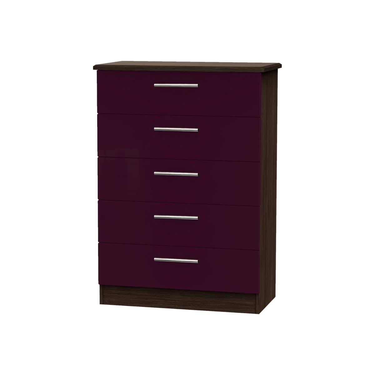 Combining style and practicality, the Kensington Five Drawer Locker is beautifully crafted with a high gloss finish to give you spacious storage for everyday use. The durable and versatile unit is perfect for housing important paperwork and folders in your office or storing away clothing in the nursery or bedroom. The simple drawers are sturdy and robust by using a dowel and glue joinery, and glide smoothly on metal runners. The chrome finished metal handles are rounded and slim, adding to the glossy exterior and creating depth and character to the simple design. The minimalist style matches well with modern interior decor, perfect to place in a small corner, turning your house into a stylish home.