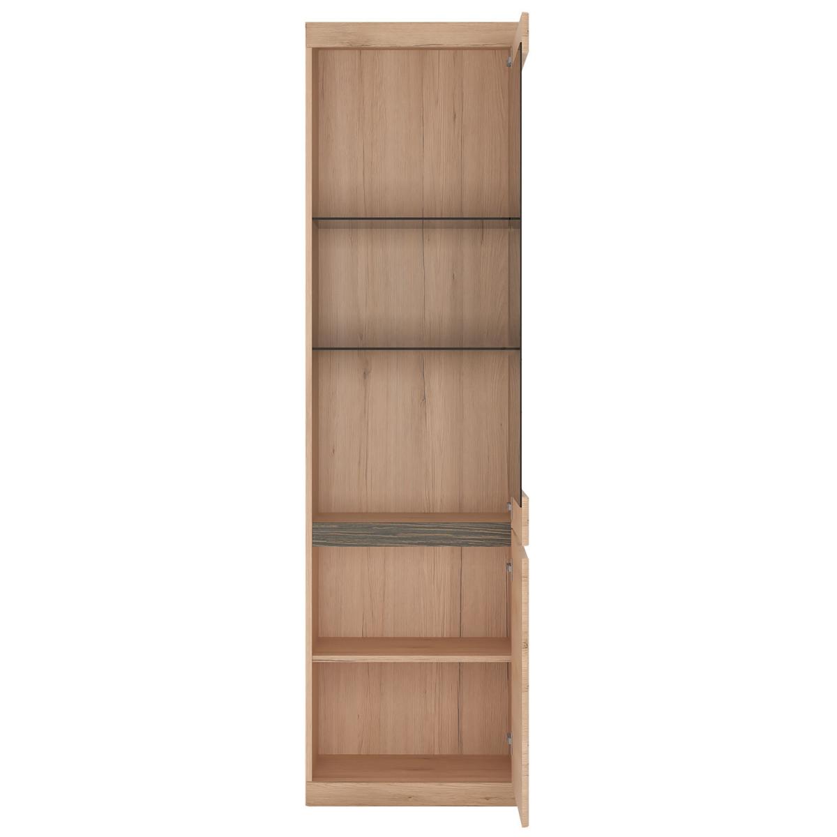 The fantastic grained oak finish with the contrasting dark trim on this Kensington Tall 2-Door Display Cabinet makes it a piece of modern top-quality furniture for the living room. Ideal for the most modern or traditional homes, this convenient and stylish cabinet is suitable for the living room or hallway to help you keep your ornaments and porcelain on display. It's finished with a laminated board that's resistant to damage and scratches, moisture, and high temperatures too.
