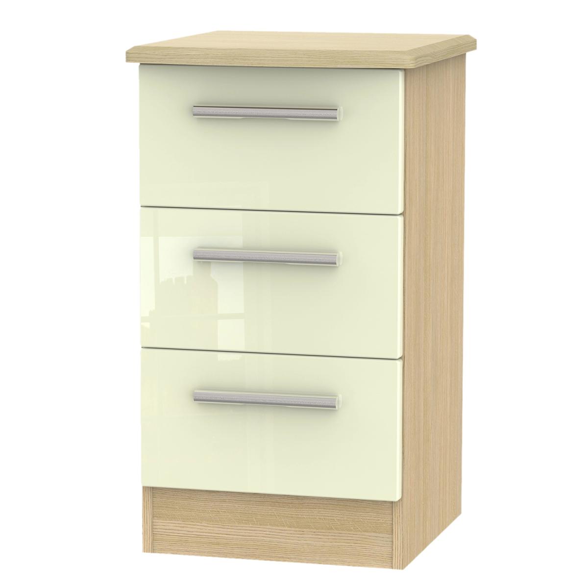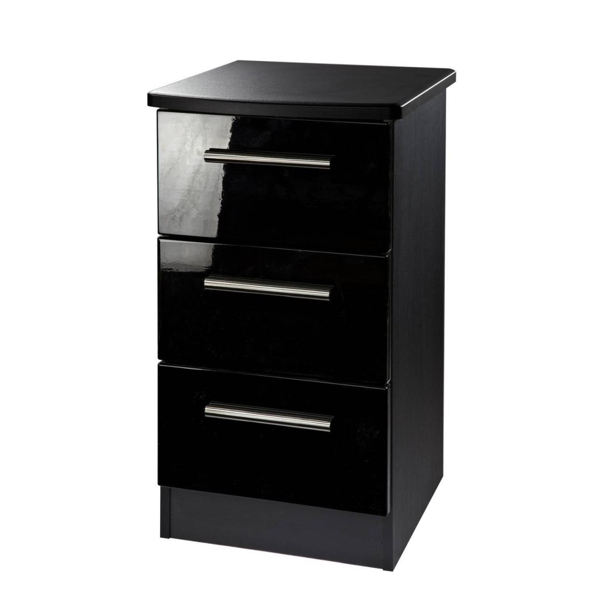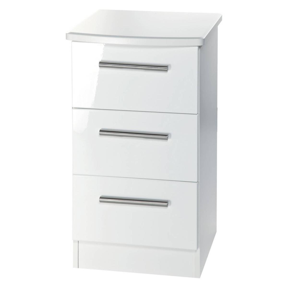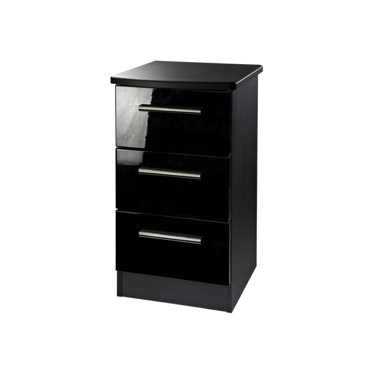 Using a combination of style and practicality, the Kensington Three Drawer Locker is beautifully crafted with a high gloss finish to give you spacious storage for everyday use. The durable and versatile unit is perfect for housing your important paperwork and folders in your office, use in your craft room to hold stationery, or store away any clothing in the nursery or bedroom. The simple drawers are sturdy and robust by using a dowel and glue joinery, and glide smoothly on metal runners. The chrome finished metal handles are rounded and slim, adding to the glossy exterior and creating depth and character to the simple design. The minimalist style matches well with modern interior decor, perfect to place in a small corner, turning your house into a stylish home.