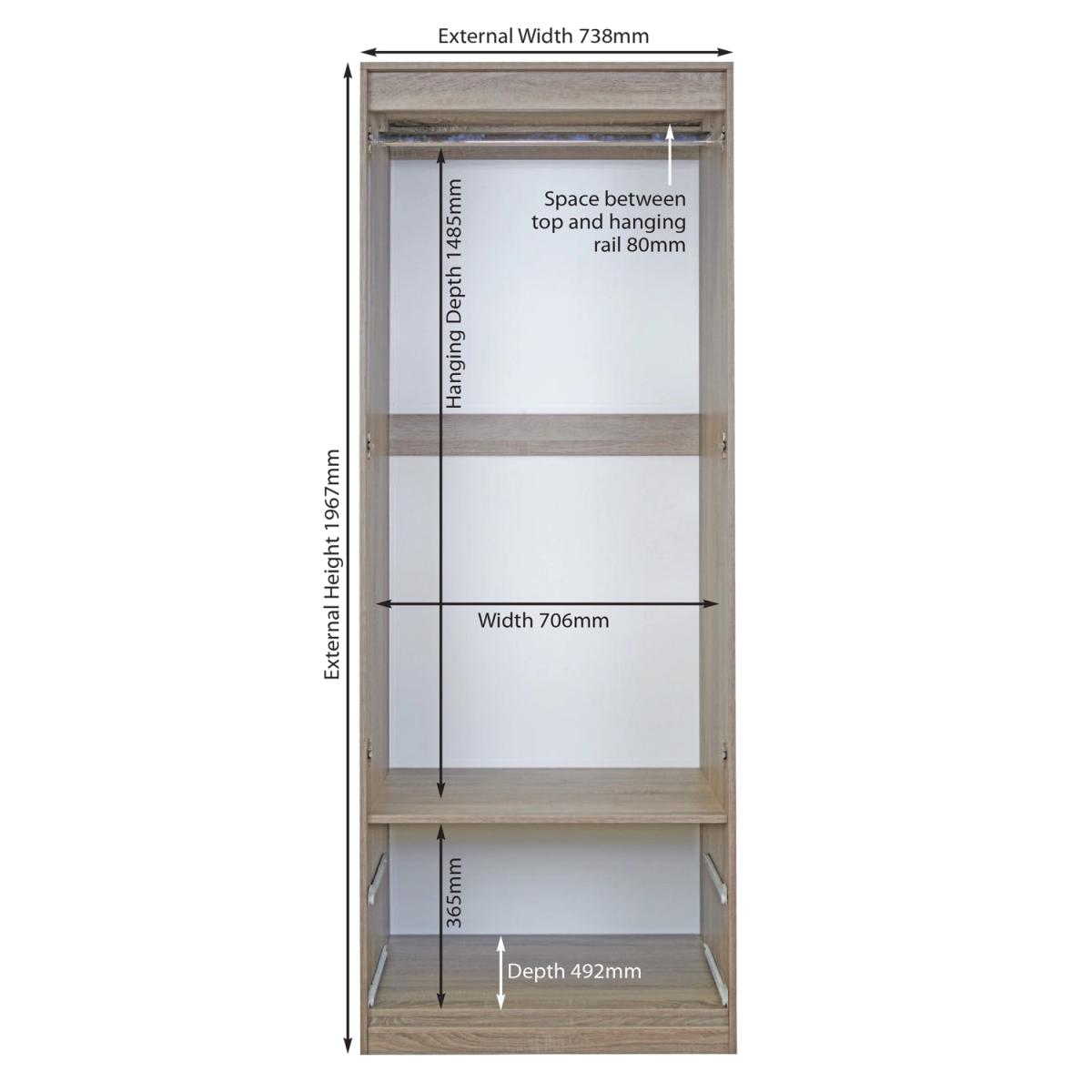 Combining style and practicality, the Kensington Two Drawer Wardrobe is beautifully crafted with a high gloss finish. Perfect for storing away your shirts and dresses on the hang rail, this wardrobe will protect your favourite garments from dust and dirt. The spacious drawers are ideal for storing away your bedding and extra clothing, using dowel and glue joinery and metal runners to create a robust and sturdy storage space. The modern and sleek design works perfectly with any contemporary interior styling, with the slim design fitting well in small corners. It is ideal to place in small bedrooms or guests rooms, creating a space saving solution for those with limited storage. Place this in any room and add a fresh style, transforming your house into a stylish home.