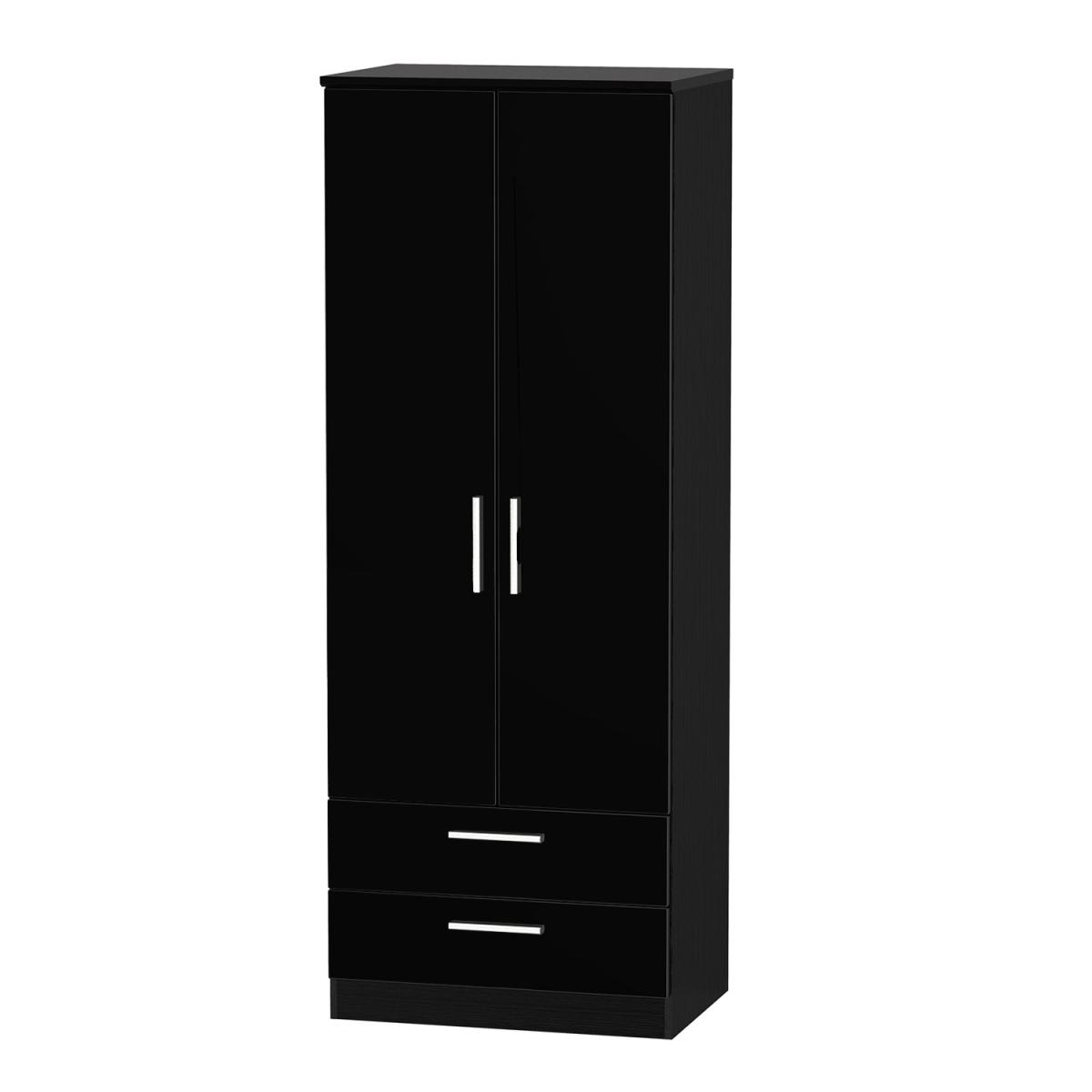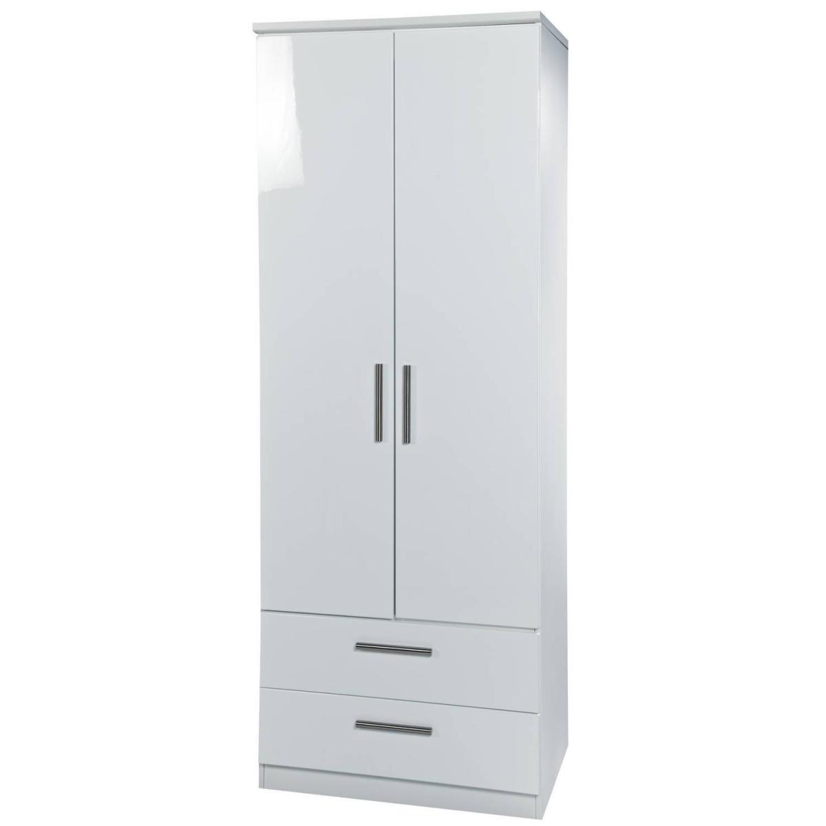 Combining style and practicality, the Kensington Two Drawer Wardrobe is beautifully crafted with a high gloss finish. Perfect for storing away your shirts and dresses on the hang rail, this wardrobe will protect your favourite garments from dust and dirt. The spacious drawers are ideal for storing away your bedding and extra clothing, using dowel and glue joinery and metal runners to create a robust and sturdy storage space. The modern and sleek design works perfectly with any contemporary interior styling, with the slim design fitting well in small corners. It is ideal to place in small bedrooms or guests rooms, creating a space saving solution for those with limited storage. Place this in any room and add a fresh style, transforming your house into a stylish home.