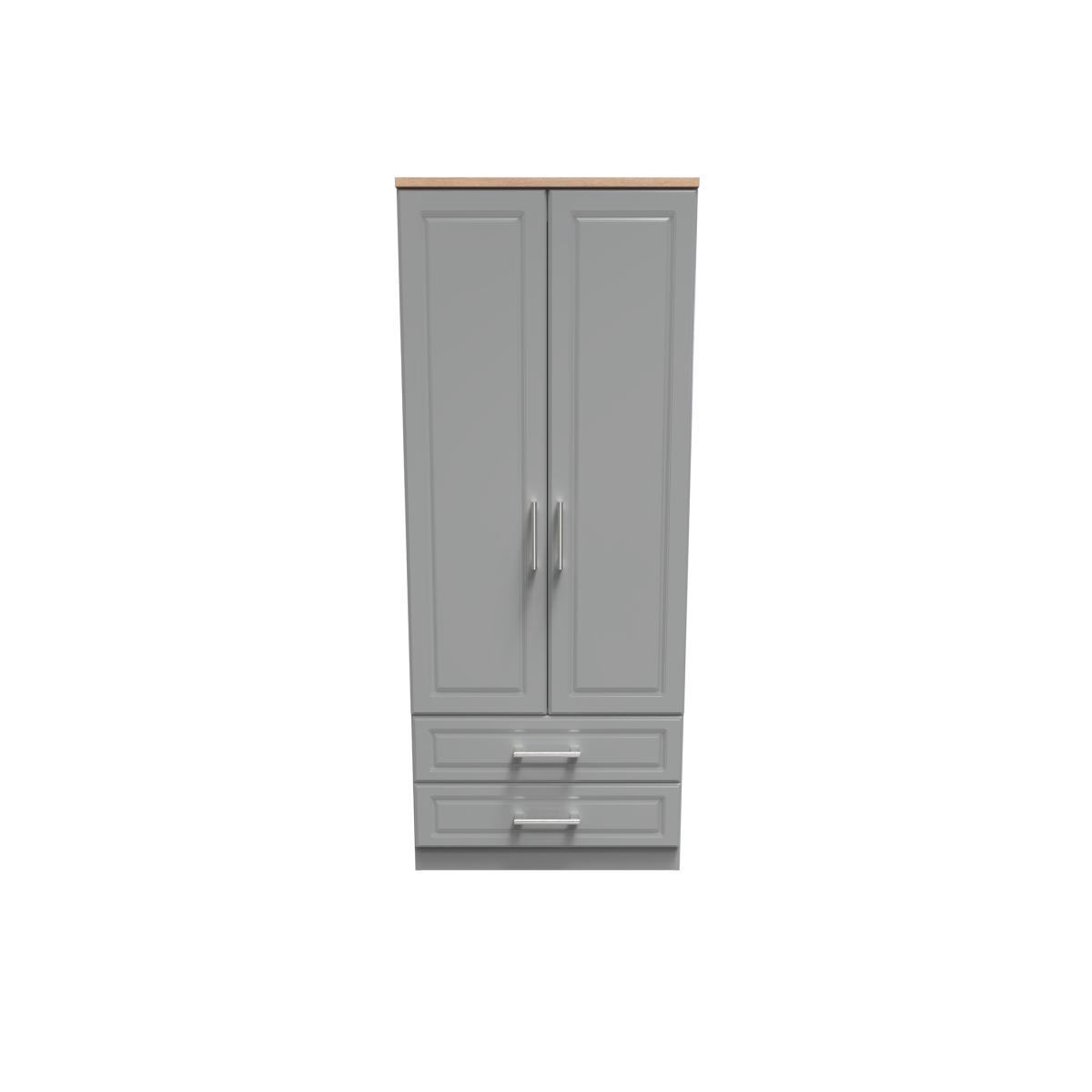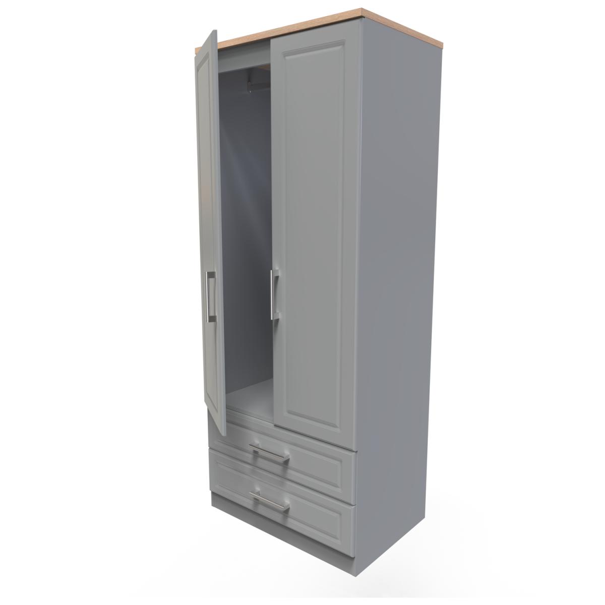 This full height double door wardrobe is perfect for any bedroom. Features the added practicality of 2 full width drawers. The Kent range uses traditional edge finishes and wood effect tops, to create a range of classic looking furniture pieces. Contrasting finishes create the tonal variations seen here with brushed steel handle mounted on wood grained fronts. All our furniture is made in the United Kingdom, to the highest quality. It is delivered direct to your location of choice by one of our two man delivery teams, and come full assembled (although legs may be removed to prevent damage in transit).