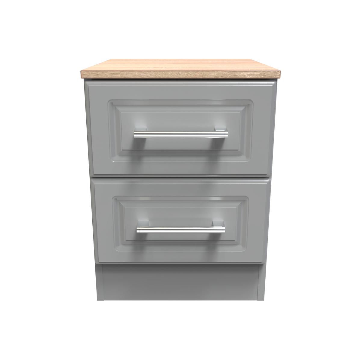 This 2 drawer bedside cabinet is practical and stylish. Perfect for any bedside or as a free standing storage unit. The Kent range uses traditional edge finishes and wood effect tops, to create a range of classic looking furniture pieces. Contrasting finishes create the tonal variations seen here with brushed steel handle mounted on wood grained fronts. All our furniture is made in the United Kingdom, to the highest quality. It is delivered direct to your location of choice by one of our two man delivery teams, and come full assembled (although legs may be removed to prevent damage in transit).
