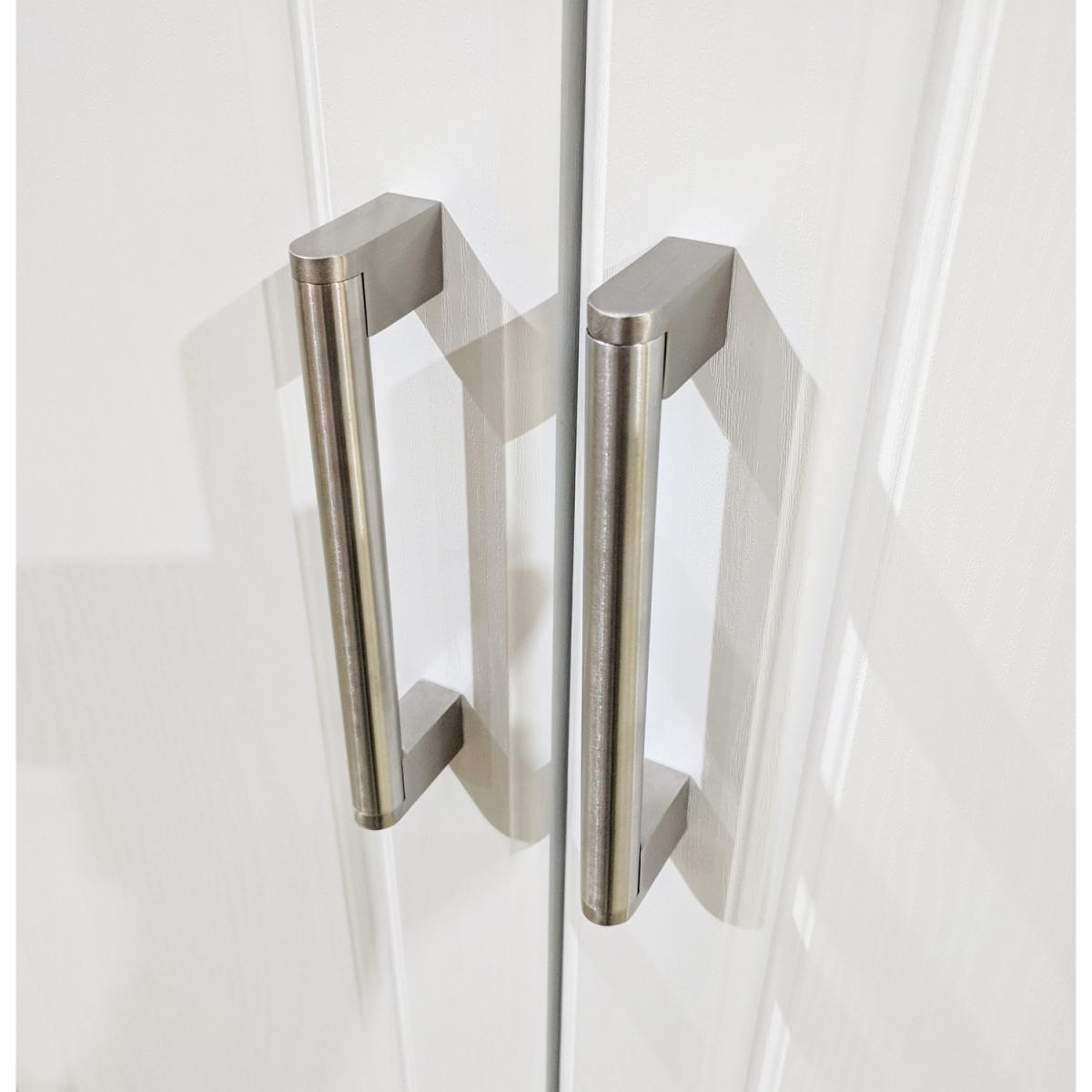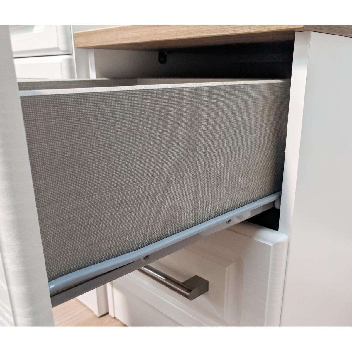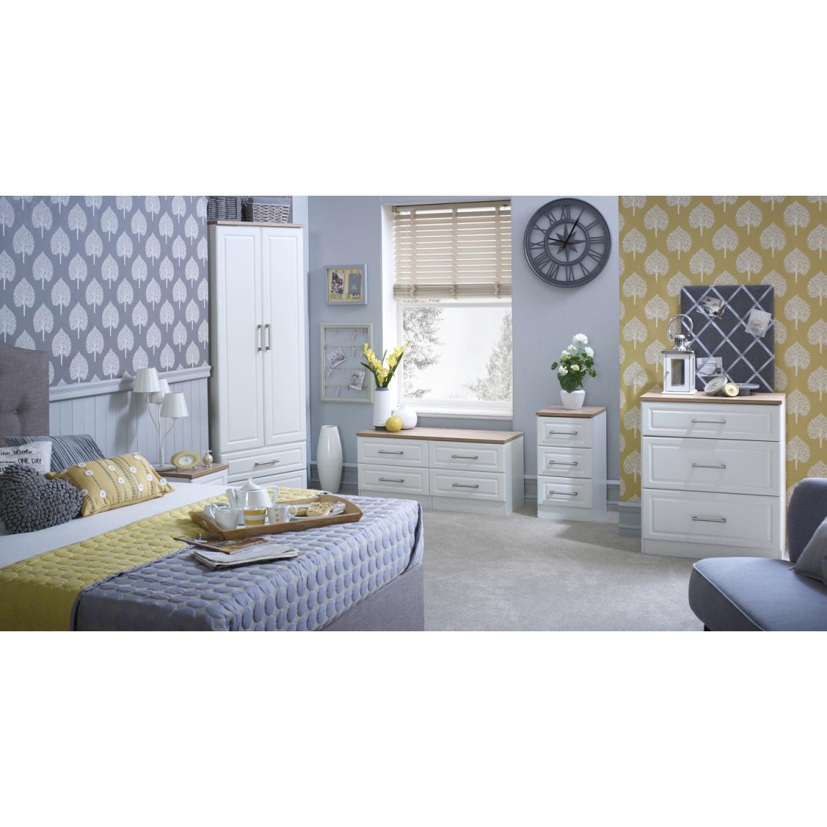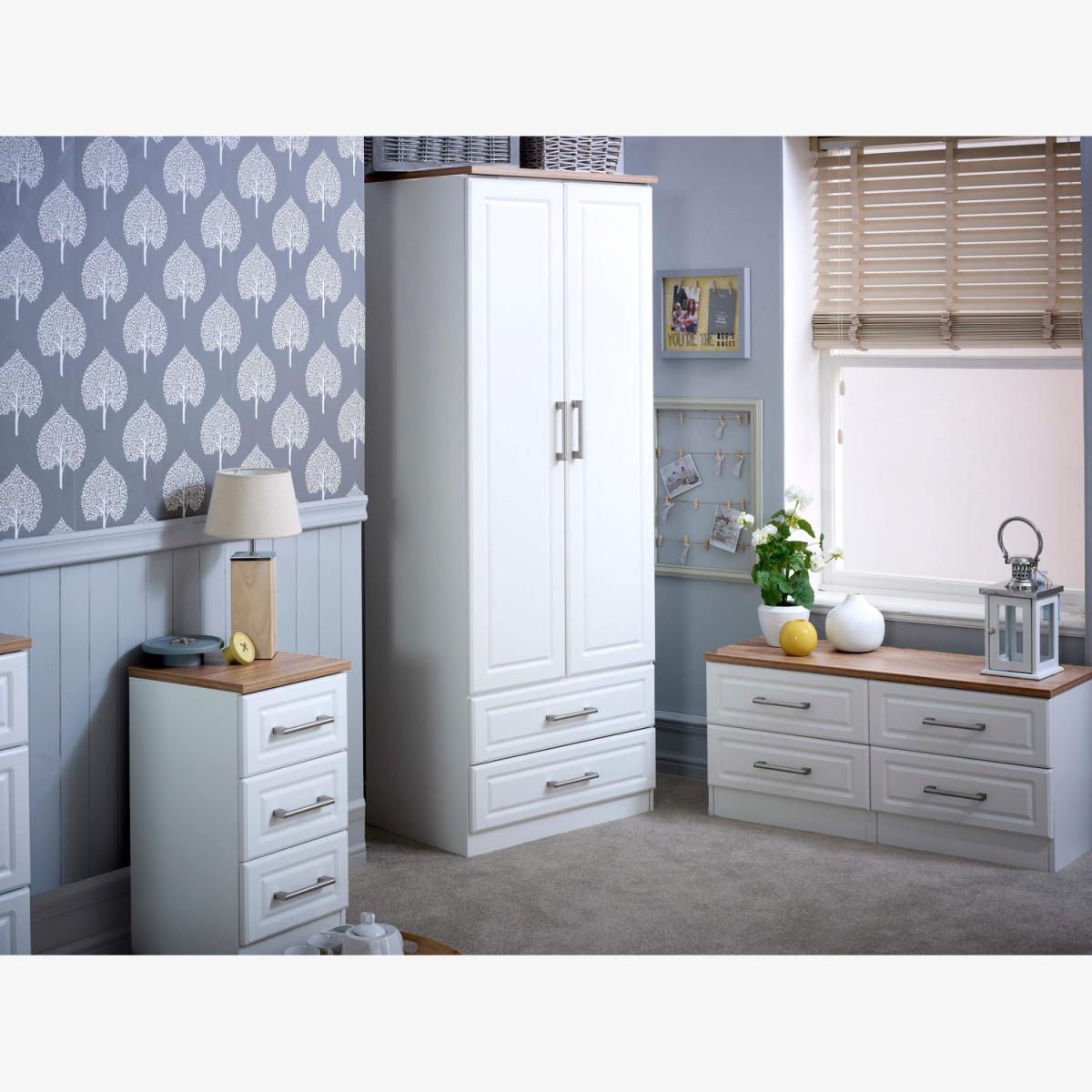 This wide 3 drawer chest of drawers is practical and stylish. Perfect for any home as a free standing storage unit. The Kent range uses traditional edge finishes and wood effect tops, to create a range of classic looking furniture pieces. Contrasting finishes create the tonal variations seen here with brushed steel handle mounted on wood grained fronts. All our furniture is made in the United Kingdom, to the highest quality. It is delivered direct to your location of choice by one of our two man delivery teams, and come full assembled (although legs may be removed to prevent damage in transit).