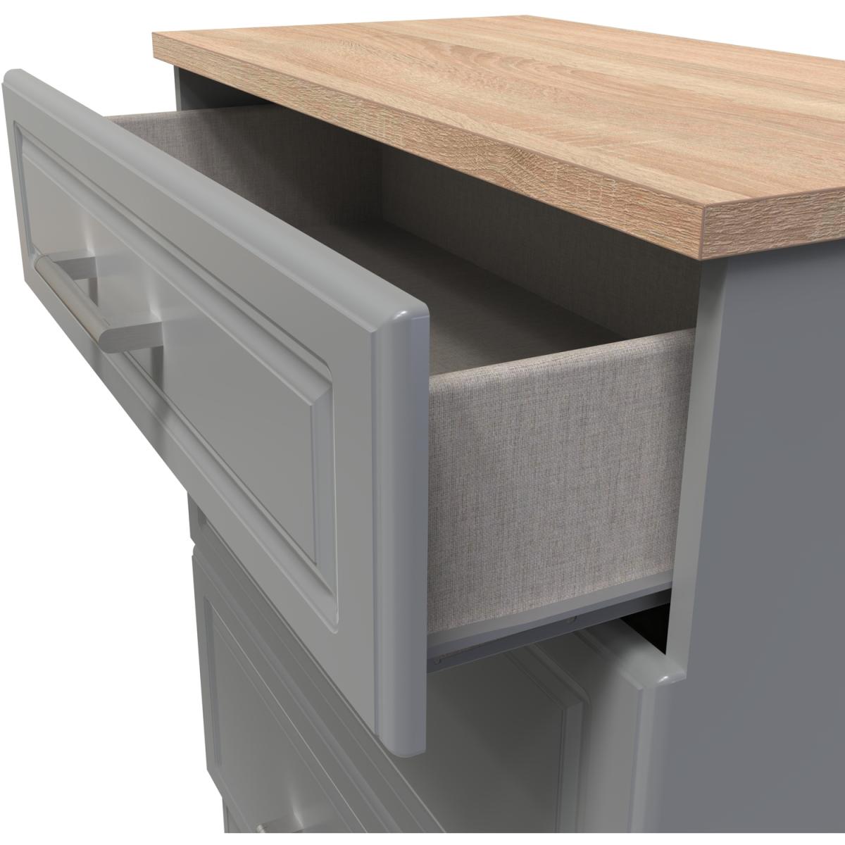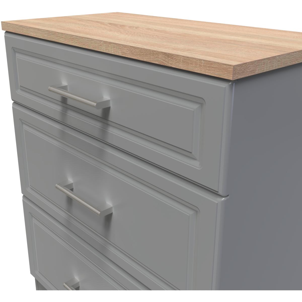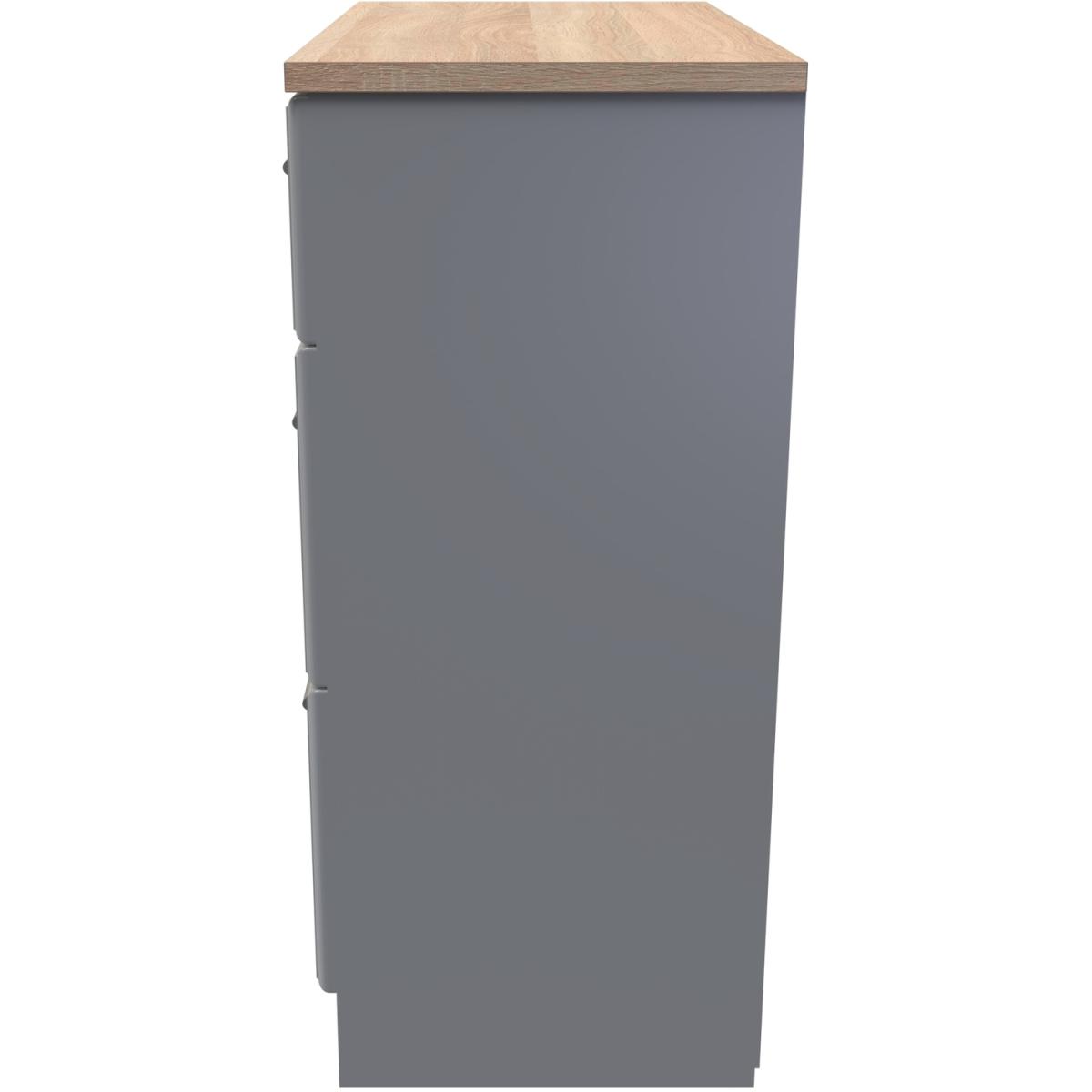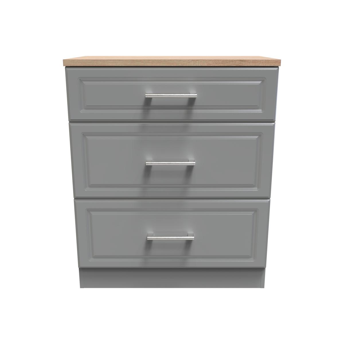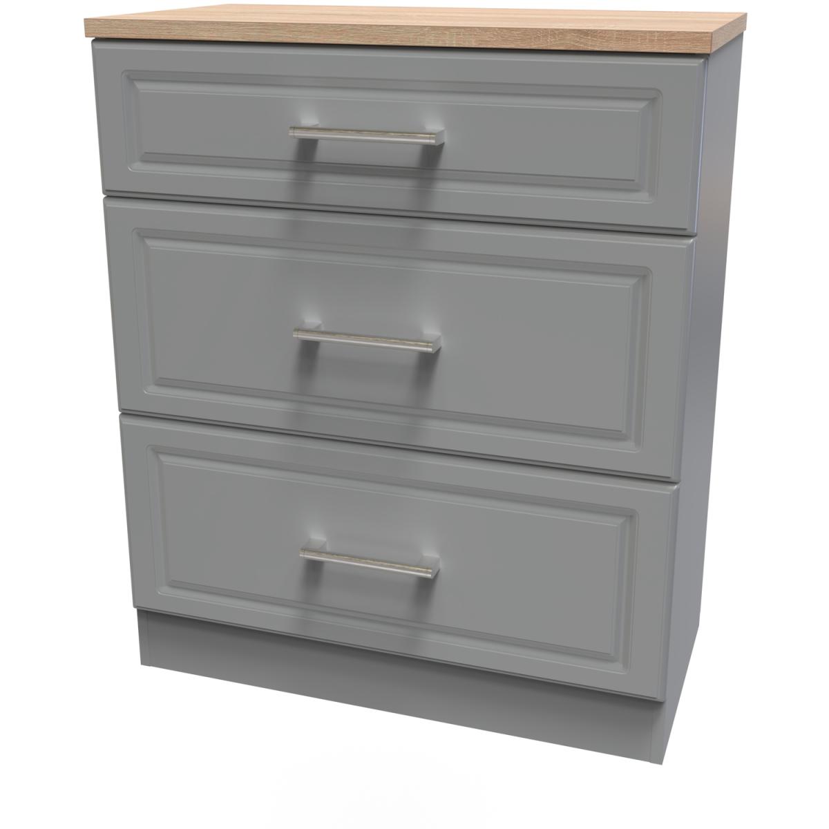 This deep 3 drawer chest of drawers is practical and stylish. Perfect for any home as a free standing storage unit. The Kent range uses traditional edge finishes and wood effect tops, to create a range of classic looking furniture pieces. Contrasting finishes create the tonal variations seen here with brushed steel handle mounted on wood grained fronts. All our furniture is made in the United Kingdom, to the highest quality. It is delivered direct to your location of choice by one of our two man delivery teams, and come full assembled (although legs may be removed to prevent damage in transit).