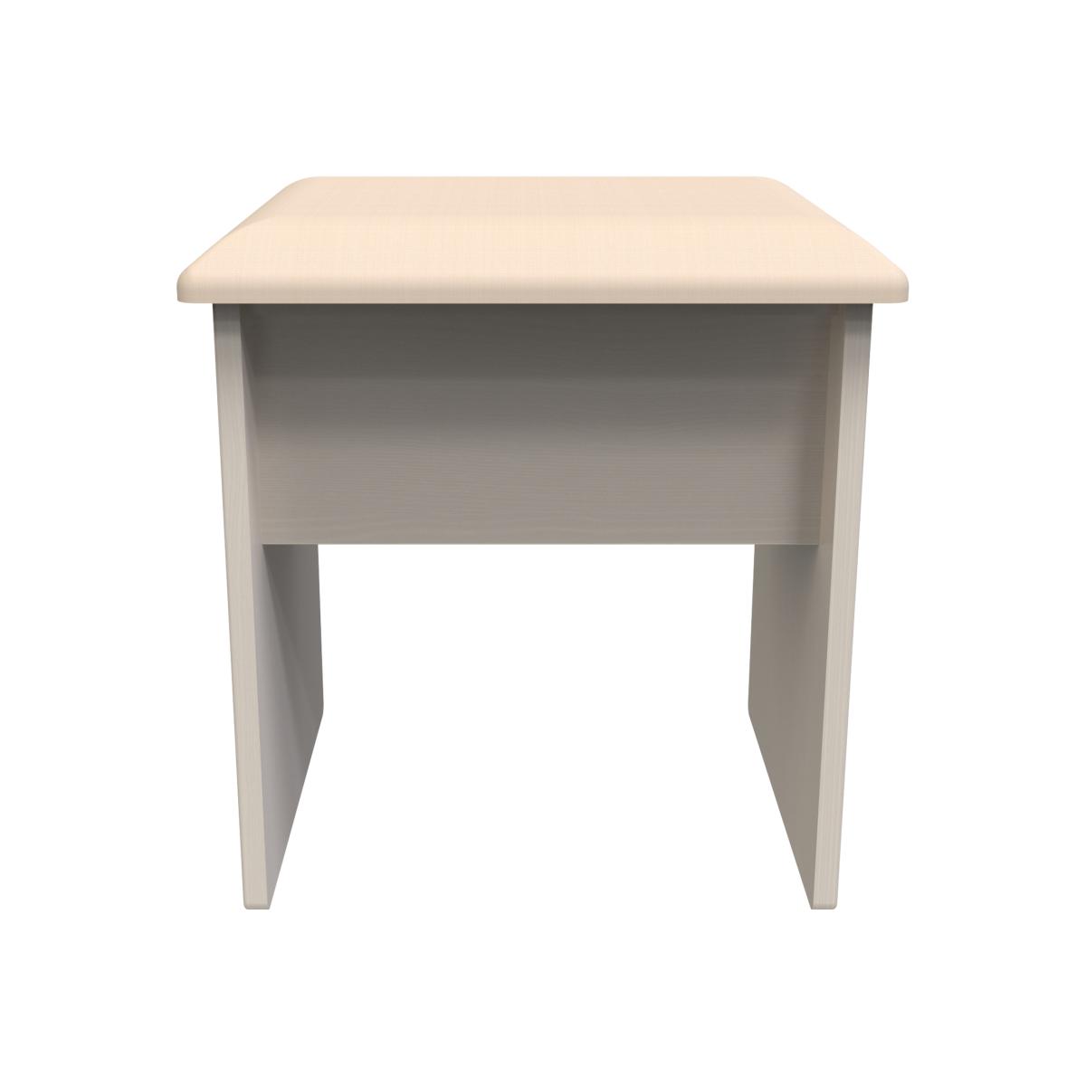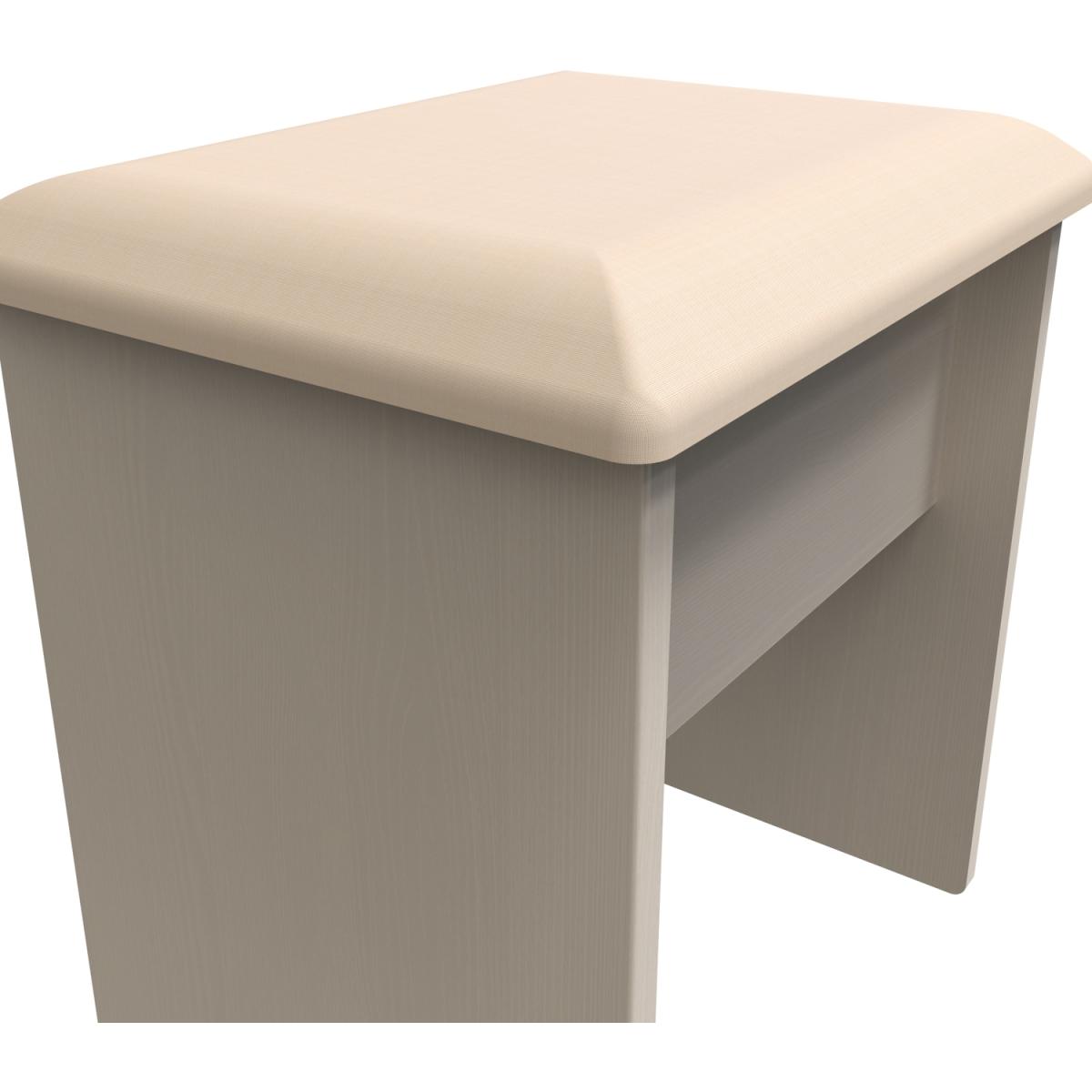 A small vanity stool. A light simple, yet sturdy design, with a soft cushioned seat. Makes an idea companion to a desk or vanity. The Kent range uses traditional edge finishes and wood effect tops, to create a range of classic looking furniture pieces. Contrasting finishes create the tonal variations seen here with brushed steel handle mounted on wood grained fronts. All our furniture is made in the United Kingdom, to the highest quality. It is delivered direct to your location of choice by one of our two man delivery teams, and come full assembled (although legs may be removed to prevent damage in transit).