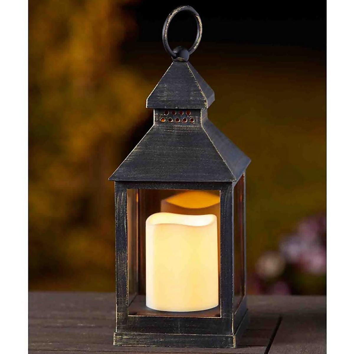 Add this charming lantern to your garden display. The Kentish lantern boasts traditional good looks and a realistic flickering candle inside. Pop it beside your fireplace or inside your patio to welcome friends and family to your home.