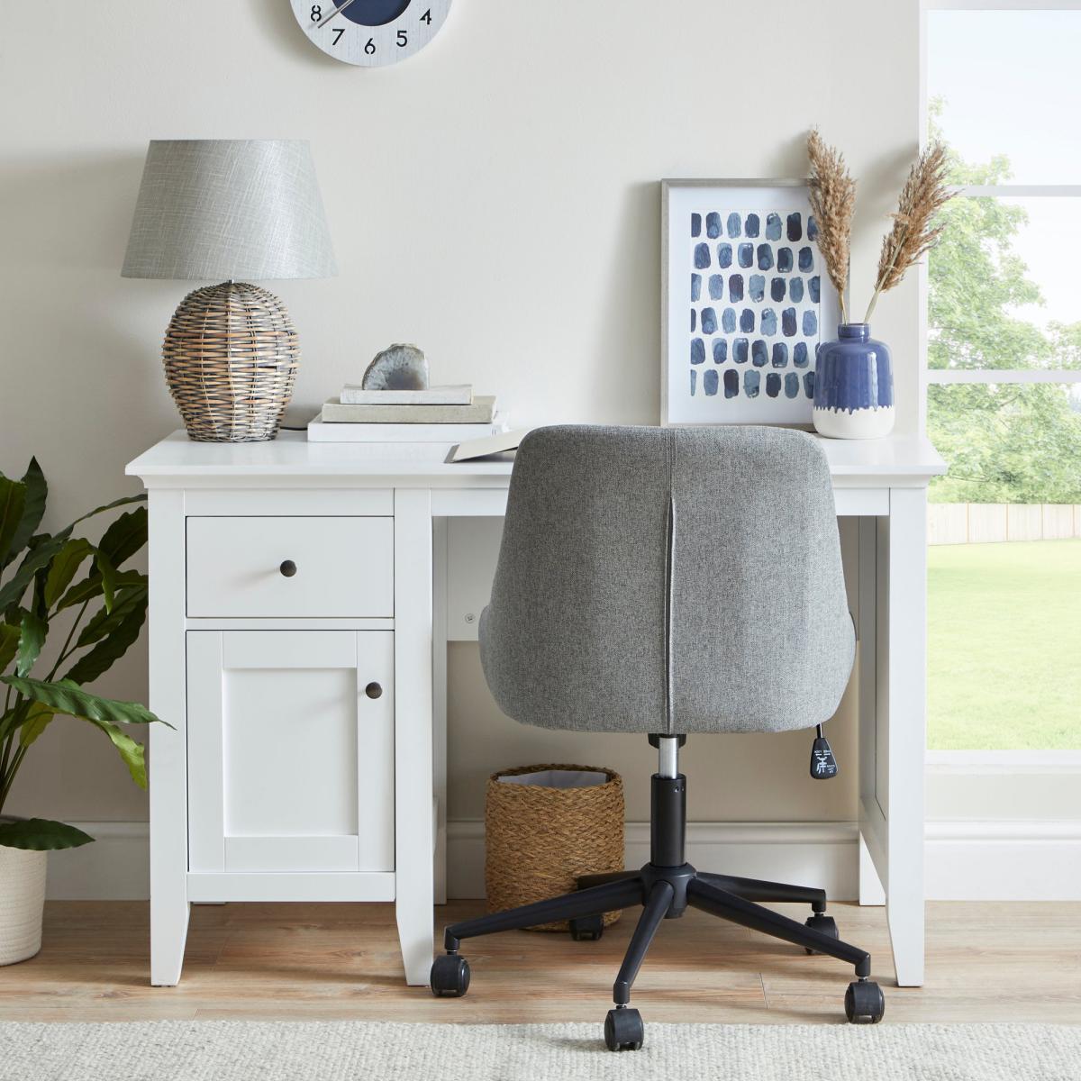 I love this office chair for its sleek, modern vibe and versatile grey Herringbone fabric, which easily complements a range of interiors. It works particularly well in contemporary or minimalist studies, home offices, or even add a touch of sophistication to a creative space. Practical styling tips include pairing it with a matching or contrasting desk and accessorising with simple organisational pieces for a clutter-free look. Its neutral tone makes it flexible enough to mix with colourful or patterned accents, allowing you to personalise your workspace without clashing. Plus, the ergonomic shape and adjustable height make it a comfortable choice for everyday use.