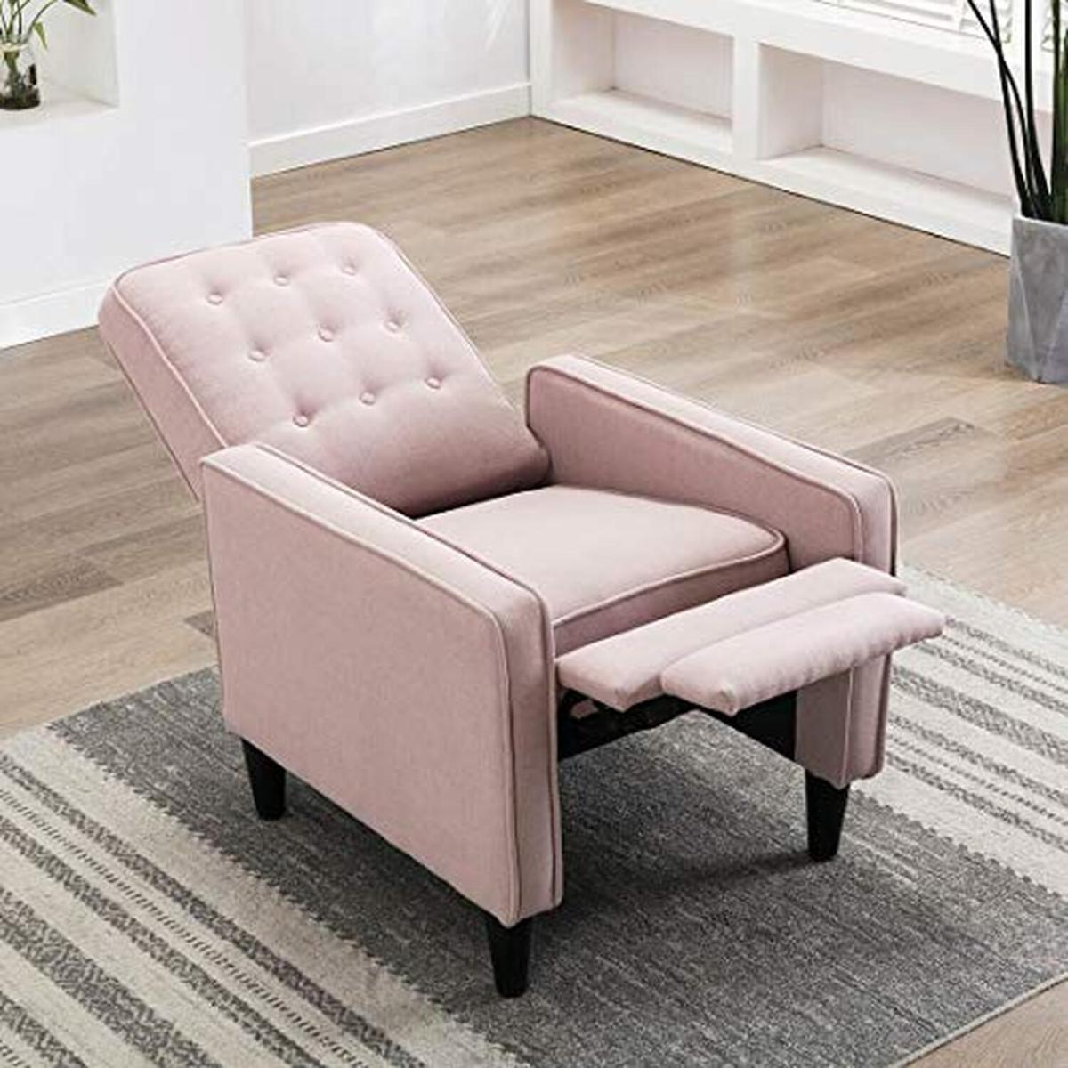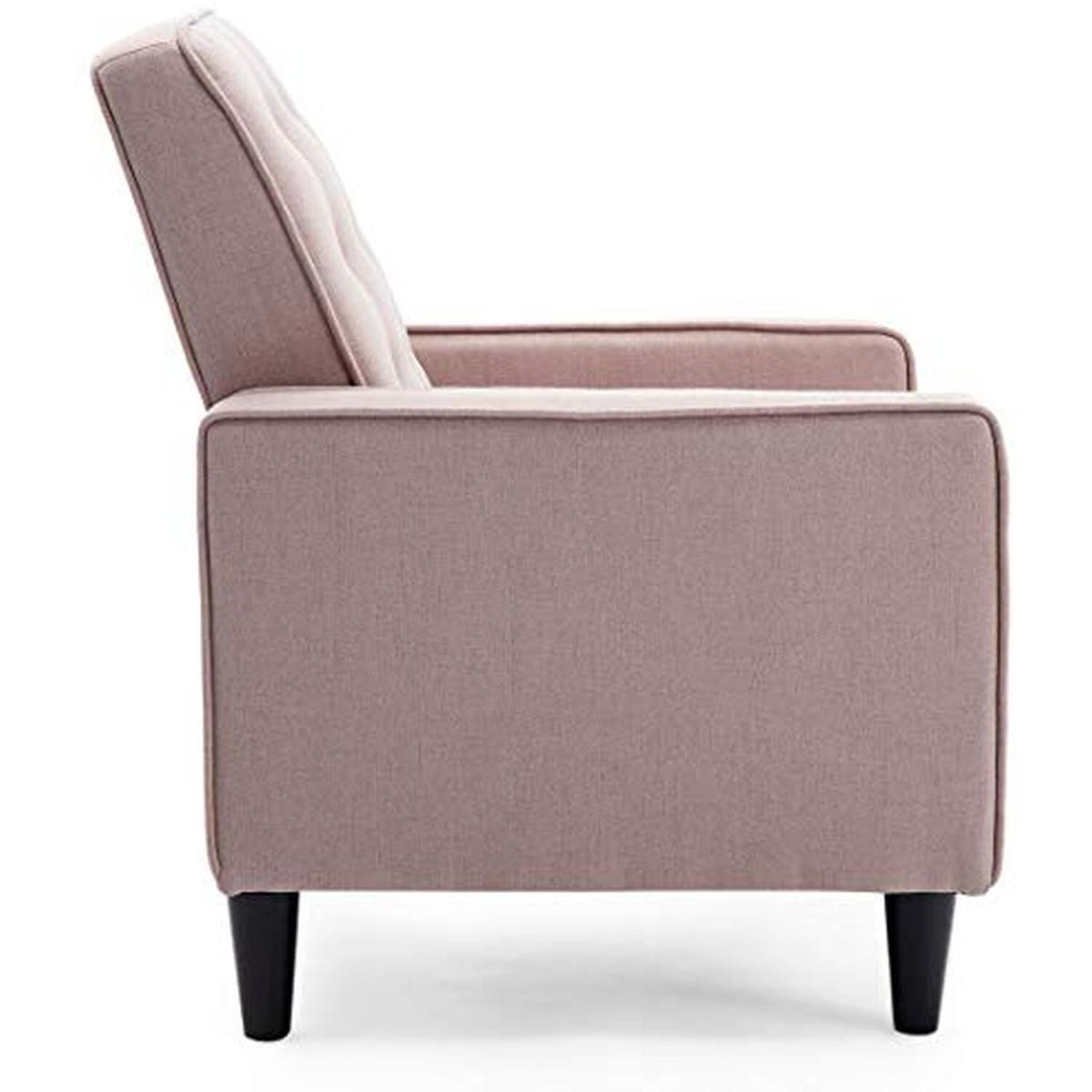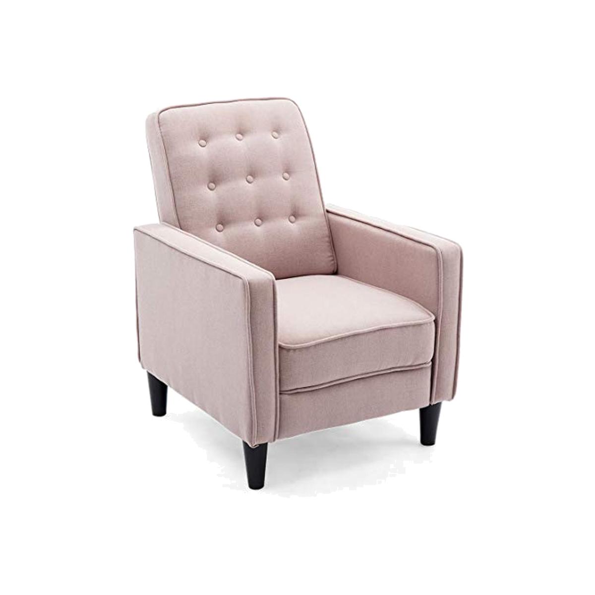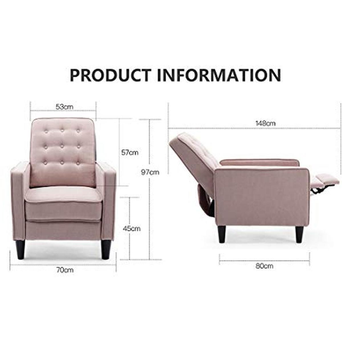 Our chic Kenton Recliner Armchair has been developed to the highest standards, providing strength, durability and supreme comfort. The new Kenton recliner is part of our Premier collection and offers unsurpassed comfort. This model is upholstered in high-quality, linen fabric, and can easily be reclined using a Push Back Recliner Mechanism. For added comfort, the chair comes with cotton filling and a sturdy frame so you can sit and relax for hours. Plus, its available in three gorgeous shades grey, dusty pink and charcoal. Push Back Mechanism To operate the Push Back mechanism, place your hands on the armrests of the recliner and push forward on the arms as you lean backwards using your body weight to recline the chair. As the back reclines, the footrest will rise in unison. When you want to return to the upright position, gently push the footrest down with your legs and the chair will lock back into place. This chair works by using your body weight - as you lean your shoulders forward, the chair will return to its original upright position including the back of the recliner. And once the chair is locked into place, you can sit up and enjoy the Kenton in its original position.