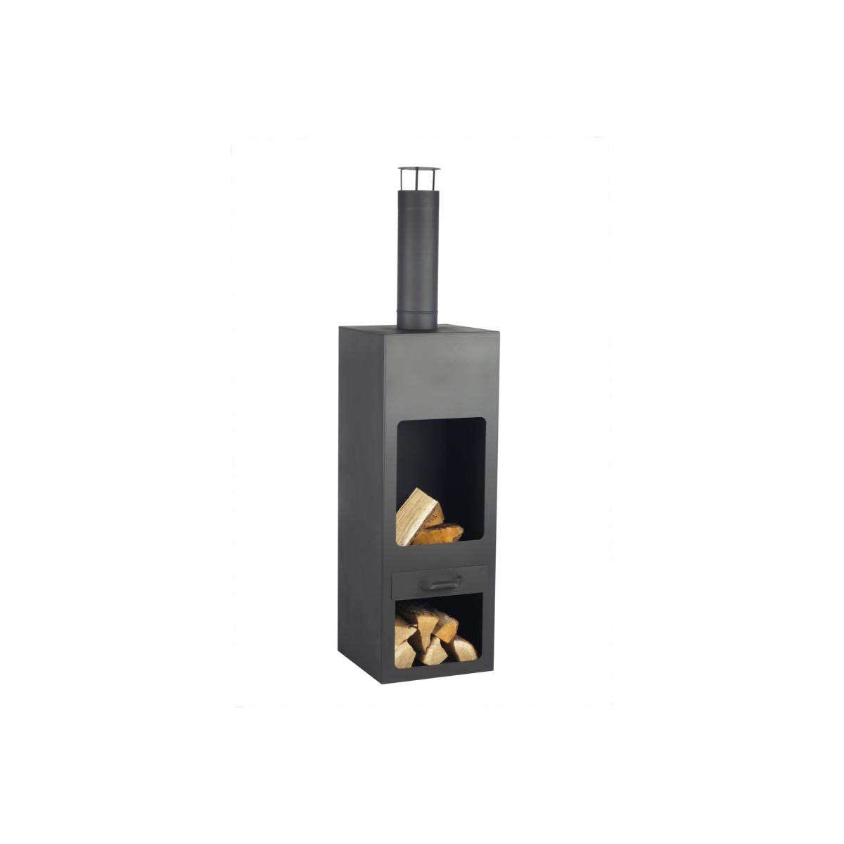 The Kentucky Garden Fireplace has a slimline design that would suit most gardens or patios. Made from robust steel with a painted black finish, this stylish chimenea has storage for logs in the base and an ash drawer under the pit making it easy to clean out. As the fireplace is raised above the log store, it affords sufficient clearance that if you wished to use this on grass or a patio, it will not cause any damage. The square design provides stability. A beautiful garden feature, with a practical and effective use. The chimney will help to draw smoke up and away from anyone gathered around the fireplace. The Kentucky Fireplace will deliver extra warmth when needed, so you can spend a little more time in your garden, socialising with friends and neighbours.