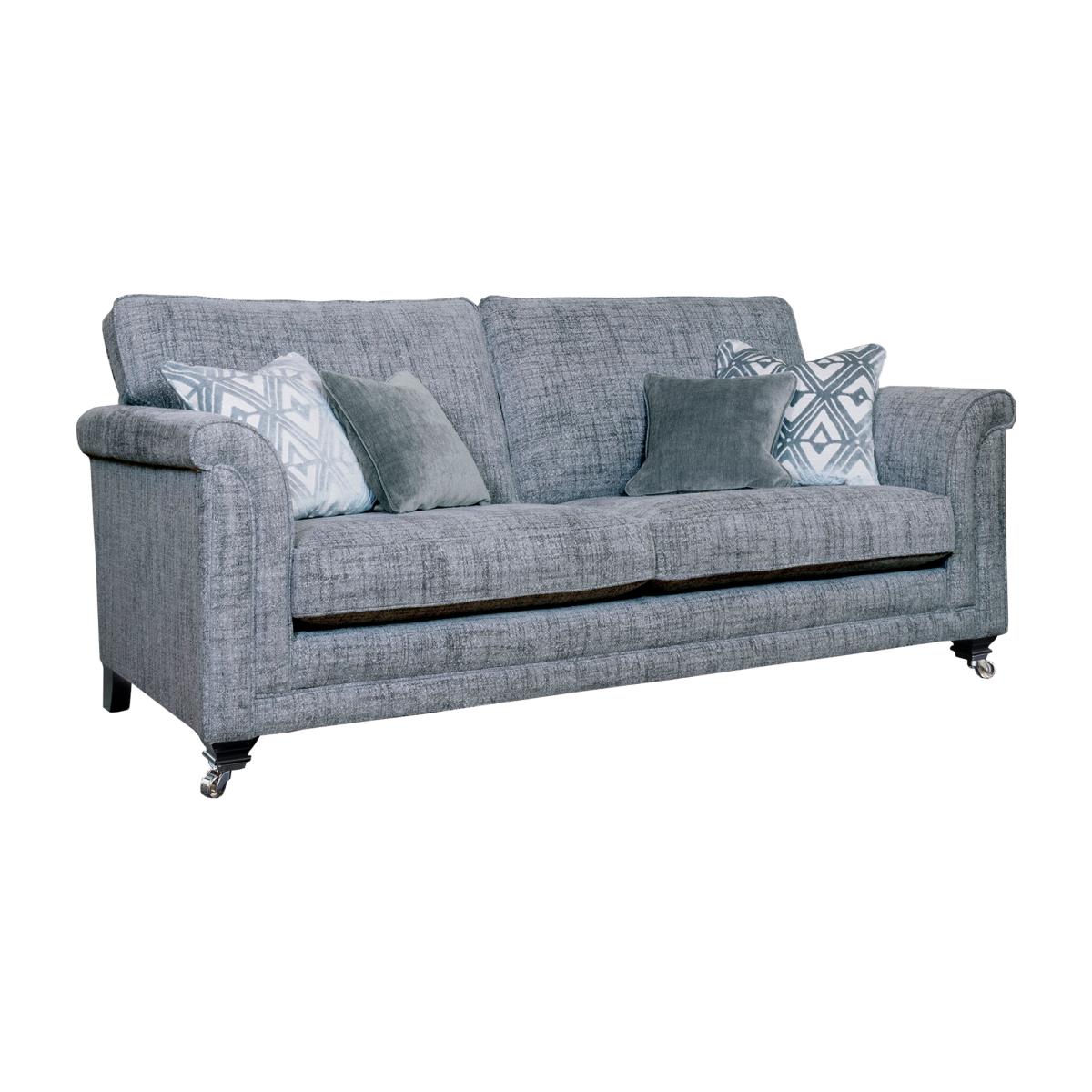 Spacious and stylish, the Kentwell 3 seater sofa is a versatile choice for a wide range of interior looks. Available in plain or patterned fabric as well as luscious blue velvet, it features four shapely scatter cushions for added definition. The sofas traditional design is open and welcoming, while its seats ensure firm comfort and lasting plumpness. Pair with the Kentwell ottoman and chair for a beautifully uniform look.