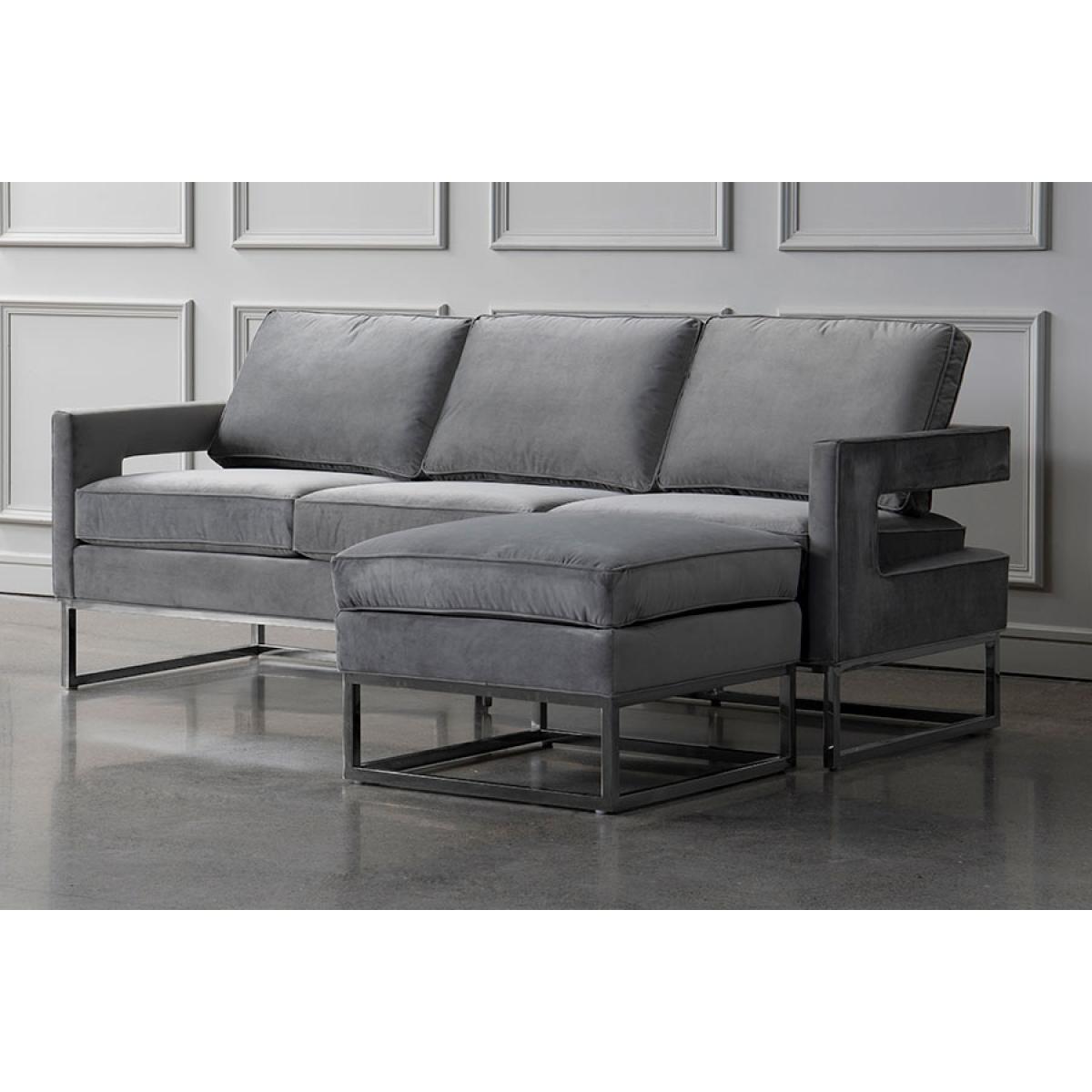 Designed to be used alone or as an extension to the Kenza sofa (effectively transforming it into a corner sofa). Stainless steel frame with brushed finish. Comfortable sprung seat. Velvet upholstery fabric.