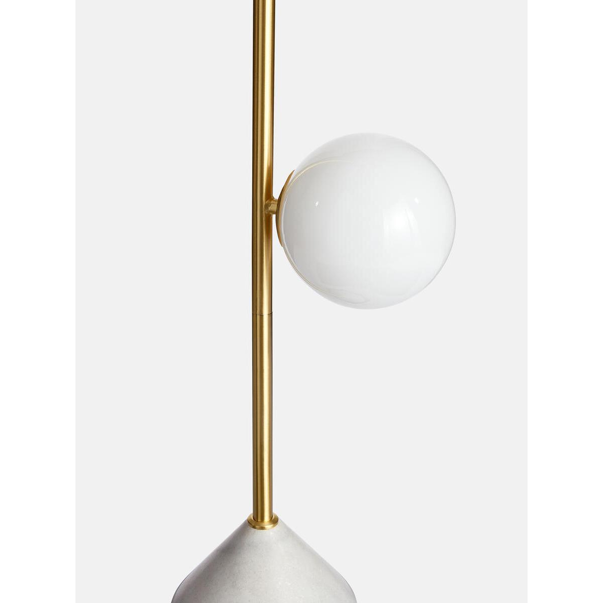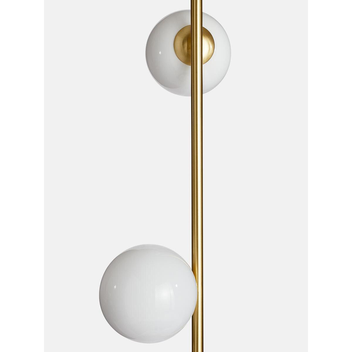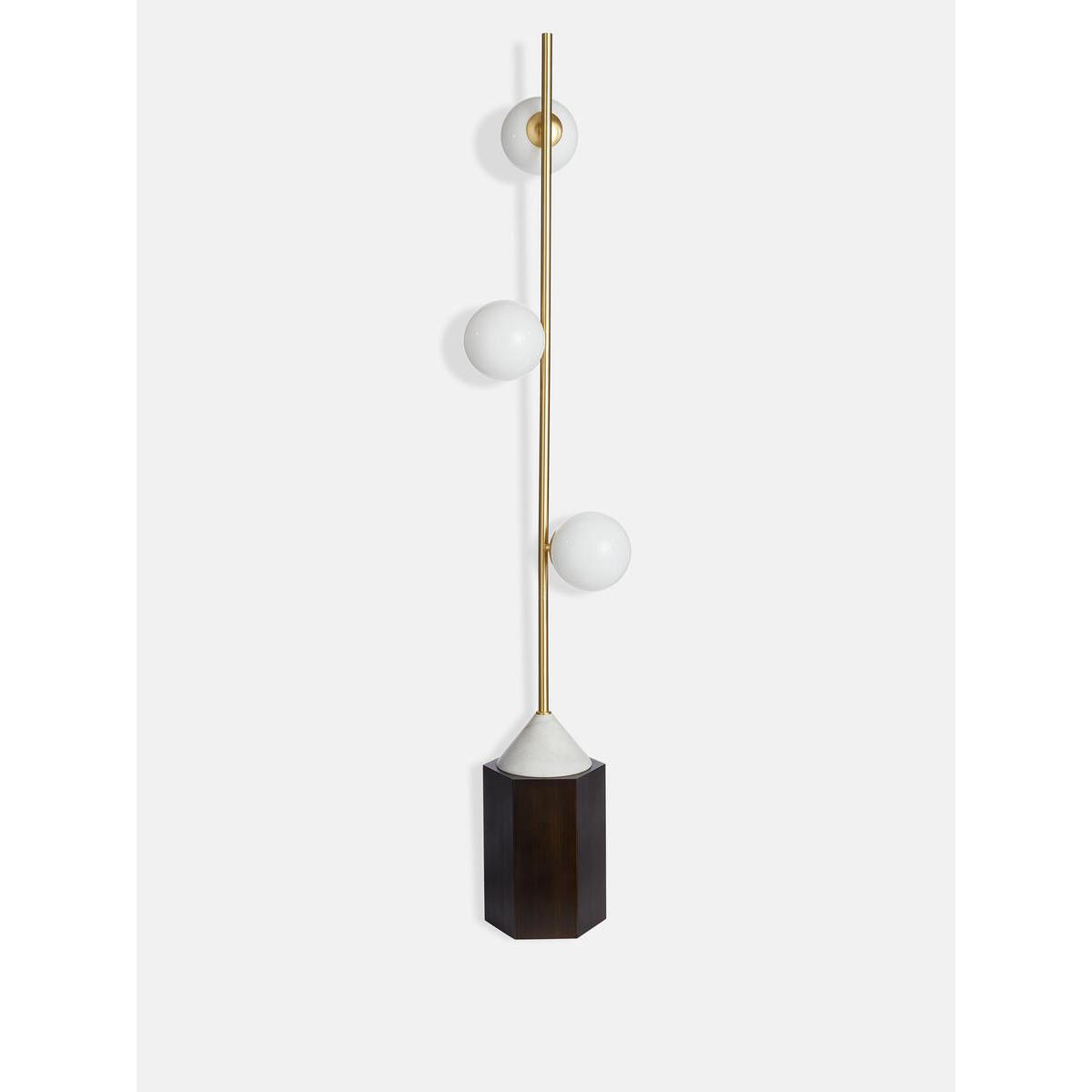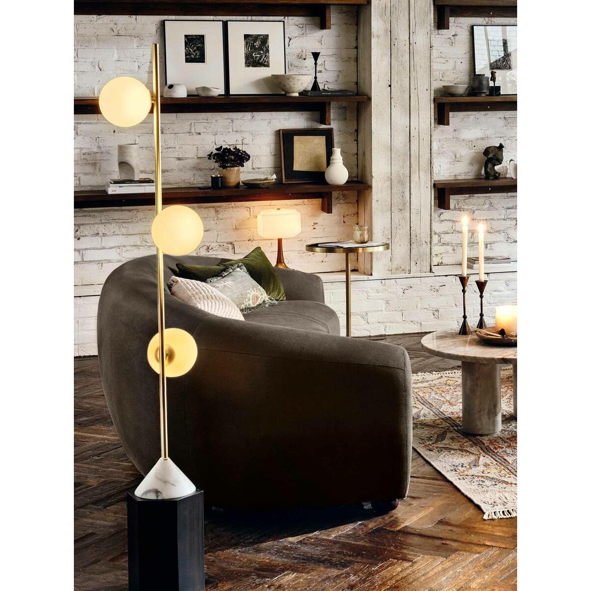 Inspired by the lights at Soho Warehouse in Downtown LA, this Modernist floor lamp has three blown glass globes mounted on a brushed brass stem that sits on a solid Carrera marble base. The neat footprint makes it ideal for tucking into a corner beside a chair or sofa to bring a cosy glow to a space. Multi bulb Modernist floor lamp, blown glass Brushed brass stem and fittings Solid Carrera marble and blackened brass metal base Requires 3x G9 28W bulbs Inspired by Soho Warehouse