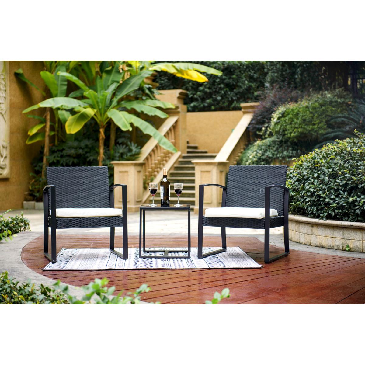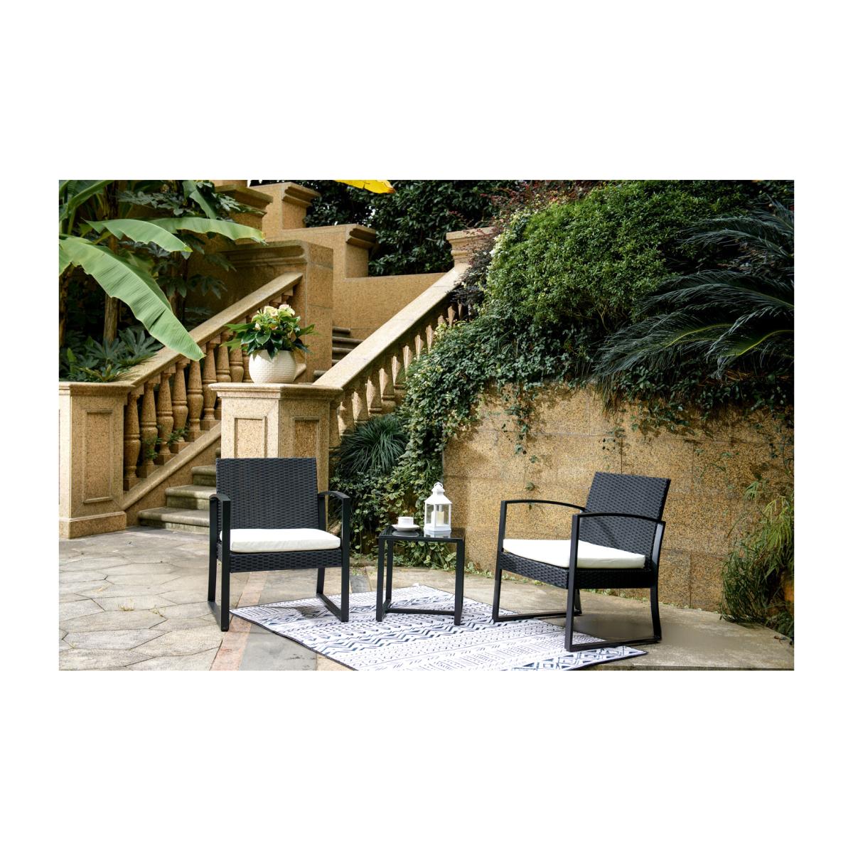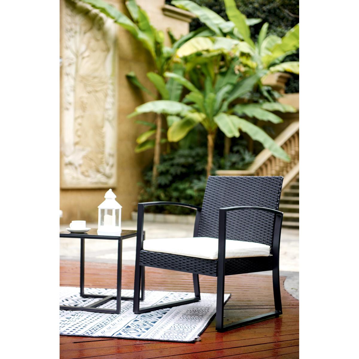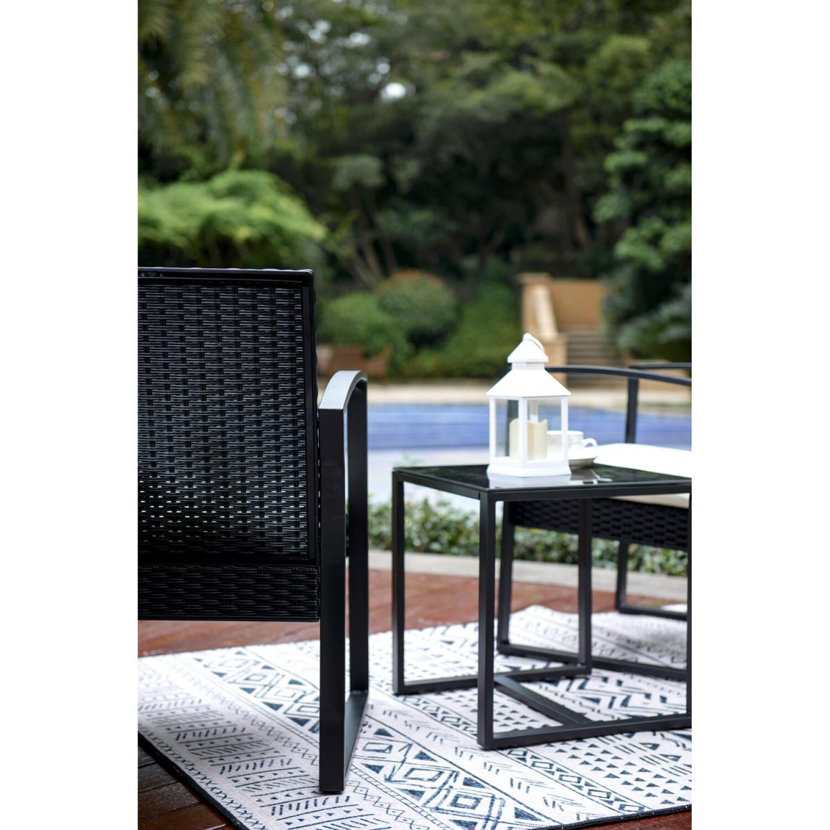 This simple Keros Bistro Set is a sturdy and durable selection that's sure to look beautiful in your garden. Made from high-quality materials for a sleek and stylish look that lasts, this low maintenance set comes with soft and inviting cushions. Easy to assemble, you're soon to be enjoying relaxing afternoons and evenings outside. Crafted to look like rattan to suit any style of outdoor decor, this bistro set is a welcome addition to any garden, patio, or conservatory.