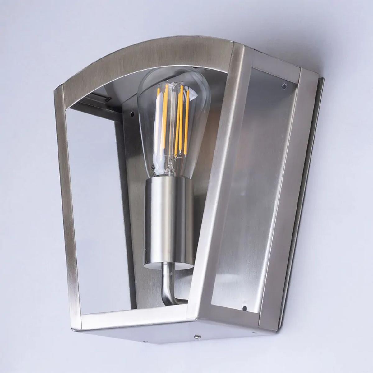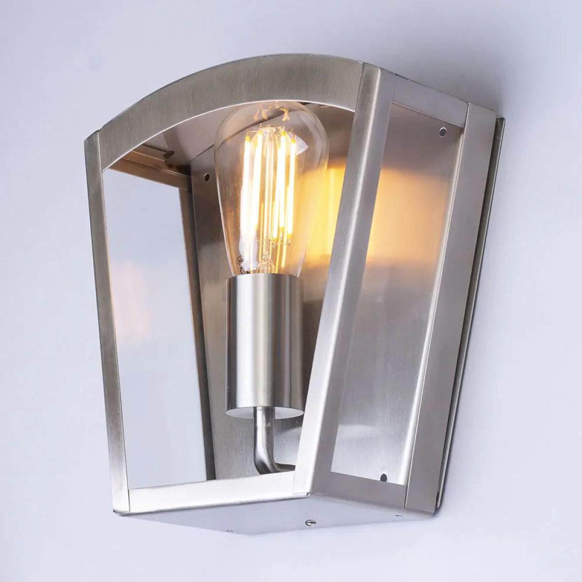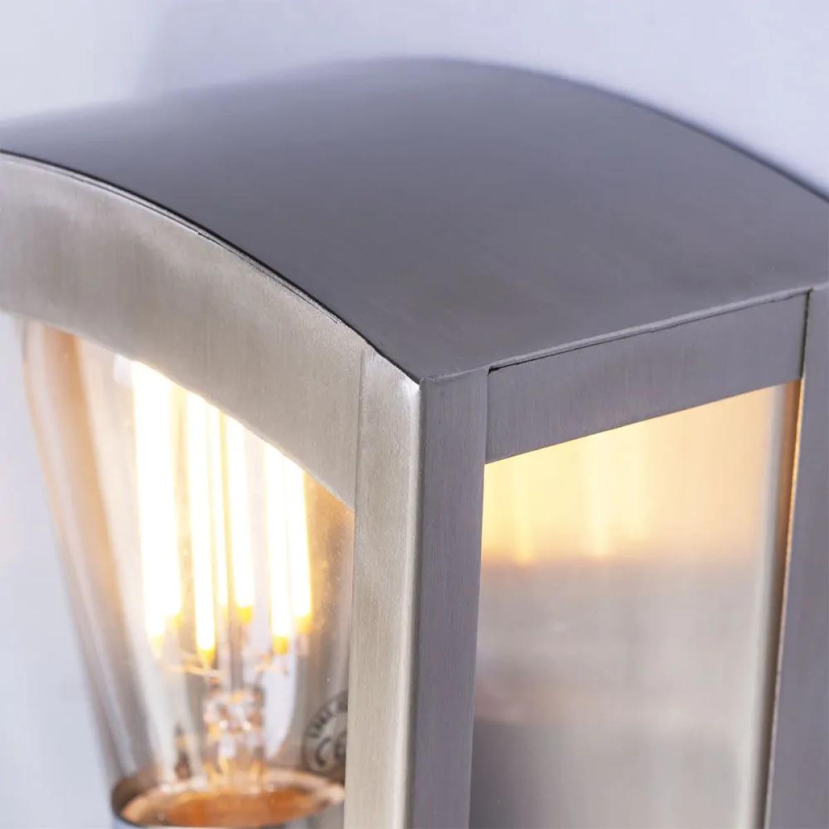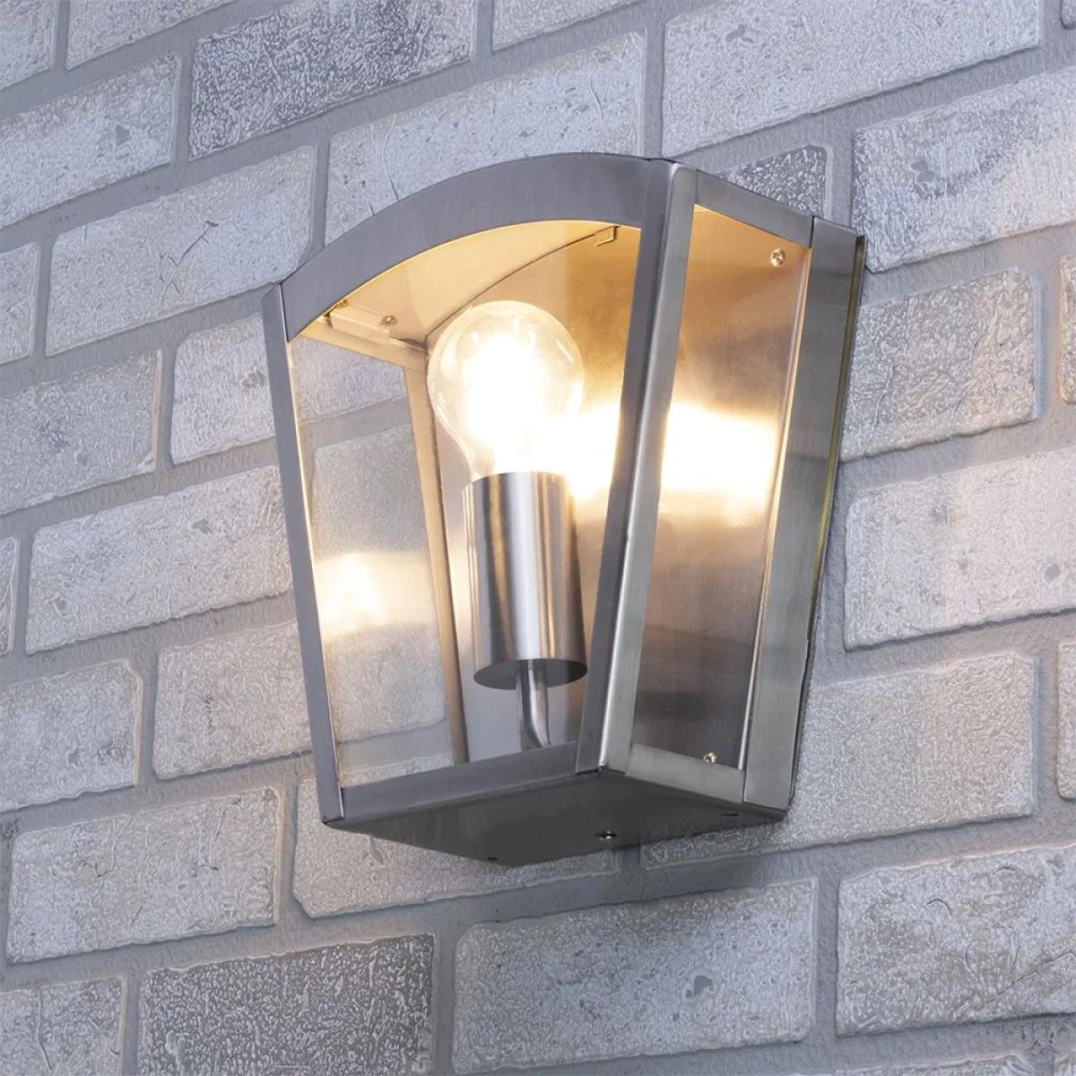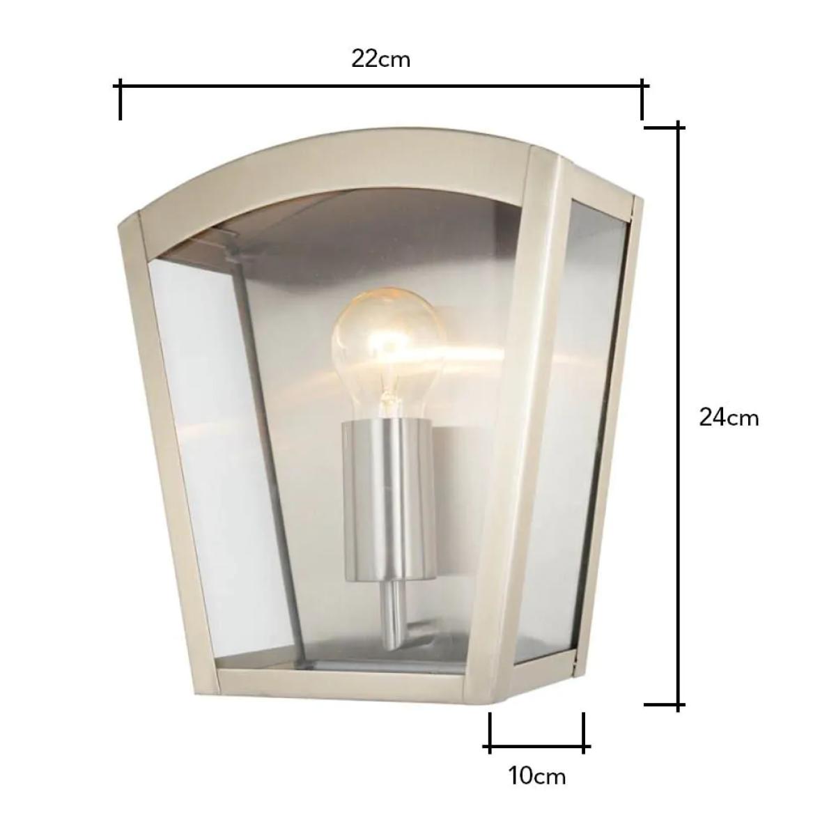 Finished in stainless steel, our Kerr Outdoor Lantern Curved Wall Light brings a contemporary addition to your lighting arrangements, with a sleek, stylish design that perfectly complements any modern homestyle. The larger glass window allows the light within to perfectly illuminate the space with a handy task light, allowing you to navigate your home with ease after nightfall. Certified with an IP44 rating, this outdoor fitting will remain lit throughout most weather conditions – ideal for lighting your pathways, patios and doorways.