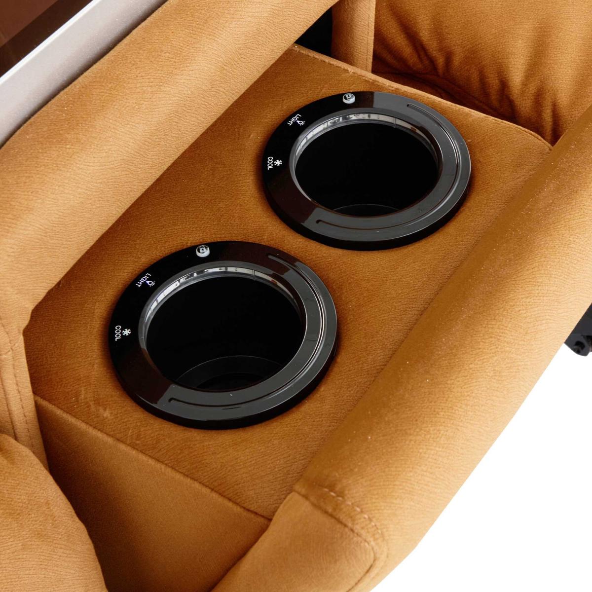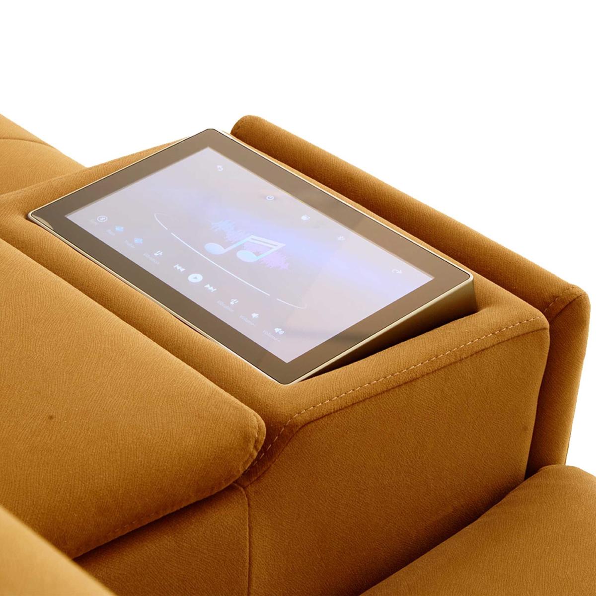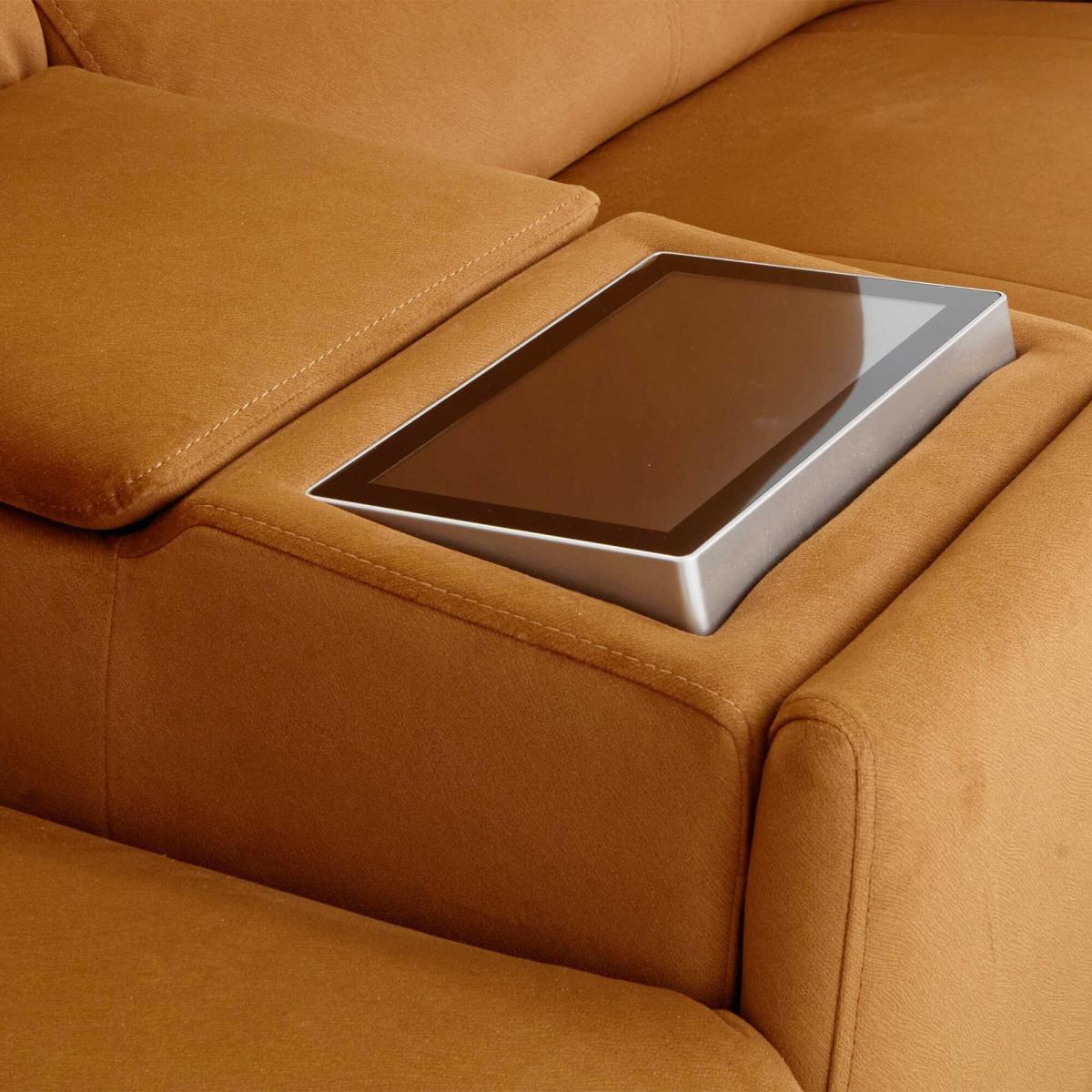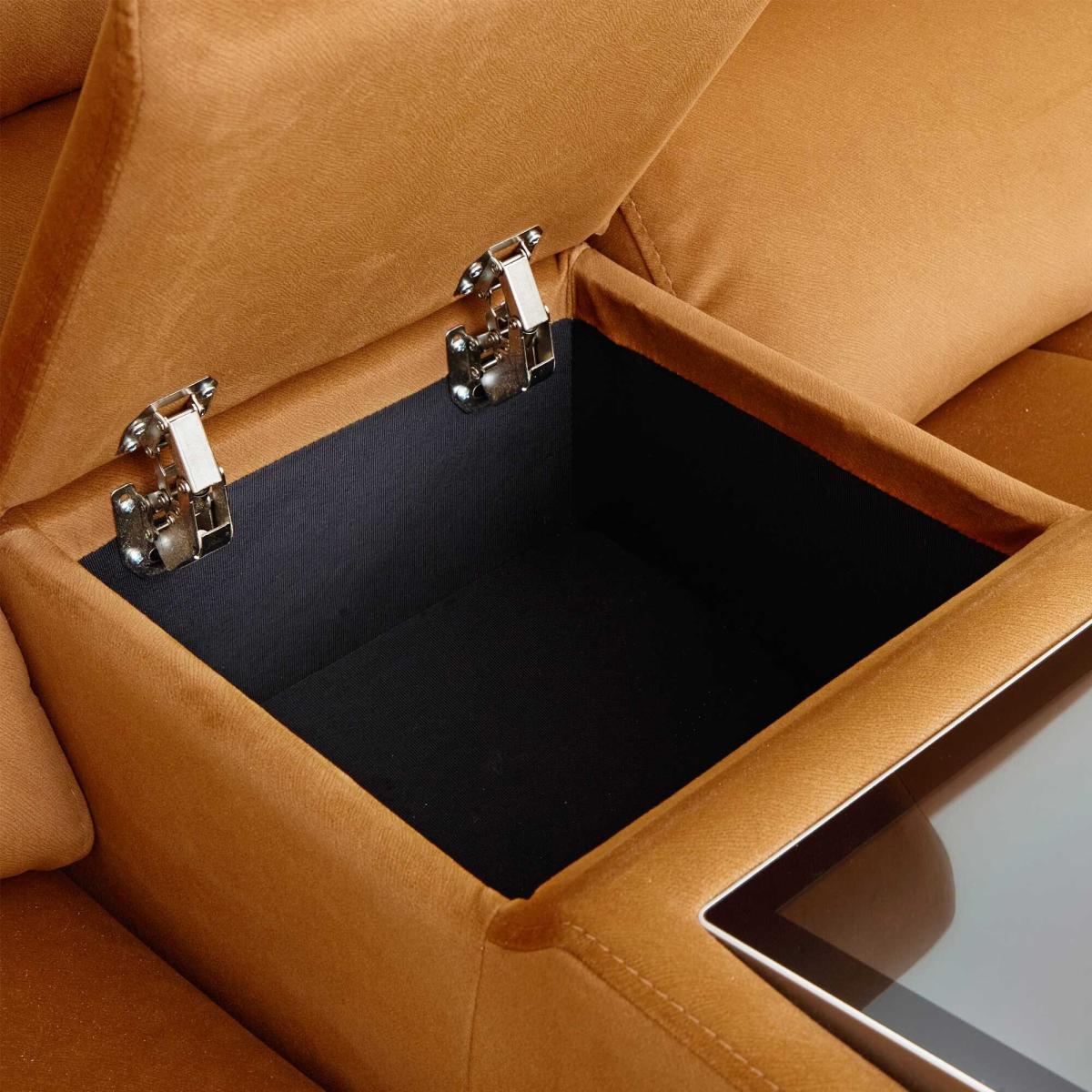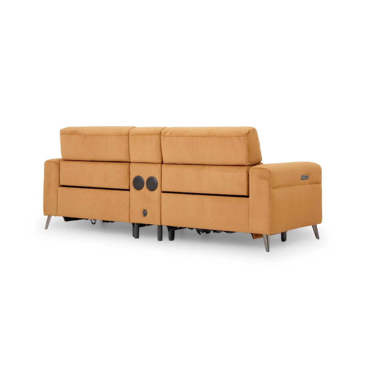 Elevate your living space with the Orange Fabric Power Recliner 2.5 Seater Sofa - a bold blend of comfort, innovation, and modern style. Wrapped in a striking orange fabric, this sofa instantly brightens any room while offering indulgent features designed for pure relaxation. Experience power reclining with adjustable head tilt, lumbar support, heating, and gentle vibration for a spa-like feel at home. A smart middle wedge transforms into a table with a built-in screen, speaker, and USB-C charging, making it perfect for work or entertainment. Plush cushions with pocket springs and foam deliver balanced softness and long-lasting support, while the solid pine frame and sleek metal legs ensure enduring strength. More than a sofa, it is a lifestyle upgrade.