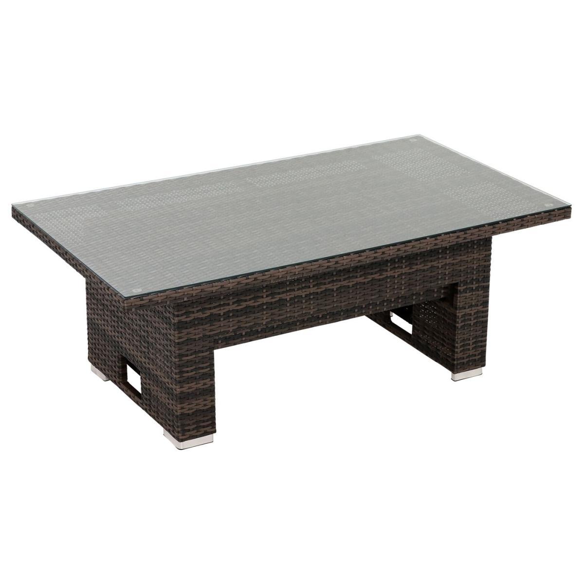 Kersey Corner Garden Dining Set With Rising Table in Brown Weave and Beige Fabric