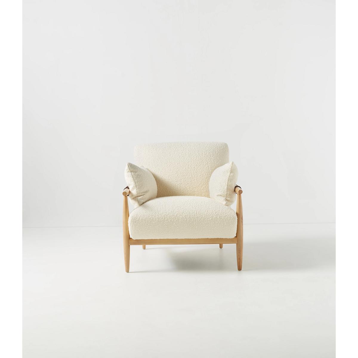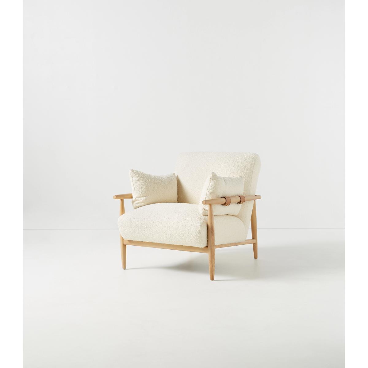 Crafted with a solid wood frame and lined with plush arm cushions, this comfortable respite is perfectly at home in a cosy reading nook or a bright living space. * 100% Beaufort Boucle upholstery * Kiln-dried hardwood frame; High-resiliency foam core cushions wrapped in soft fiber padding * One seat and one back cushion * Includes two throw pillows * This piece is intended for indoor use * Furniture pieces weighing over 30kg include delivery to your room of choice and packaging removal * No assembly required * Imported