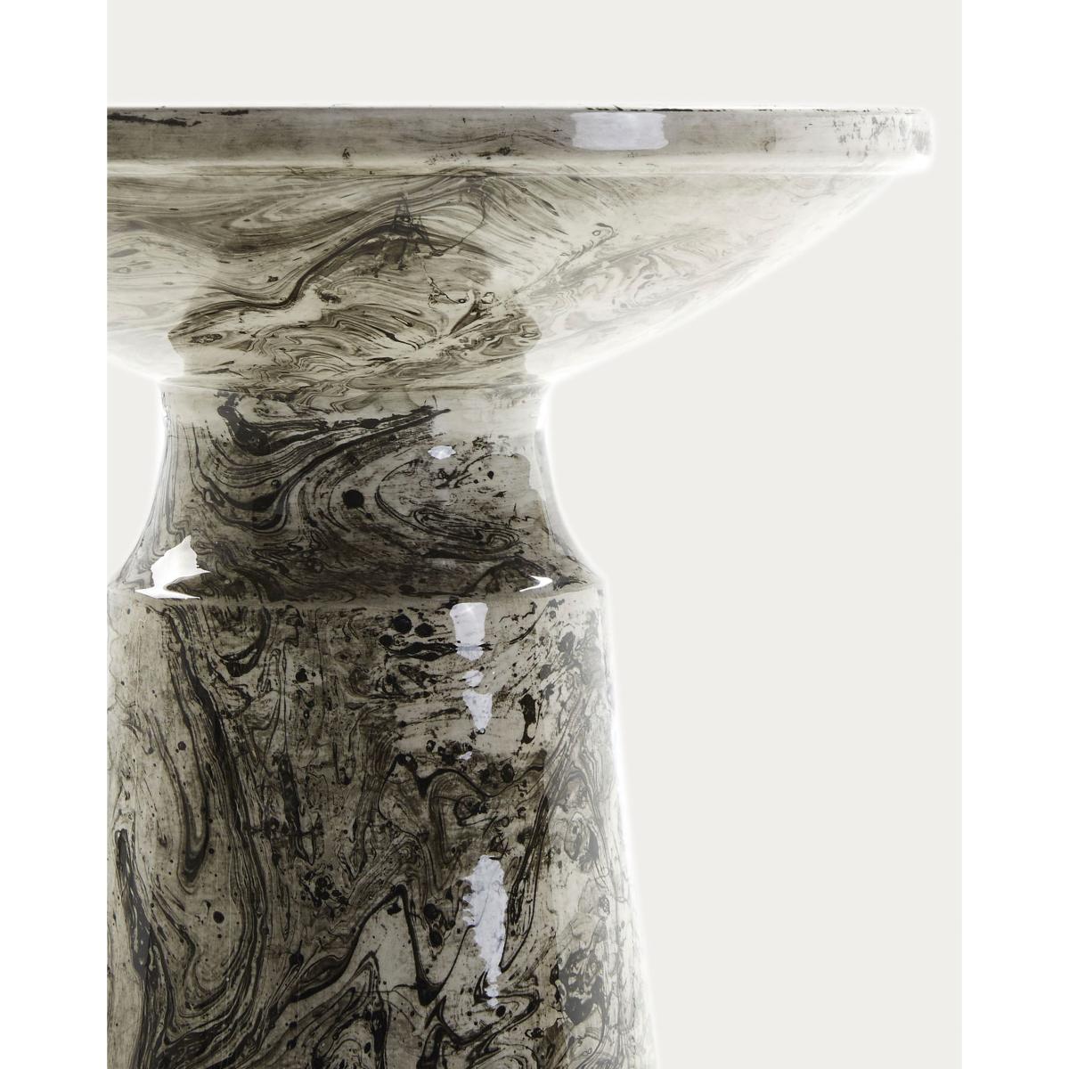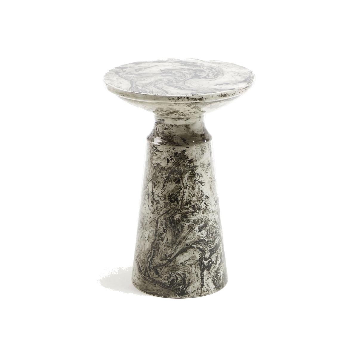 I’m a fan of the Kesbury table for its clean, cylindrical shape and subtle marble-effect finish - it brings a touch of texture without overwhelming a room. It works equally well in contemporary, Scandi or industrial schemes thanks to its neutral monochrome palette and compact footprint. To style it, position it beside a sofa or armchair with a small lamp or stack of design books for a functional vignette. It also makes a neat bedside table when paired with soft linens and a potted plant. For a more layered look, group it with a taller floor lamp or a woven basket to introduce varied heights and materials.