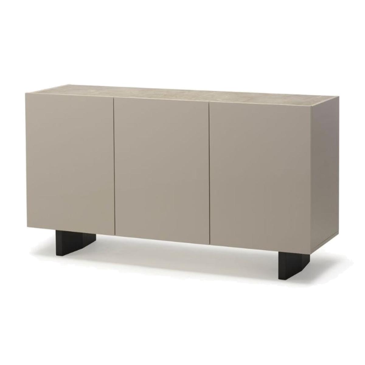 The Kalufa sideboard is designed to complement the excellent Kalufa extending dining table. The gloss grey marble effect ceramic inlaid top adds a touch of class to a piece with all of the practicality that an item made for storage should bring to the home. There is ample storage for serving dishes and cutlery canteens behind the gloss grey lacquer doors. Sandy black feet add the finishing touches. Width 150cm Height 85cm Depth 45cm All screens vary in colour reproduction and whilst every effort has been made to display the colour as accurately as possible it is for guidance only.