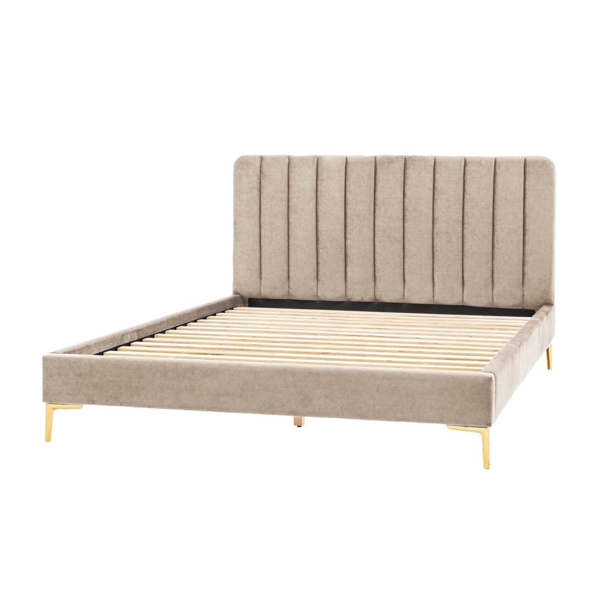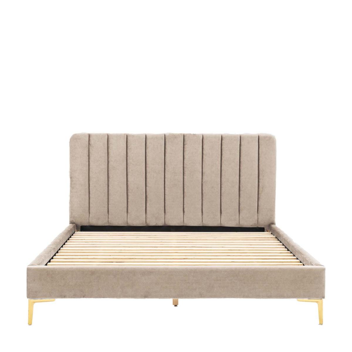 The Keswick bedstead helps to add a touch of luxe to your bedroom. Upholstered in a beige 'latte' coloured velvet, the panelled headboard is cushioned with vertical stitch detailing and is complemented by the slim gold toned metal legs, adding that final touch of luxury.