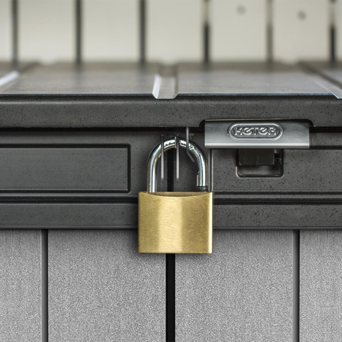 With 2 doors and a piston lid, this storage box is the ultimate way to store all your garden essentials. Built with strong duotech resin, this storage box is sturdy enough to withstand all the elements, while the water-resistant design keeps your belongings dry and protected. So, whether you're storing gardening tools or your favourite outdoor cushions, this box has got you covered! The Keter Elite Duotech Storage Box is paintable meaning you can customise the box to match your outdoor space perfectly. So, whether you want to go bold and bright or keep it subtle and neutral, the choice is yours. With its lockable lid (lock not included), you can keep your belongings extra secure, and the piston-assisted lid makes opening and closing the box a breeze. And if you're worried about assembly, don't be! This storage box is easy to assemble, so you'll have it up and running in no time.