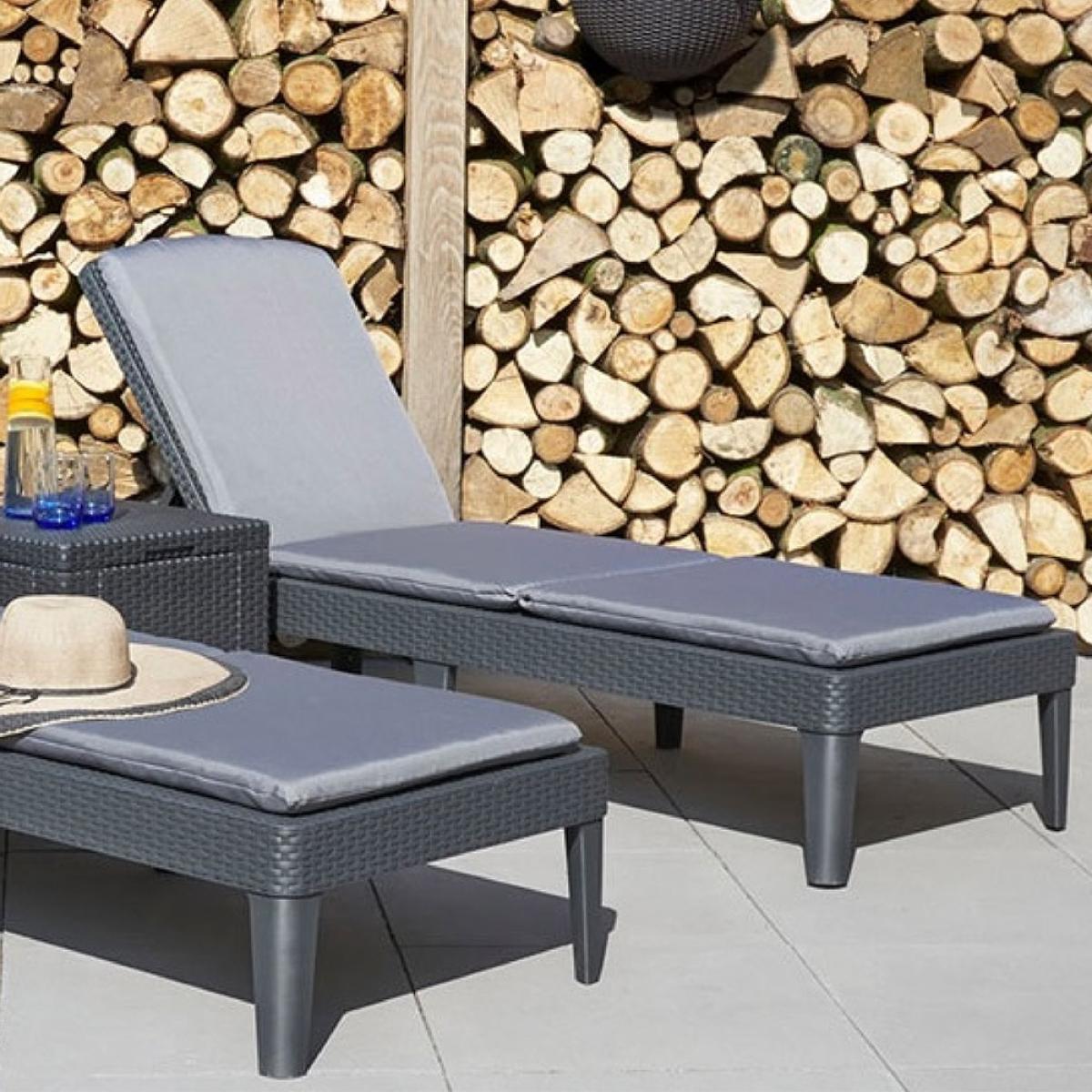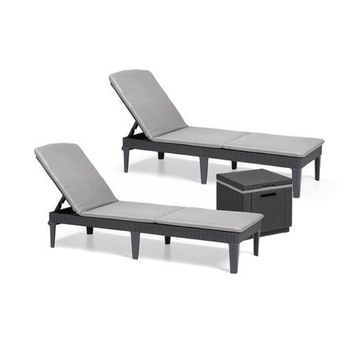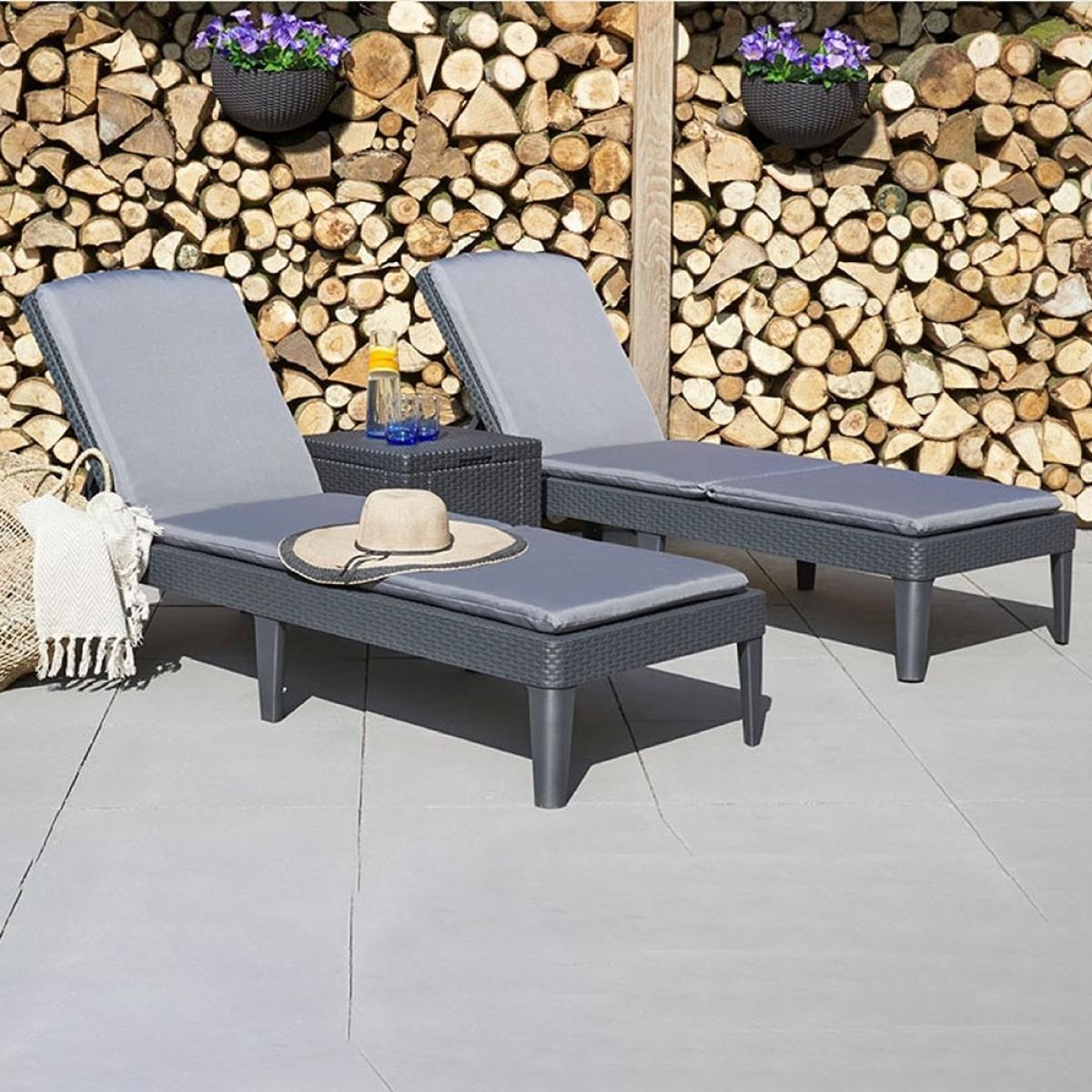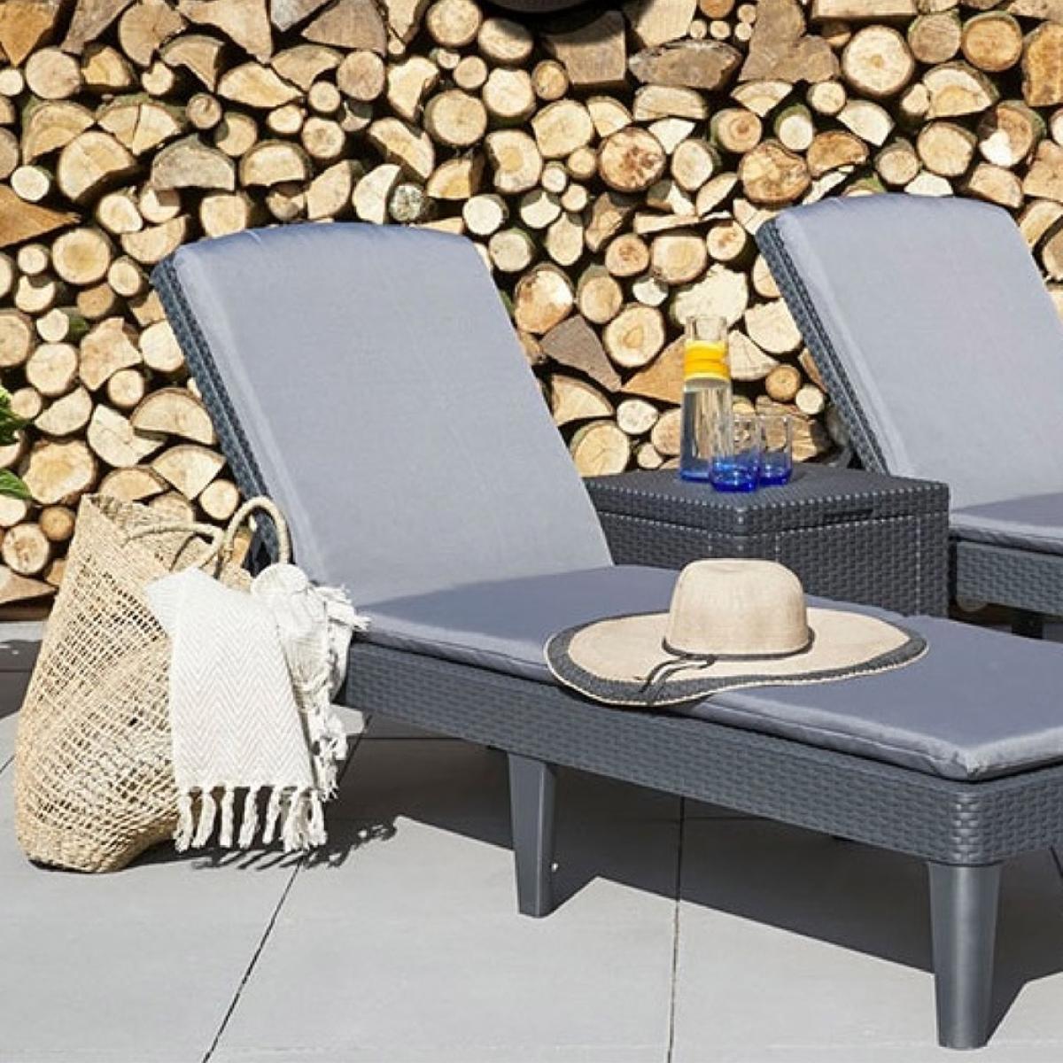 Recline and relax in style with the Jaipur Sun Lounger Set with Ice Cube Side Table from Keter. You'll be able to close your eyes and drift off as you dream of your favourite vacation getaway! The backrest has four reclining positions, so whether you're having a cheeky afternoon nap or a fun-filled day of reading your favourite book this skilful lounger has you covered! Maybe you'll fill your ice cube table full of delicious beverages, and sip away whilst the plump cushions send you into a state of total relaxation. With its lightweight structure, you will be able to chase the sun with ease moving your lounger to wherever you desire to catch those last few rays of the day. Everything is fine when there is sunshine and wine!.