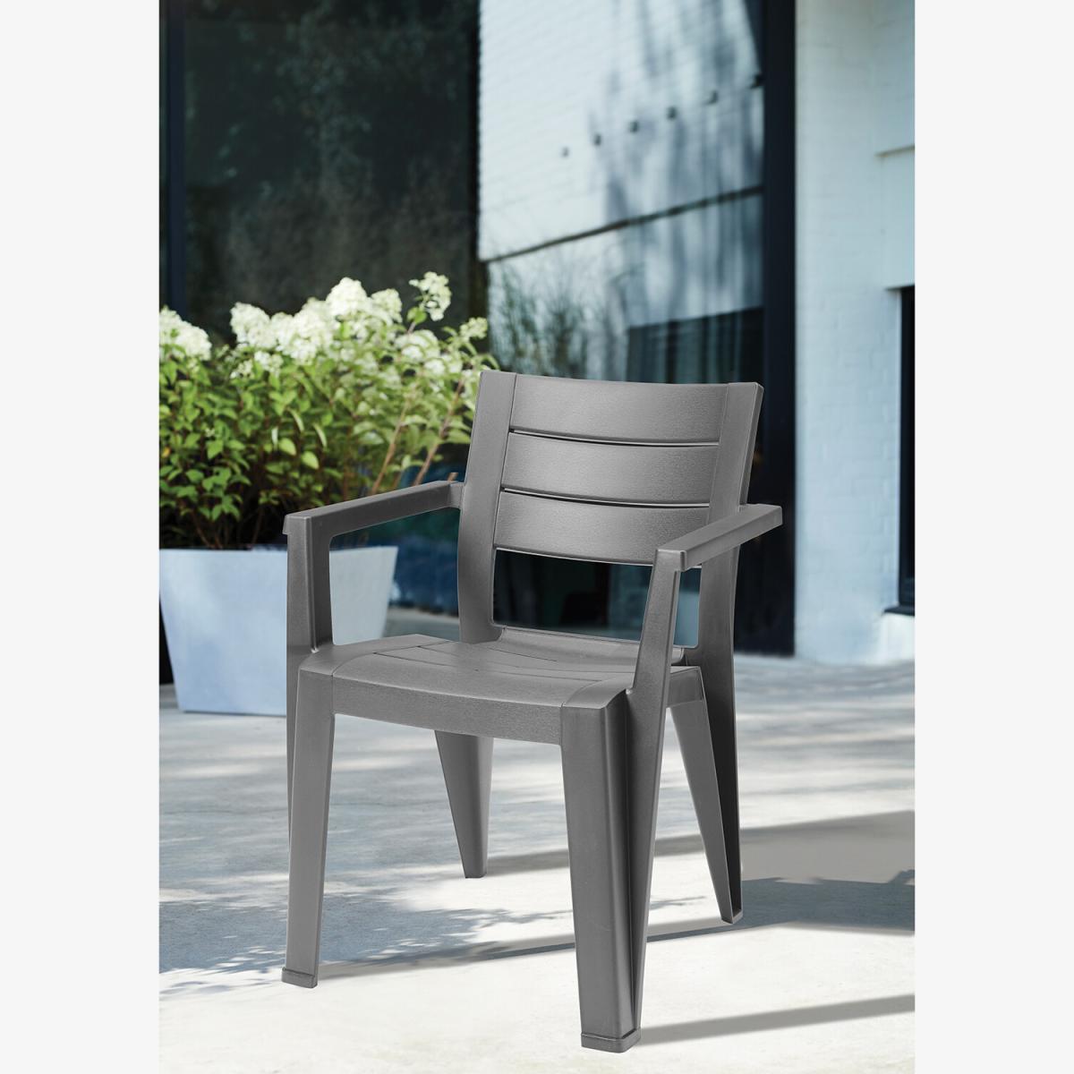 The Keter Julie Chair is a contemporary-styled chair with high rise legs, a slatted finish, and a deep graphite or sparkling grey colour. It's perfect for adding some extra seating to your patio so you can sit back and enjoy the sun. With a no-maintenance design meaning the colour won't fade over time, the Keter Julie Chair will also help add some modern style to your garden.
