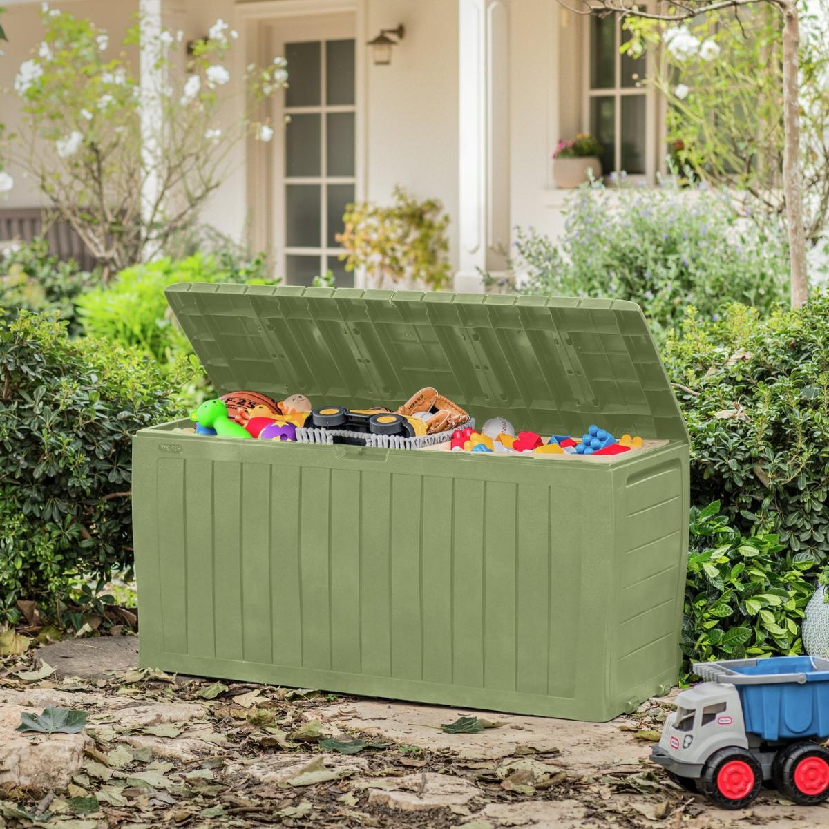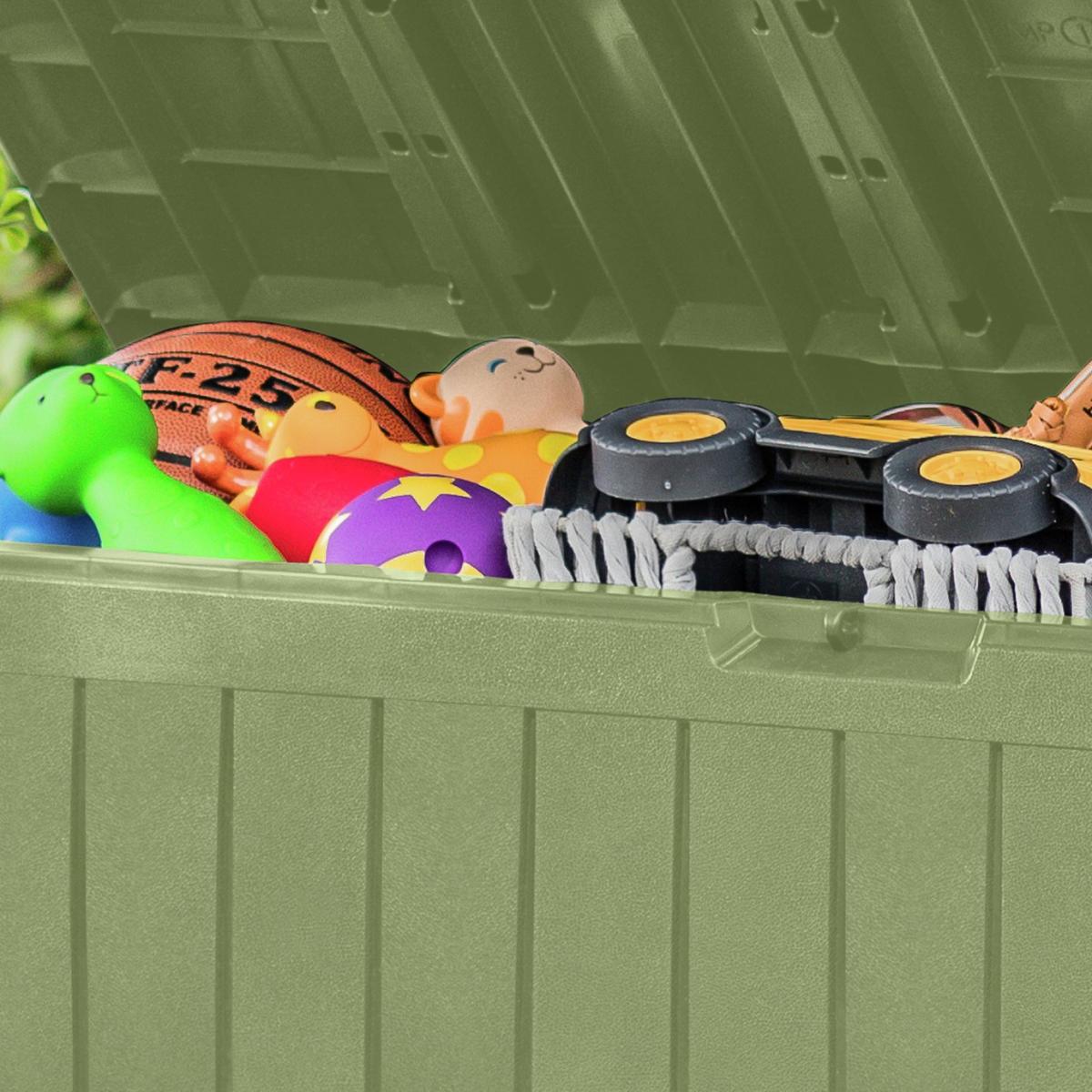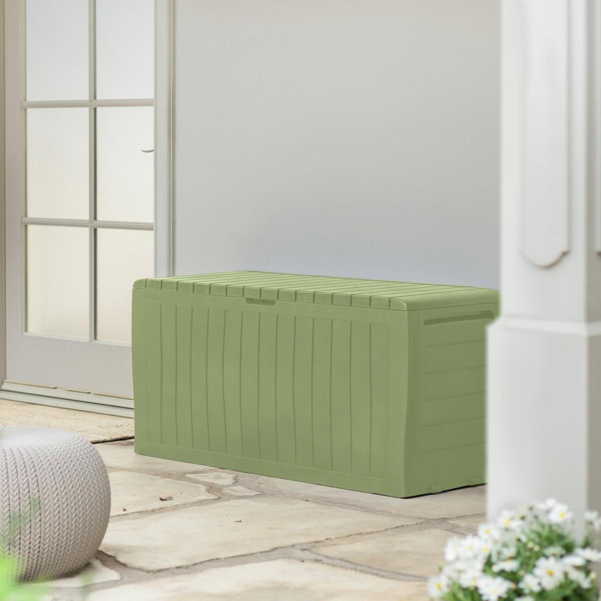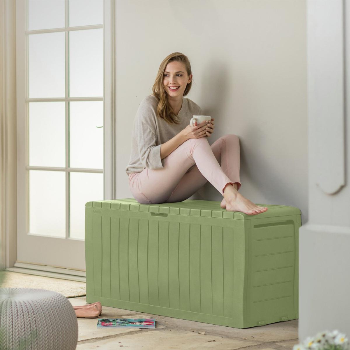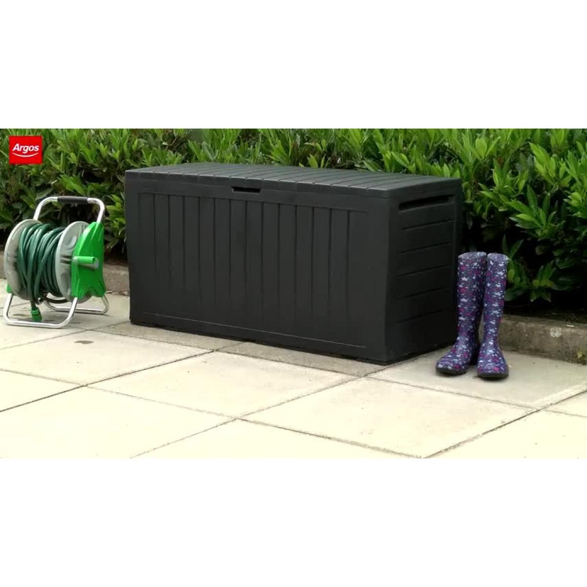 The Keter Marvel Plus wood effect storage box is weather resistant and perfect for use in the garden or patio all year. With a generous 270. L storage capacity, this box is ideal for storing outdoor furniture cushions and garden equipment. It can even double up as extra seating for up to 2 adults, so it's perfect for when you're entertaining family and friends. Low maintenance and it is lockable (with your own padlock) to keep your belongings secure. Easy to assemble so you can use it straight away. Low maintenance, weather-resistant and easy to assemble. Can be used as seating for up to two adults. The lid will take a weight capacity of 220kg / 485lbs. Built in handles, wheels and a large 270. L capacity. Made of plastic. Capacity 270 L. Lockable. External size H57, W116.7, D44.7cm. Internal size H51.2, W114.4, D40cm. Weight 6.3kg. 1 person self-assembly. Manufacturer's 2 year guarantee.