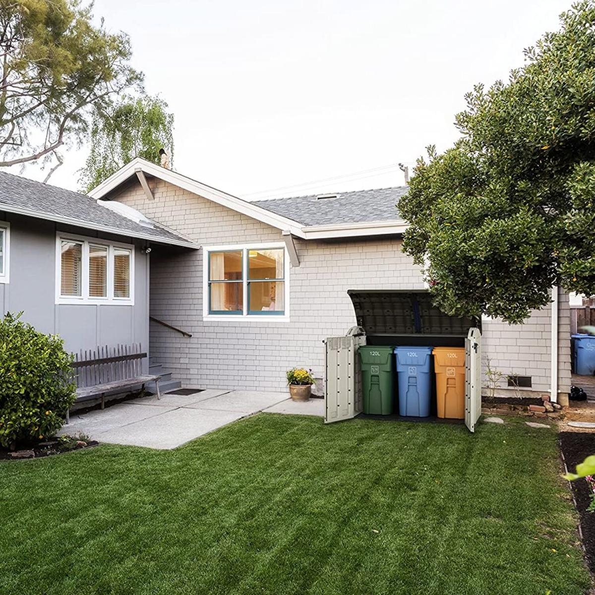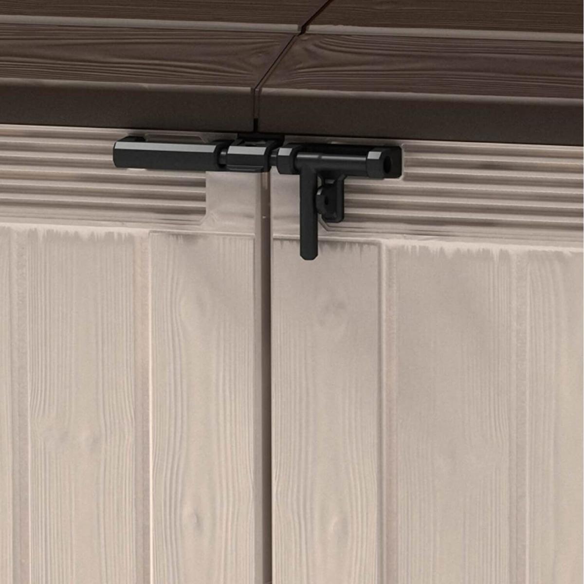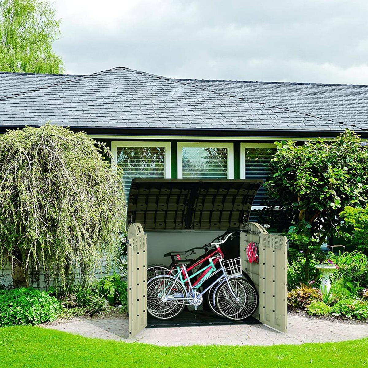 Our global selling storage solution and bike store can fit anywhere within your garden or patio area. With a storage capacity of 2000. L this storage shed is perfect as a bike store or can hold two 360. L or three 120. L bins. Durable and weather-resistant, contents are kept both dry and ventilated. An Easy-opening lid with hydraulic pistons and sloped threshold makes access easy from the front of the top. Shelves can be placed inside for extra storage and there is a lockable option for peace of mind.