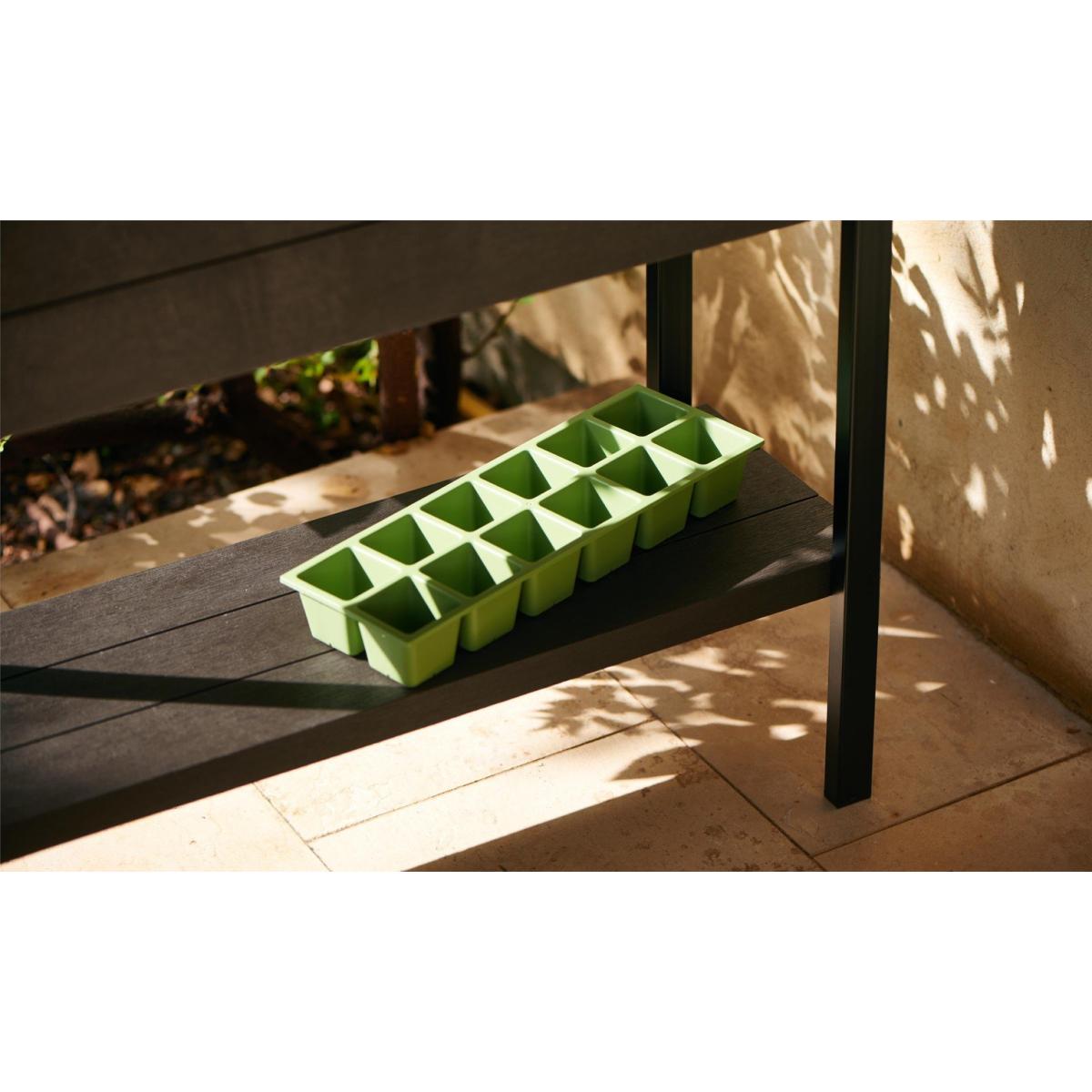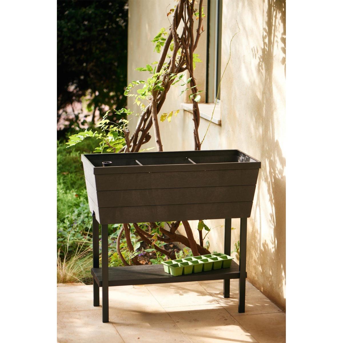 With the Urban Bloomer, you won't need lots of space to have a vegetable garden. This elevated planter features a full smart watering system solution, including an embedded fabric to maintain soil humidity, and a sprouting tray is included to start seedlings. There is a shelf for storing your gardening supplies and the ergonomic design eliminates the need to bend over when tending to your plants. Ideal for growing vegetables and herbs, this planter is suitable for patios, gardens and balconies. Made from resin. Frost resistant. Fade resistant. Rust resistant. Drainage holes. Capacity: 48 litres. Flat packed. Size H82, W78, D37.3cm. Weight 6.8kg. Manufacturer's 2 year guarantee.
