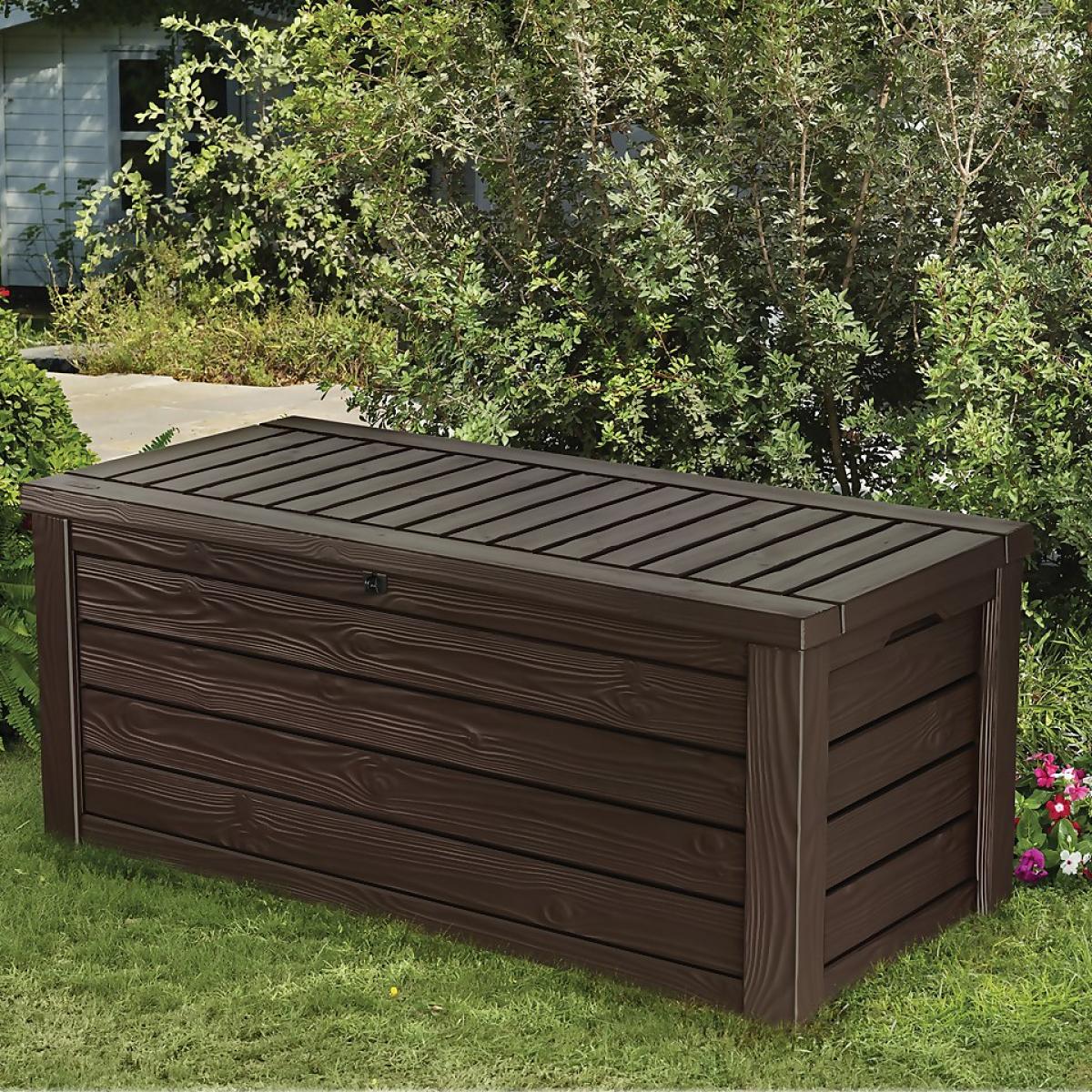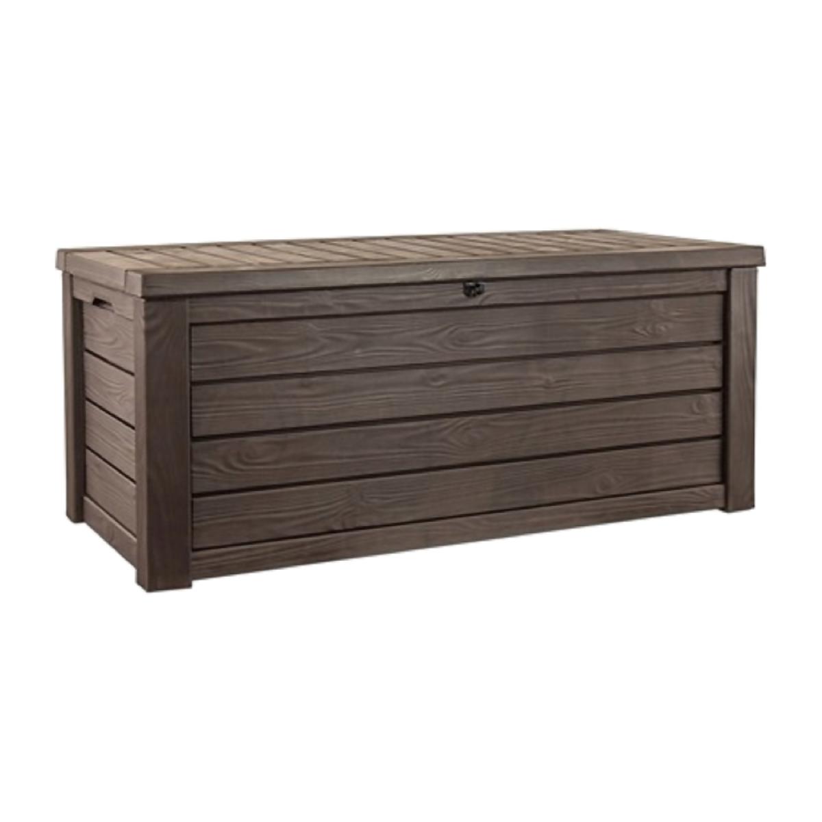 Bring style, storage, comfort and convenience to your patio or garden. The Westwood Deck Box is a robust deck storage box with a spacious 570 litre storage capacity. It doubles as a comfortable outdoor bench for two average adults, and with its timeless natural wood-panelled finish it makes the perfect addition to even the most stylishly elevated outdoor areas. This outdoor storage bench is made from a durable and weather-resistant resin that makes it easy to maintain and sturdy enough to withstand severe weather conditions. Plus the automatic opening mechanism makes it easy to open and close. The Westwood Deck Box stores even your biggest garden items and keeps contents dry and ventilated.