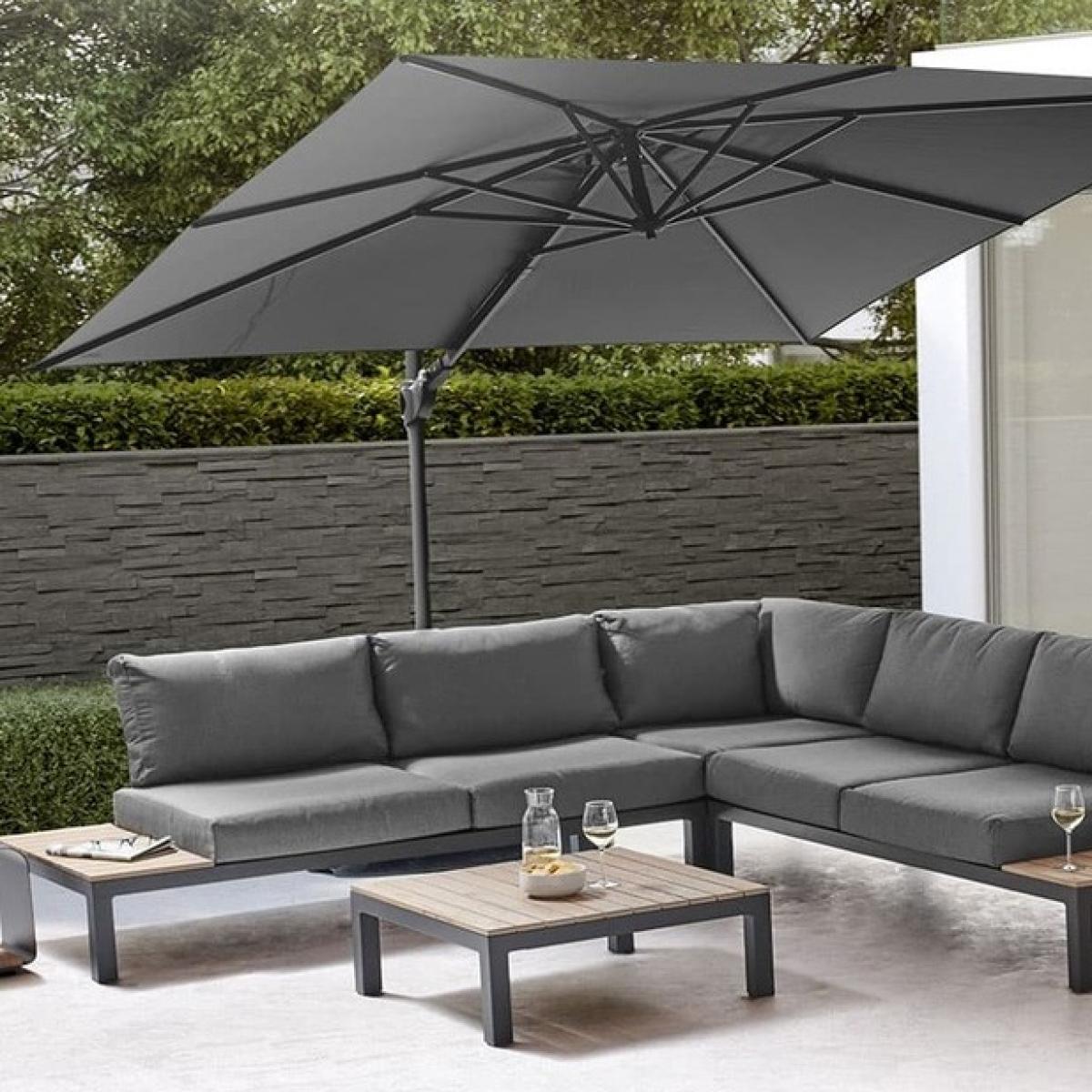 About:. Create cooling shade in your outdoor space this year with this Kettler 2. 5m Free Arm Square Parasol. The huge benefit of a parasol is of course it’s vital shade giving qualities, blocking harmful UV rays at the height of the day and allowing people to be outside during fine spells of weather and not forced indoors. This free arm Kettler garden parasol expands to 2. 5 metres with an easy to use wind-up mechanism and lever located on the shaft, meaning lowering it and raising it is simple. It’s the smaller of our three Kettler parasol models, but still offers ample shade for four seat garden furniture sets and loungers, for example. The canopy is PU coated and UV50+ rated for protection, whereas the slate shade itself is protected from fading by inbuilt colour fast properties. Position this grey garden parasol so that it covers your garden dining setups with ease, the 360. °. Swivel motion combined with the height adjustable function allow for complete freedom to achieve the best coverage possible. Complete with a storage sleeve cover to fold down and neatly store when not in use, it also comes with a 4 piece base that’s refillable with water (or sand). The square shape and neutral slate tone means this parasol should suit many garden arrangements and furniture alike. Key Features:.