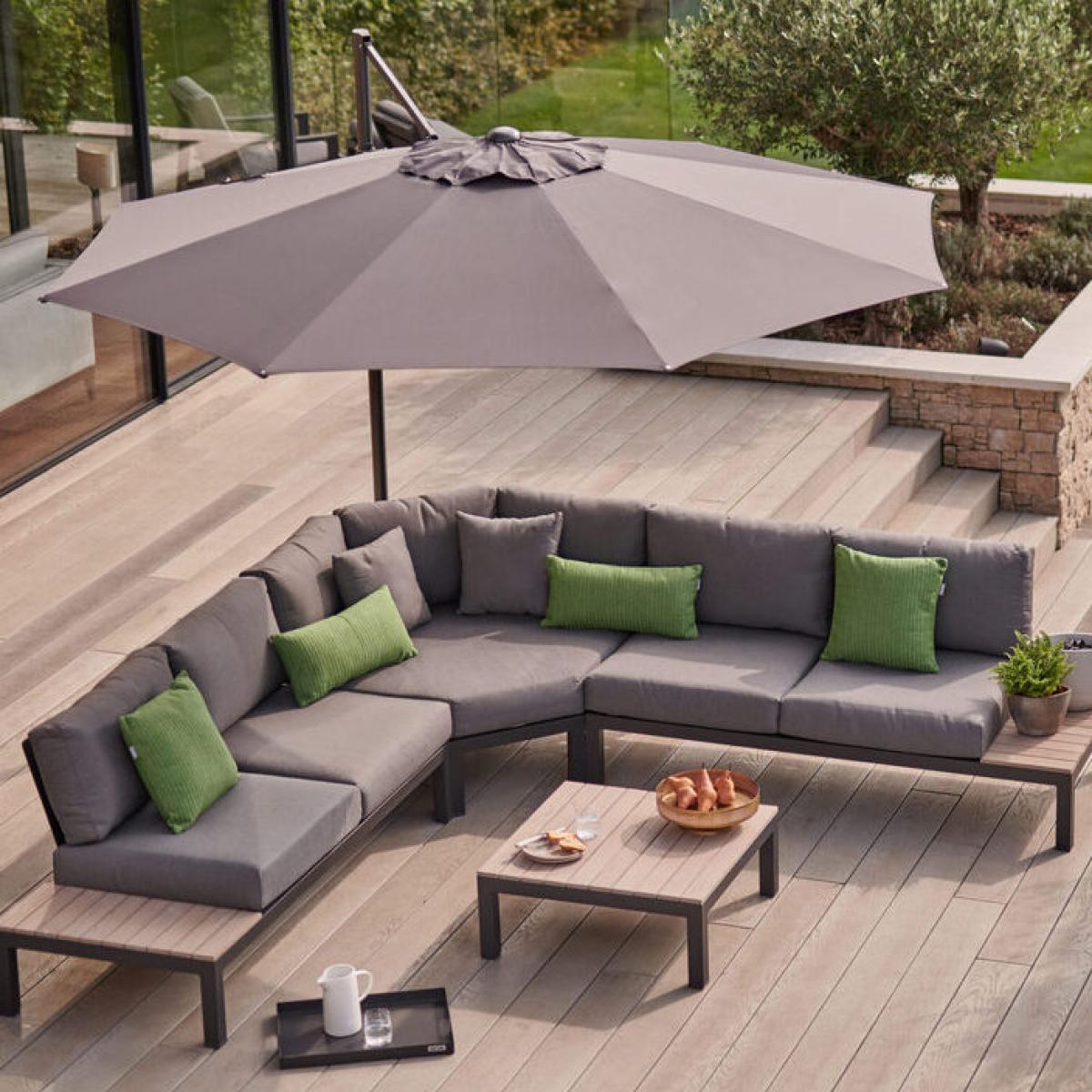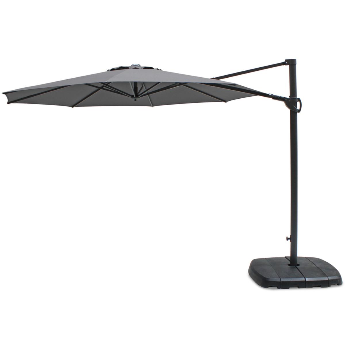 About:. Guarantee shade in your outdoor space this year with this sizeable Kettler parasol 3m with a wide round shape canopy. The sun-shade should create enough coverage to shield a 6 seater garden furniture set, so during the height of those finer days there’s no need to retreat indoors. A mobile free arm system helps this grey garden parasol position into the required angle and height to cover your desired space. A lever found the on the shaft helps to lower or raise the height, which is at a suspended position from the base for ample clearance over your chosen furniture. The actual canopy expands with an east to use wind up function. Whilst the 360. °. Swivel motion makes for a complete freedom to achieve the best coverage possible. The polyester of this Kettler 3m parasol is rated at providing UV50+ protection and has inbuilt colour fast non fading properties. It comes with a handy storage sleeve cover that matches the slate, plus offers the same light shower resistance as the canopy. The shaft is powder coated aluminium so won’t ever rust. Whilst the structure is securely and safely held in place by a large sturdy 4 piece base that’s refillable with either water or sand. We think this neutral colour large Kettler parasol will nicely cater to gardens for years to come. Key Features:.