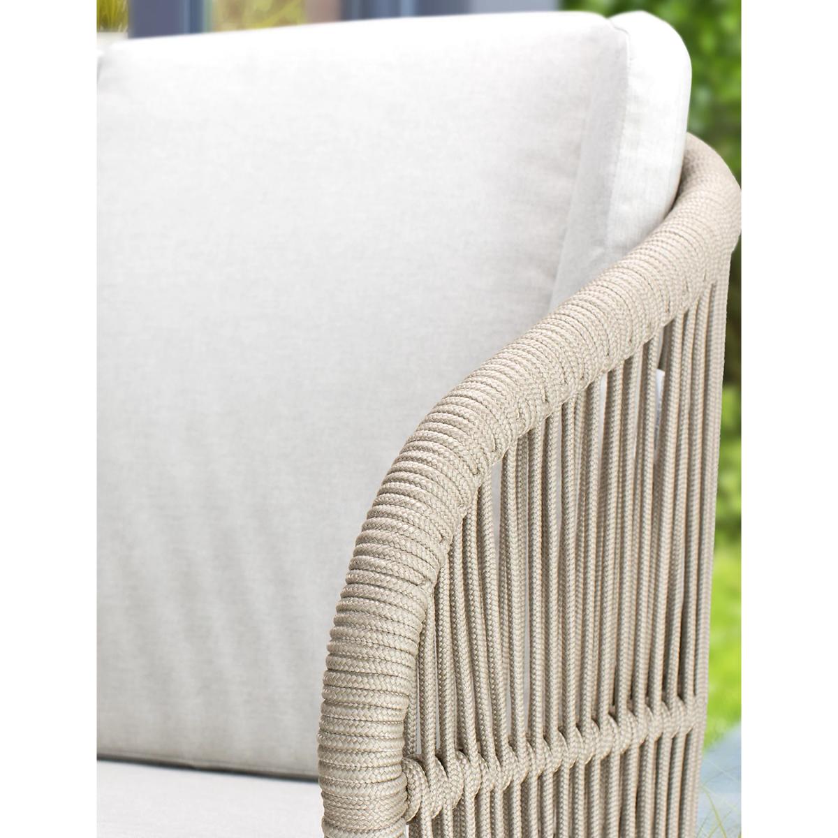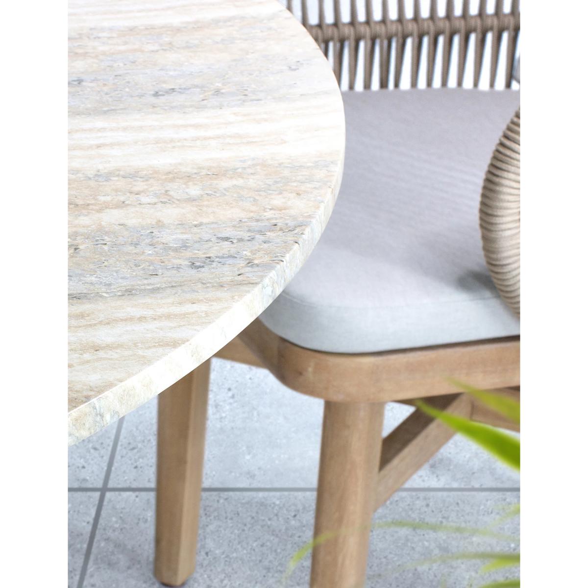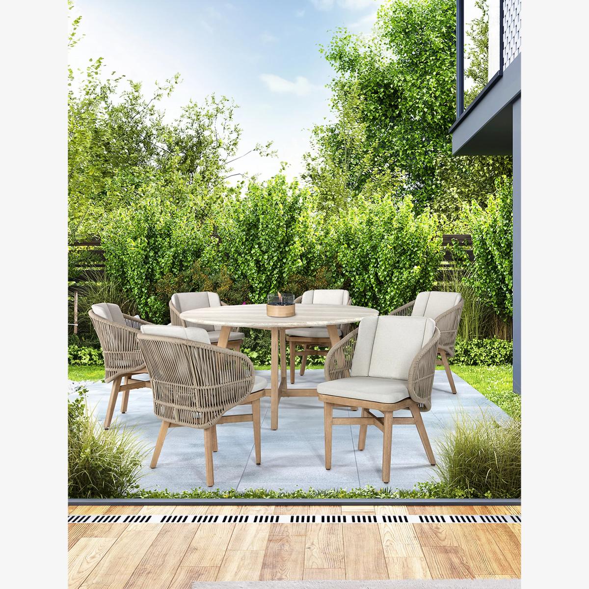 Take mealtimes al fresco with the stylish Bali dining set from Kettler. It's made from eucalyptus wood for durability and a touch of nature-inspired elegance. Rope backs on the chairs add a modern twist. The matching table has a beautiful travertine top, perfect for setting the scene for memorable meals.