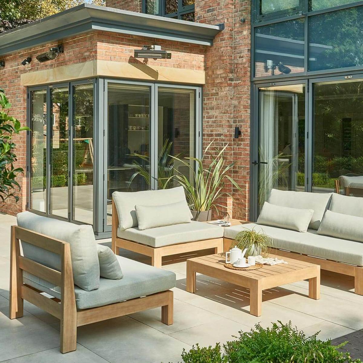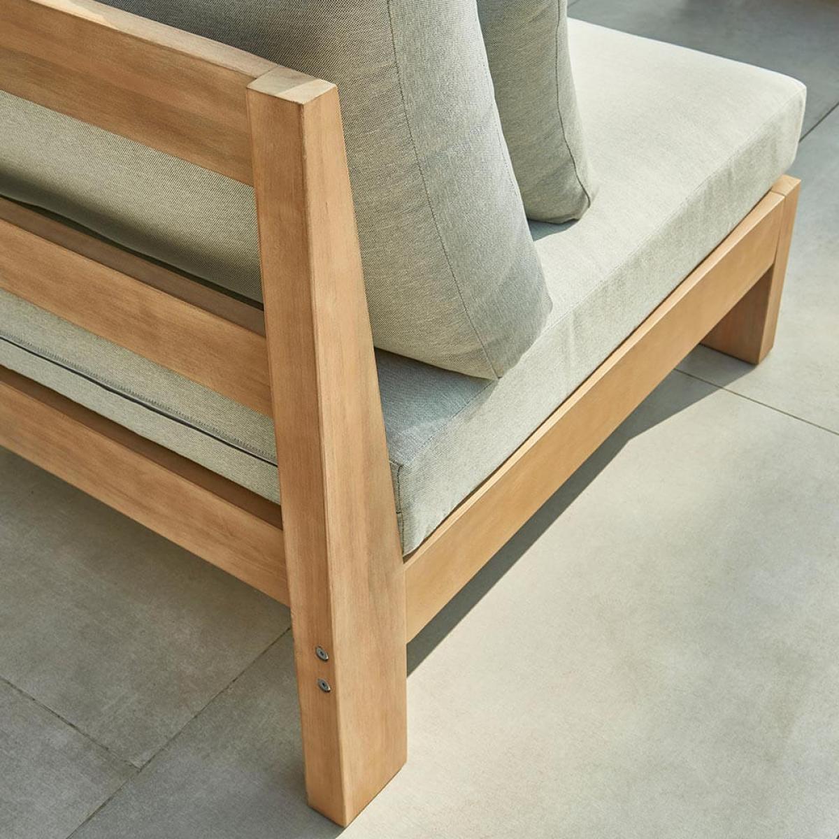Set Consists of:. About:. The Kettler Beach Low Lounge Set breathes all the mellow relaxing properties of sun-soaked coastal tropics straight into your space. This Acacia wood garden furniture is charming and very easy on the eyes, furthermore it’s durable and incredibly comfortable. This modular sofa setup is primarily made from Acacia wood, a timber noted for its hardwearing properties as well as a striking earthy appearance, this makes up the coffee table as well as the chairs and side table. The wood is naturally water repellent so can deal with an unpredictable forecast. For best care with Acacia wood furniture dust regularly, use coasters/trivets and having a yearly routine of cleaning and re-finishing is a good idea. Kettler have a. Bevy of products to assist specifically with their Acacia woods. Complete with a spacious 2 seat sofa and 2 chairs these are pleasingly low lying for lounged out days of unwinding. The side table is an innovative design benefitting from an overhang surface, perfect for lounging with drinks in hand. Find thick silver-green tone cushions that offer plenty of comfort for hours of lounging and re accompanied by bolster tube cushions to add further back support and comfort. These cushions will withstand light showers but are best stored indoors for heavy rain and the winter months. The seating is completely independent of one another so is entirely customisable in layout, move about as preferred. Special things to note on caring for this set:. Key Features:.
