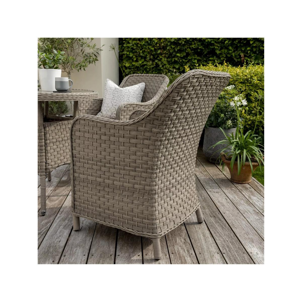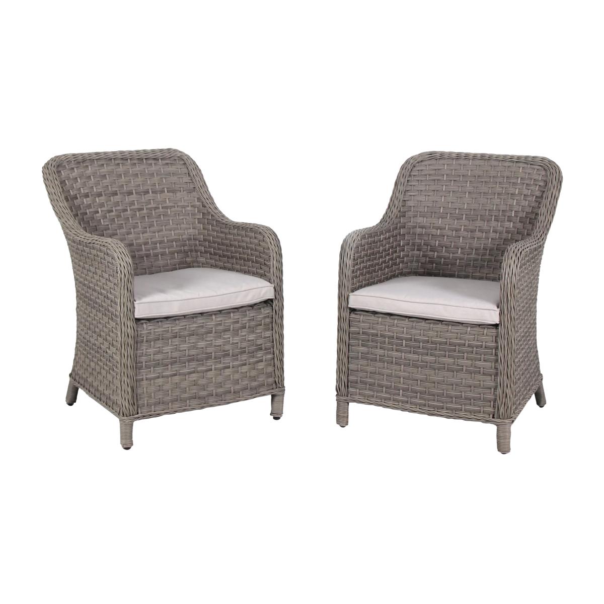 Pair of Charlbury dining chairs, a great addition to a Charlbury garden dining set from KETTLER. Charlbury furniture is made with strong powder-coated aluminium frames and UV-resistant, hand-woven synthetic wicker. The design features 5mm full-round wicker on the edges plus 3mm horizontal flat wicker and 5mm vertical double half-round wicker on the sides. The weatherproof cushion is designed with comfort in mind, retains its shape and has double piping to make it hardwearing. This item can be left outdoors all year round, except for the seat pad. A tailored protective cover is also available. Key features: Pair of garden dining chairs Robust powder-coated aluminium frames Hand-woven synthetic wicker in varying weaves Comfortable seat cushion pads Arrive fully assembled for immediate use Adjustable feet for uneven surfaces Matches furniture in the KETTLER Charlbury range Choose the perfect outdoor furniture We have a vast selection of furniture for you to choose from which will suit the home or garden. The majority of our furniture ranges have been hand woven using a synthetic wicker. The thinner the weave, the longer it takes for the skilled workers to complete. All weave types are durable so they’ll last throughout the seasons All woven outdoor furniture is UV protected so it will not fade in direct sunlight All woven outdoor furniture is easy to maintain, simply wipe clean using warm water FlatA weave of various widths which offers incredible value for money Half roundMore detailed with a 3D effect, the half round is a round weave in half which displays a wicker appearance on the top and hollowed underside Double half roundA double strand of half round, this is a wider width of weave which achieves an expensive appearanceRound weaveA very tight weave which is available in various widths, from 2mm to 5mm RopeA selection of our ranges have been made using rope. The yarn is made up of 10,000 (approx) woven strands with a double core for extreme strength, does not attract mould even if wet for a long time and is UV resistant.
