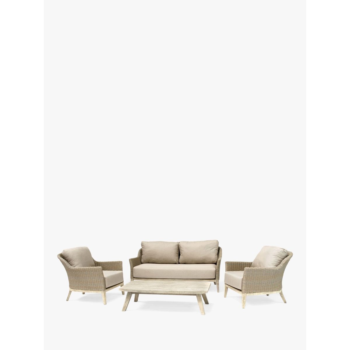 Made from high-quality, hardy FSC-certified acacia wood, this three-seater Cora garden sofa from KETTLER is designed for use outdoors or in a conservatory. With its weather-resistant synthetic wicker, this low lounging design has sumptuous seat and backrest cushions for comfortable support. Key features: 3-seater Cora garden sofa Made of FSC-certified acacia wood Weather-resistant wicker Matches furniture in the Cora range by KETTLER Shower-resistant seat and backrest cushions Floor clearance: 22cm<Want to see it first? You may want to see and get a feel for the product in one of our shops before ordering. We'll be able to tell you where the range you'd like to view is on display. Choose the perfect outdoor furniture We have a selection of wooden furniture for you to choose from which will suit the home or garden. Below are a few options to consider when choosing your perfect outdoor furniture. Teak A premium and popular wood with an attractive appearance which ages beautifully. Strong, durable and resistant to rot and decay, this furniture requires little maintenance Eucalyptus Distinctive scent and appearance which darkens as it ages. Provides similar natural benefits to teak including moisture resistance, hardness and durability. It's plentiful in supply which makes the furniture an inexpensive choice. Acacia Naturally durable, this wood is incredibly hard and is unlikely to suffer damage during everyday use. It provides similar natural benefits to teak, yet unlike many other hardwoods, acacia is also relatively fast growing which minimises the environmental impact.