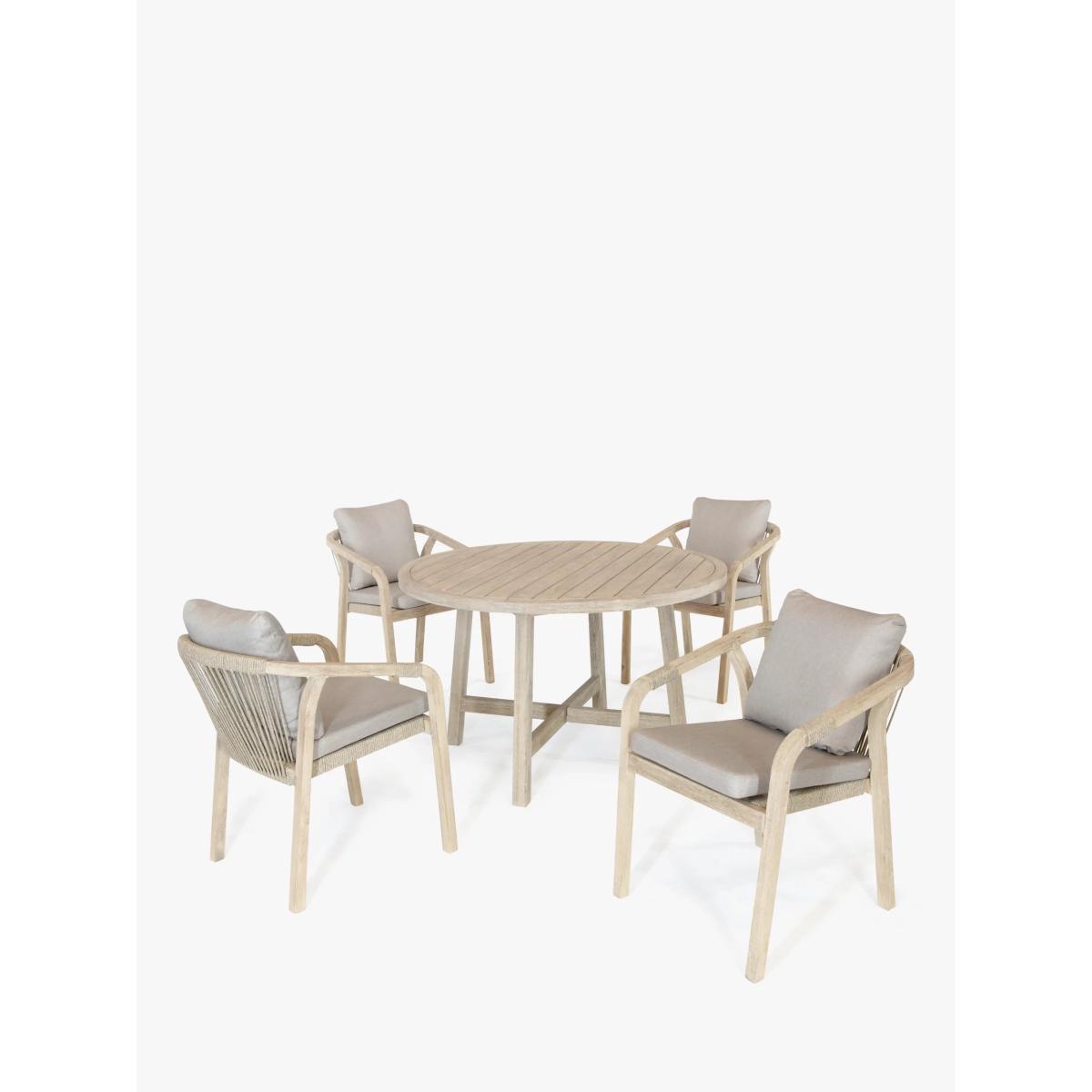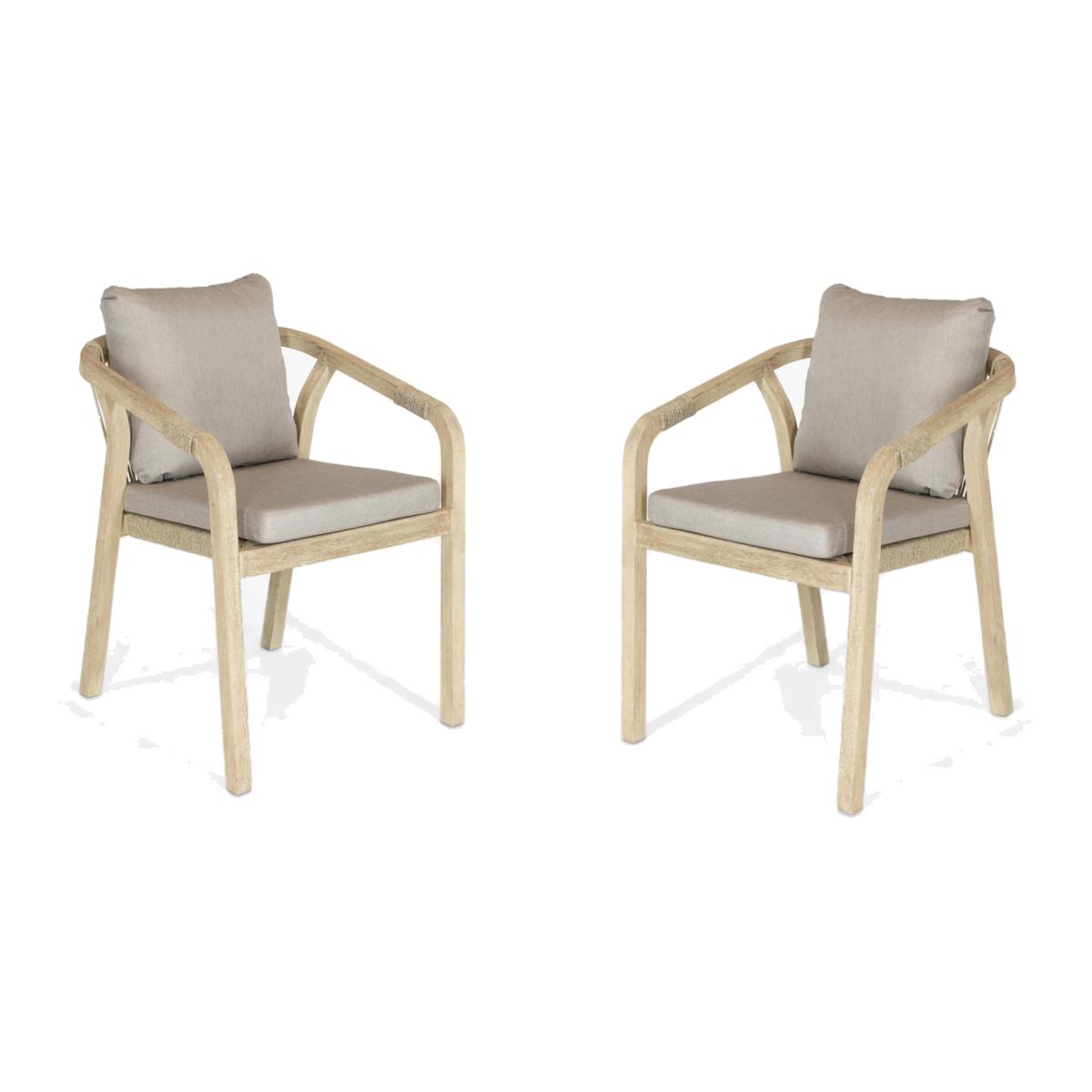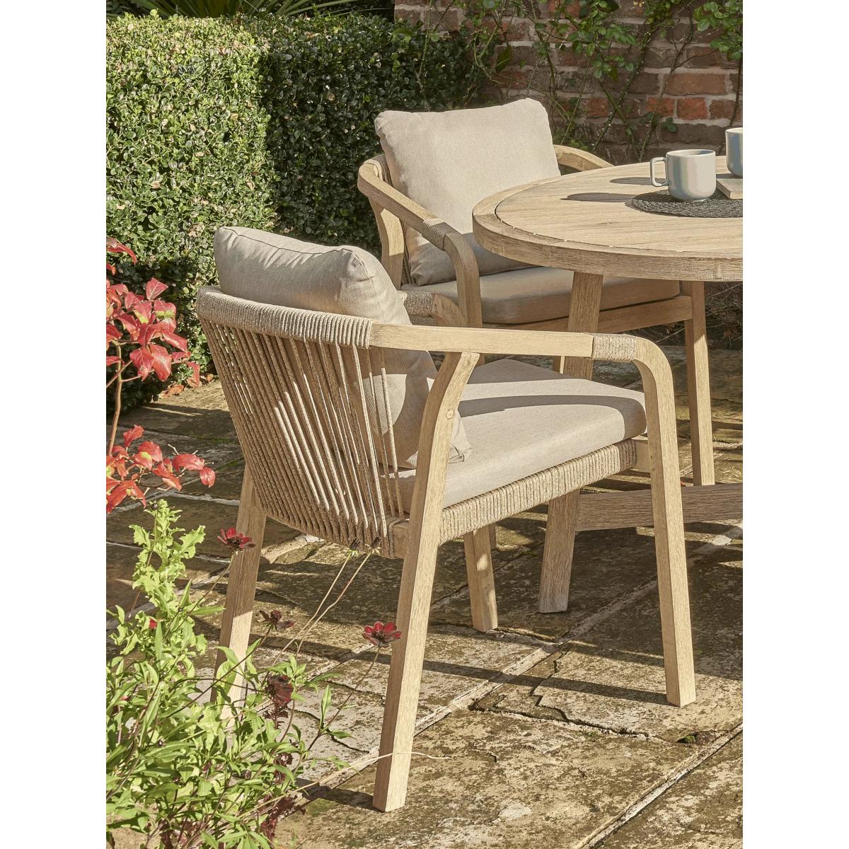 A distinctive style, the Cora rope range of garden furniture combines high-quality, FSC-certified acacia wood with a stylish rope design, for use outdoors or in a conservatory. Ergonomically designed for comfort, this pair of dining armchairs come with seating and backrest cushions. Key features: Pair of Cora garden dining armchairs Made with FSC-certified acacia wood frames Shower-resistant seat and backrest cushions included Stylish rope design Matches furniture in the Cora range by KETTLER Choose the perfect outdoor furniture We have a selection of wooden furniture for you to choose from which will suit the home or garden. Below are a few options to consider when choosing your perfect outdoor furniture. TeakA premium and popular wood with an attractive appearance which ages beautifully. Strong, durable and resistant to rot and decay, this furniture requires little maintenanceEucalyptusDistinctive scent and appearance which darkens as it ages. Provides similar natural benefits to teak including moisture resistance, hardness and durability. It's plentiful in supply which makes the furniture an inexpensive choice. AcaciaNaturally durable, this wood is incredibly hard and is unlikely to suffer damage during everyday use. It provides similar natural benefits to teak, yet unlike many other hardwoods, acacia is also relatively fast growing which minimises the environmental impact.