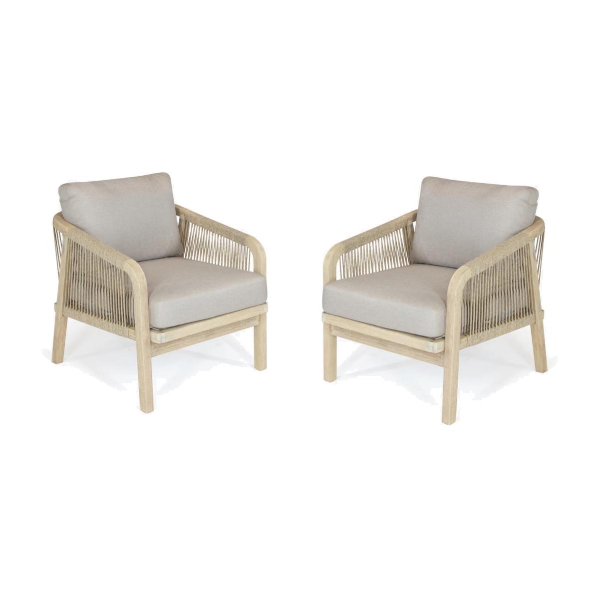 A distinctive style, the Cora rope range of garden furniture combines high-quality, FSC-certified acacia wood with a stylish rope design, for use outdoors or in a conservatory. Ergonomically designed for comfort, this pair of low armchairs come with seating and backrest cushions. Key features: Pair of Cora garden armchairs Made with FSC-certified acacia wood frames Shower-resistant seat and backrest cushions included Stylish rope design Matches furniture in the Cora range by KETTLER Want to see it first? You may want to see and get a feel for the product in one of our shops before ordering. We'll be able to tell you where the range you'd like to view is on display. Choose the perfect outdoor furniture We have a selection of wooden furniture for you to choose from which will suit the home or garden. Below are a few options to consider when choosing your perfect outdoor furniture. Teak A premium and popular wood with an attractive appearance which ages beautifully. Strong, durable and resistant to rot and decay, this furniture requires little maintenance Eucalyptus Distinctive scent and appearance which darkens as it ages. Provides similar natural benefits to teak including moisture resistance, hardness and durability. It's plentiful in supply which makes the furniture an inexpensive choice. Acacia Naturally durable, this wood is incredibly hard and is unlikely to suffer damage during everyday use. It provides similar natural benefits to teak, yet unlike many other hardwoods, acacia is also relatively fast growing which minimises the environmental impact.