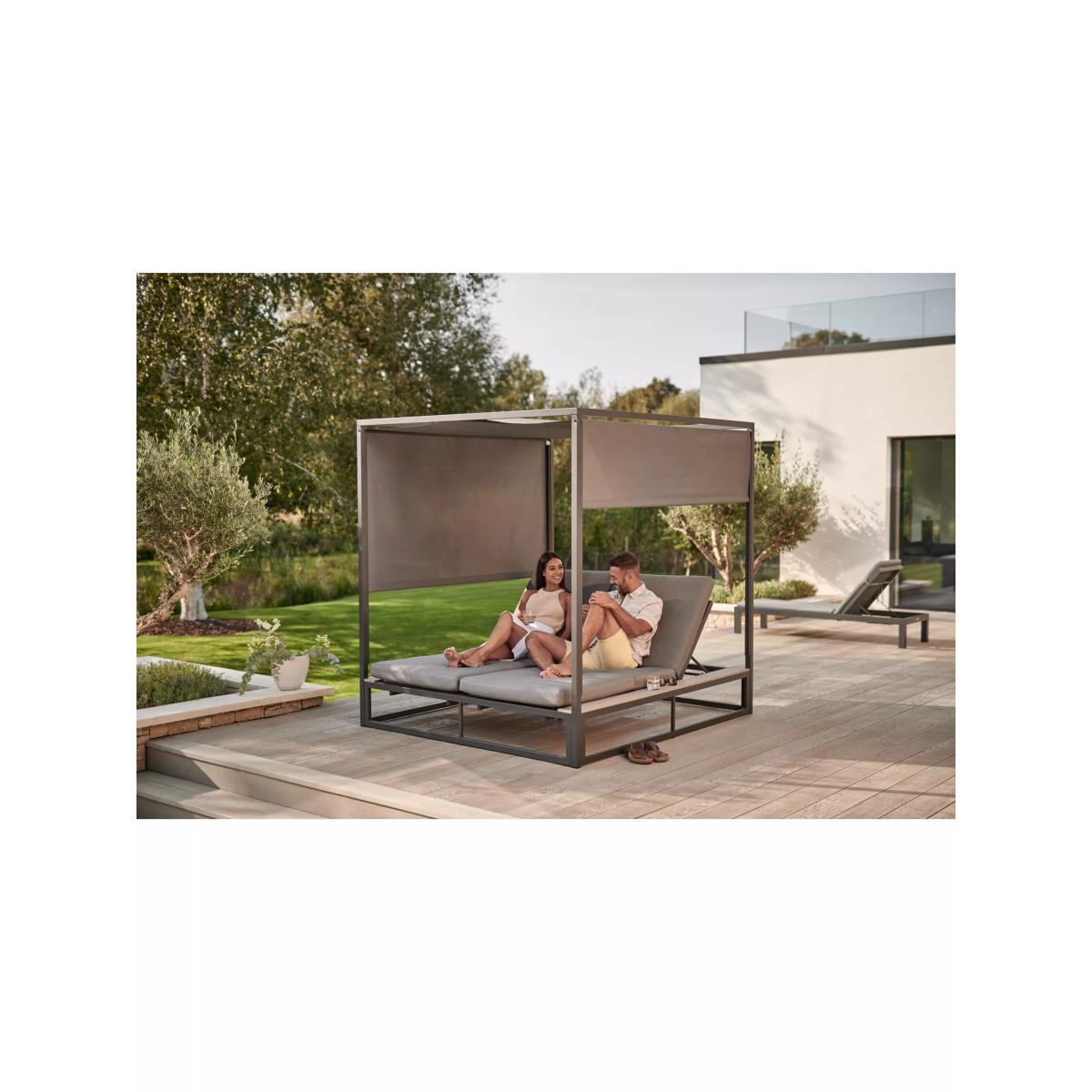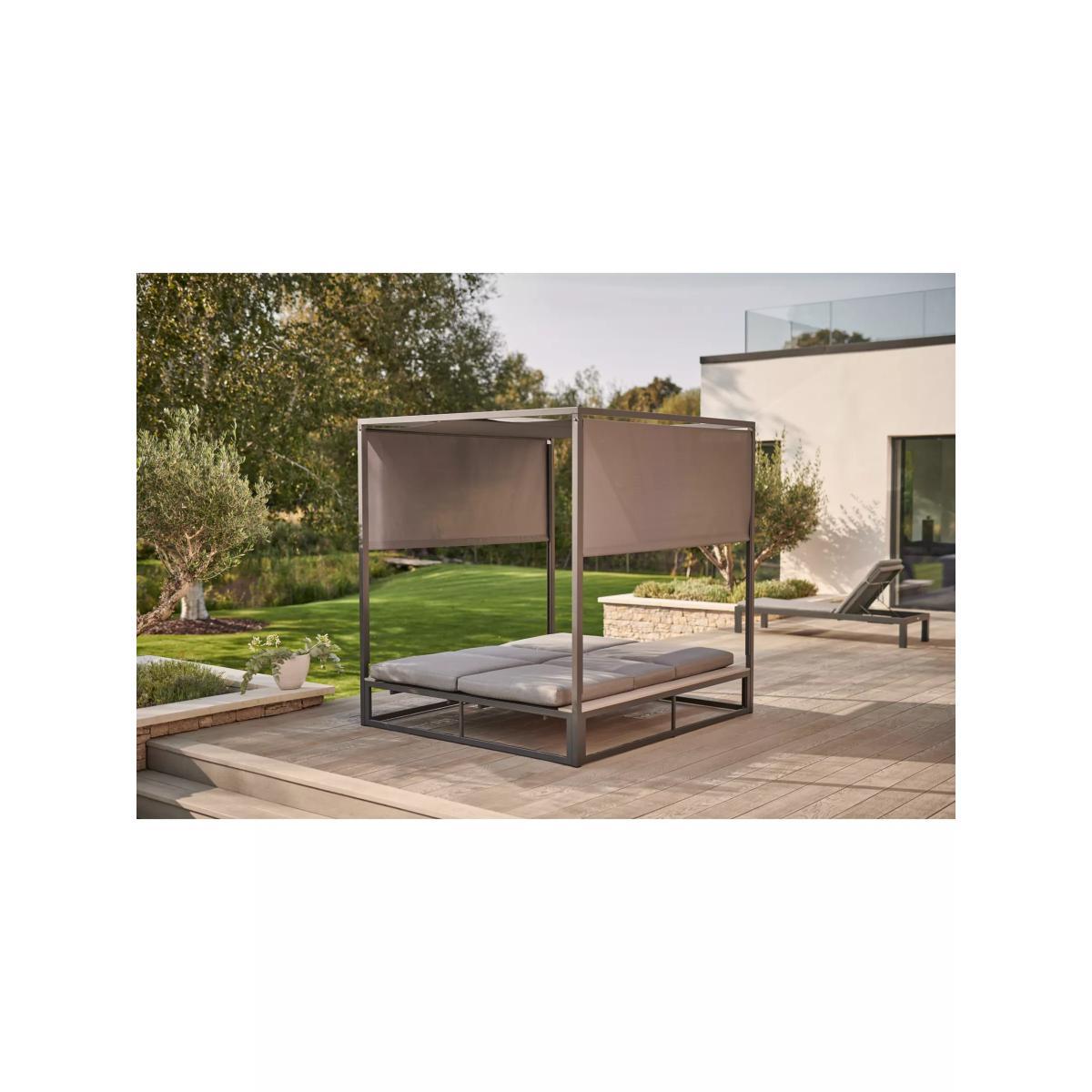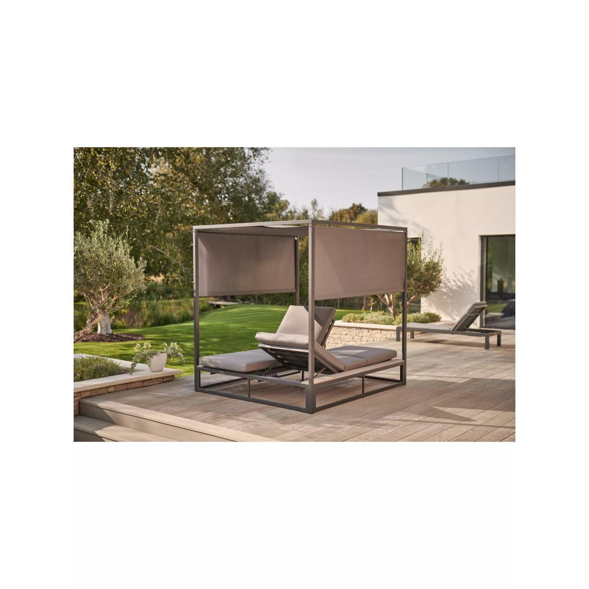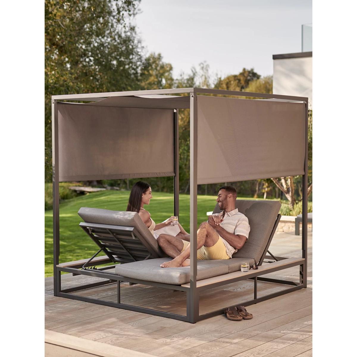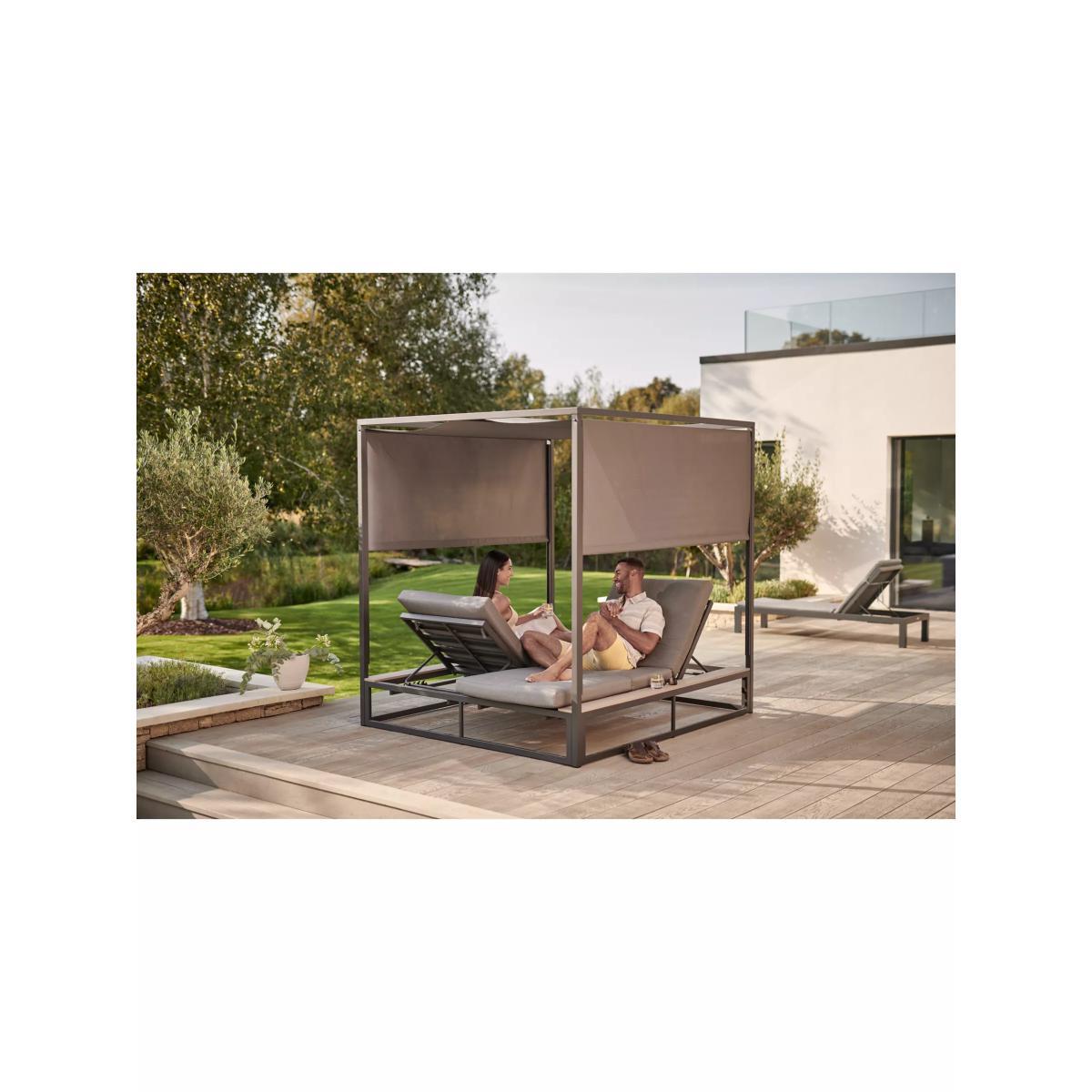 The KETTLER Elba double day bed is a statement piece for the garden, made with a robust aluminium frame and beautiful teak wood side ledges. Matching the minimalist design of the Elba range of outdoor furniture, it can be left outdoors all year round. The aluminium legs are weatherproof and rust-proof with a charcoal finish and foam-core cushioning in a complementary shade providing ultimate relaxation. The textile sling fabric moves with the contours of your body to ensure comfort and the cushions are made to retain their shape year after year. Bring the cushions inside during inclement weather and winter months. Simple to use, the two sunloungers can be reclined independently. Each one has six reclining positions. When you need protection from the sun, pull down the large adjustable canopy from either side. Key benefits Day bed with two reclining sunloungers Robust aluminium frames FSC-certified teak wood side panels Large protective roof canopy Textile sling fabric cushioning Want to see it first? You may want to see and get a feel for the furniture in one of our shops before ordering. We'll be able to tell you where the range you'd like to view is on display.
