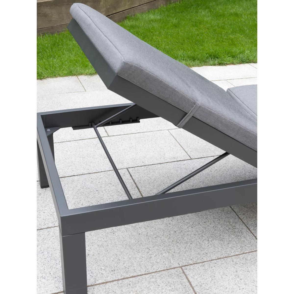 The Elba sunlounger has a robust aluminium frame and a minimalist design suiting the Elba range of outdoor furniture. The lounger can be adjusted to 5 different positions. The aluminium legs are weatherproof and rust-proof. Their charcoal finish and foam-core cushioning in a complementary shade provide ultimate relaxation. The textile sling fabric is kept in place with a strap and it moves with the contours of your body to ensure comfort. Want to see it first? You may want to see and get a feel for the furniture in one of our shops before ordering. We'll be able to tell you where the range you'd like to view is on display.