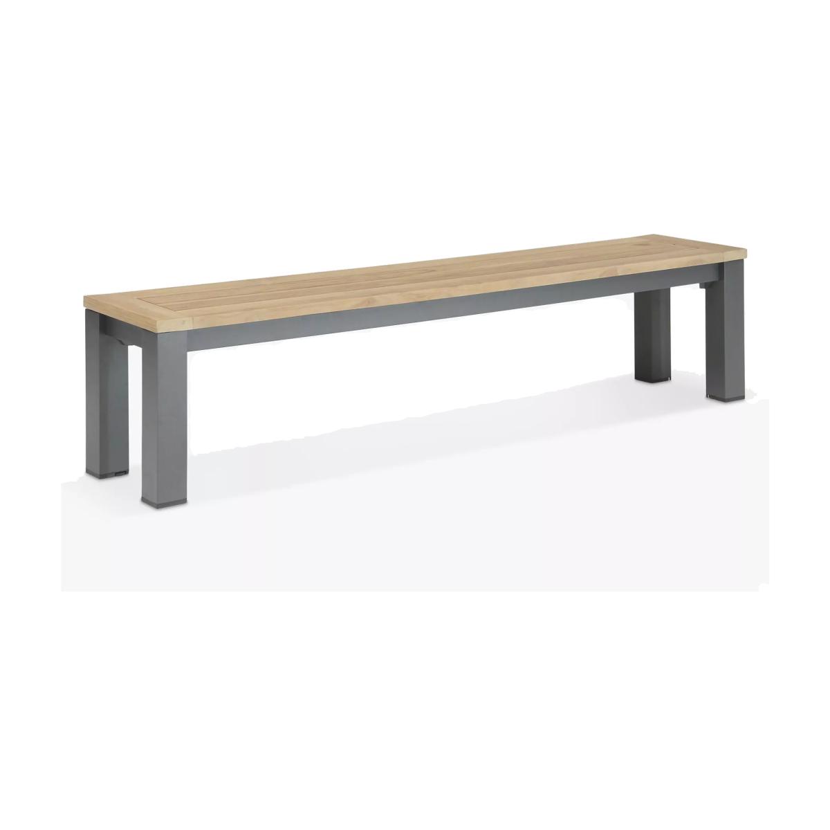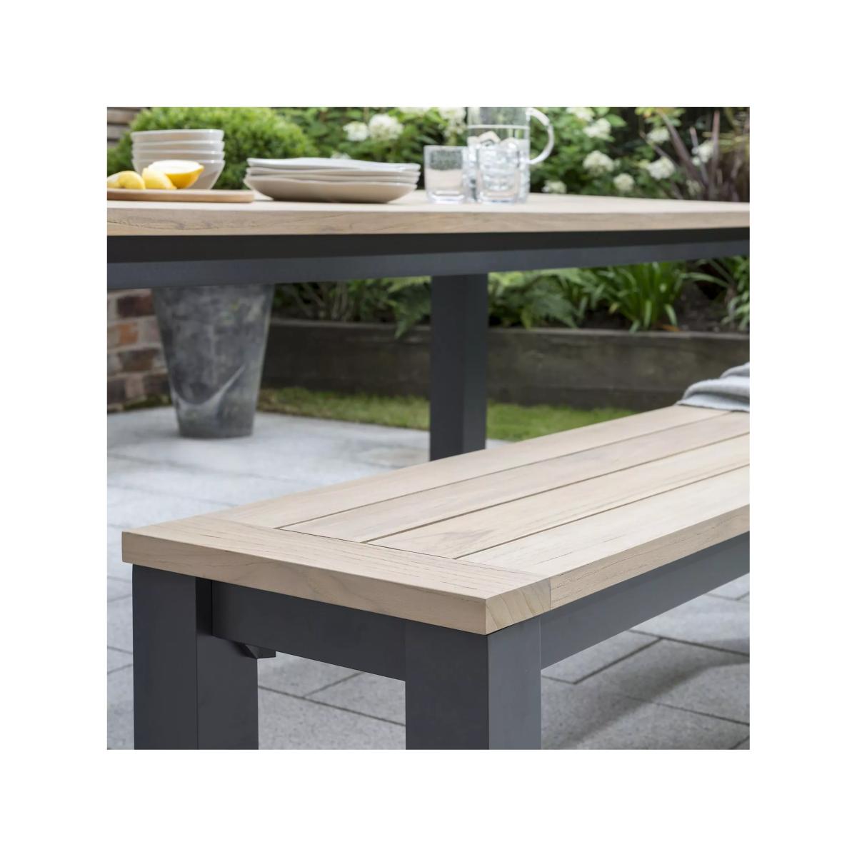 The Elba dining bench has a robust aluminium frame and beautiful teak wood top. Matching the minimalist design of the Elba range of outdoor furniture, it's at home in both the garden and conservatory. Sitting up to three people comfortably, this bench has a weatherproof and rust-proof frame and legs and a naturally weather-resistant top. By choosing this product you are supporting responsible management of the world's forests. The Forest Stewardship Council® (FSC®) is a global, not-for-profit organisation that helps take care of forests and the people and wildlife that call them home. To learn more, visit fsc.org.