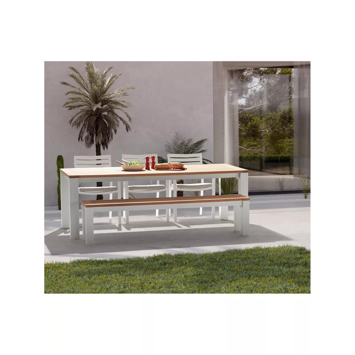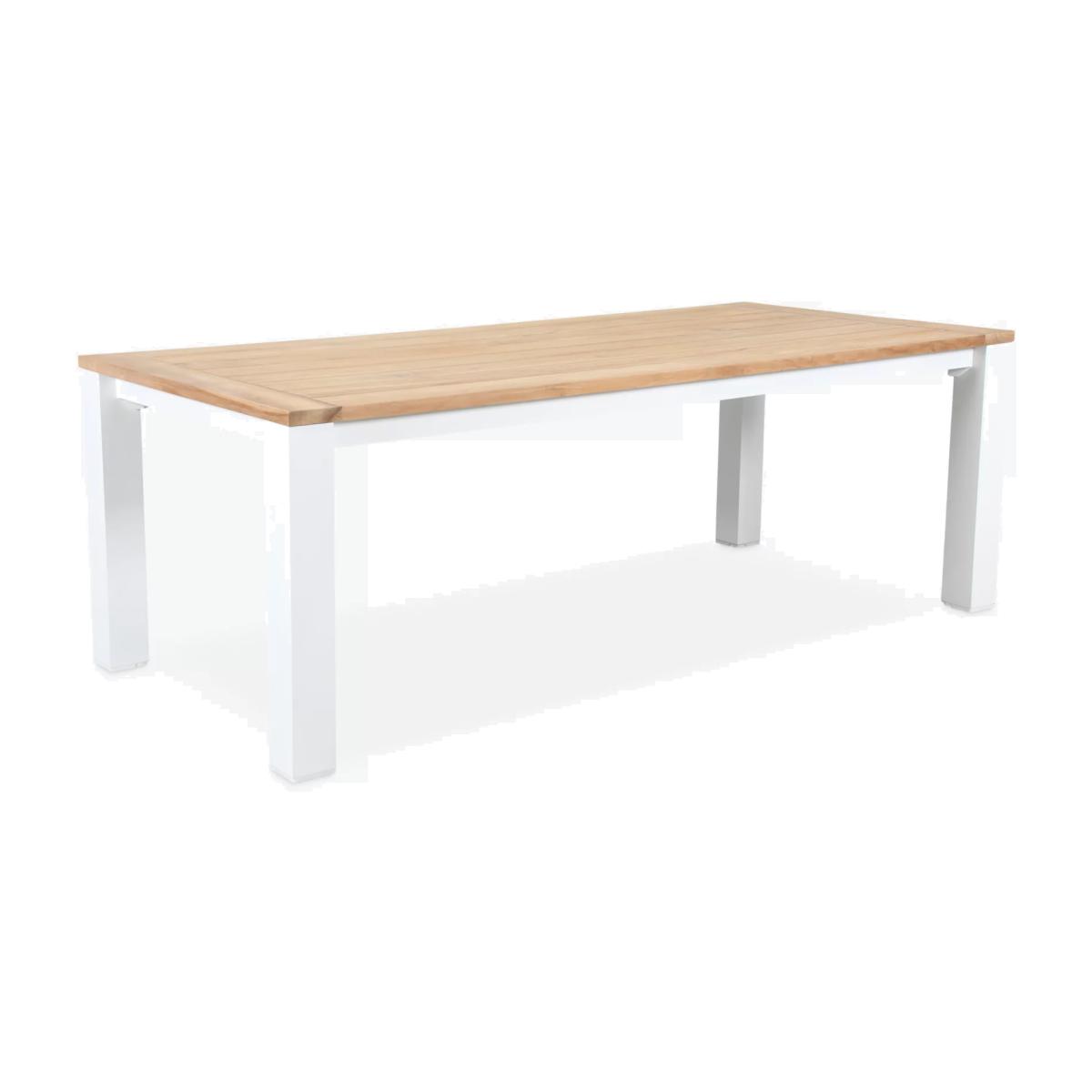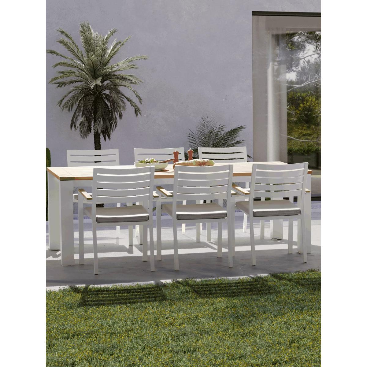 The Elba dining table has a robust aluminium frame and beautiful teak wood top. Matching the minimalist design of the Elba range of outdoor furniture, it's at home in both the garden and conservatory. Sitting up to eight people comfortably, the table has aluminium legs that are weatherproof and rust-proof. The finish complements the rustic teak wood top, with its grey coating creating a weathered look. Want to see it first? You may want to see and get a feel for the furniture in one of our shops before ordering. We'll be able to tell you where the range you'd like to view is on display.