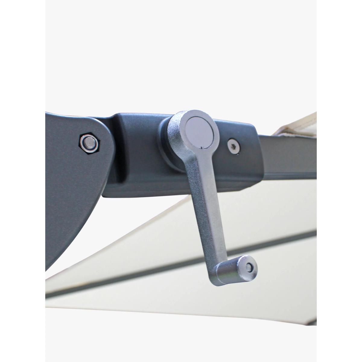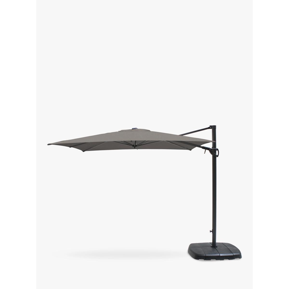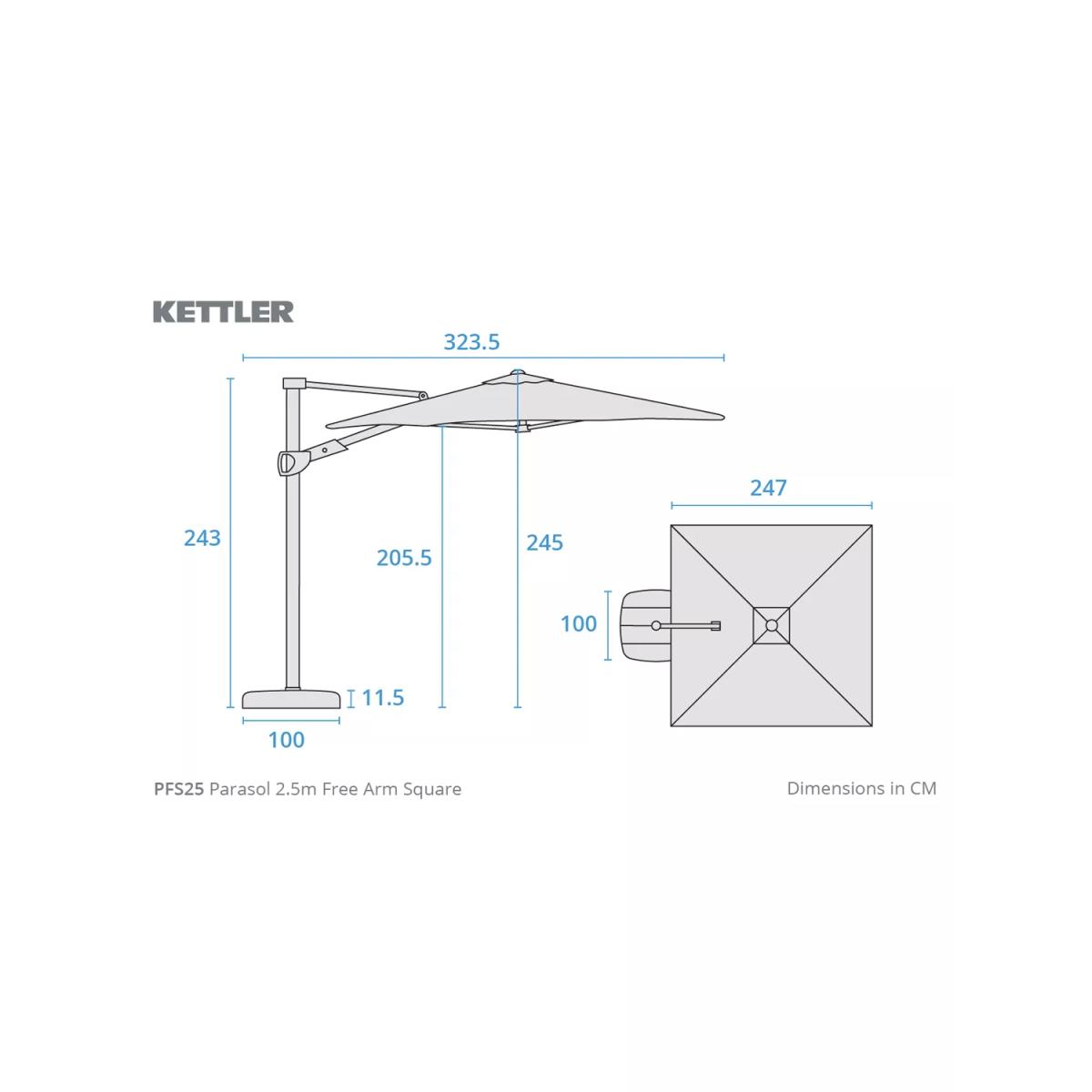 This 2.5m free-arm square parasol from KETTLER is easy to operate via the wind-up mechanism and the canopy has been designed to tilt vertically. Boasting a high-quality aluminium frame with UV50+ resistance canopy, the parasol includes a night cover to protect it from dirt and bird droppings when not in use. Good to know: Always use the parasol base weight. Fill the four-part resin base with sand and top up with water to weigh it down in the chosen location in your garden. Once the base is filled, it will be too heavy to move. When not in use or during windy weather, it is recommended to take the parasol down or store it away, depending on the conditions.