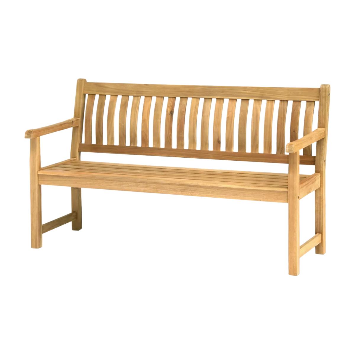The Hampton 5-foot garden bench is ideal for a balcony or garden or as additional seating outdoors. The classic slatted design has straight armrests and seat as well as a shaped back in a natural finish. Made from high-quality, FSC-certified eucalyptus wood that's naturally weather-resistant, the bench seats up to three people. Garden bench seats up to three people High-quality, FSC-certified eucalyptus wood Naturally weather-resistant hardwood A tailored seat pad and protective cover to fit are available separately Part of the KETTLER Hampton range of garden furniture Care information Wood is a natural material which reacts to weather conditions. Depending on weather type, the wood can swell or dry, resulting in small cracks. The risk can be minimised by cleaning and/or treating the furniture at regular intervals and keeping it clean and dry Remove dust regularly with a clean, soft brush and wipe down with a clean, damp cloth Wipe spills immediately to prevent staining Use KETTLER wood aftercare treatment to keep the furniture maintained and looking its best Moving parts such as locking mechanisms, catches and joints need to be checked/lubricated where necessary During winter and wetter months, store in a cool, dry and well-ventilated location to prevent excessive shrinkage or expansion of the wood Consider a KETTLER tailored cover or use a universal breathable cover By choosing this product, you are supporting responsible management of the world's forests. The Forest Stewardship Council® (FSC®) is a global, not-for-profit organisation that helps take care of forests and the people and wildlife that call them home. To learn more, visit fsc.org.
