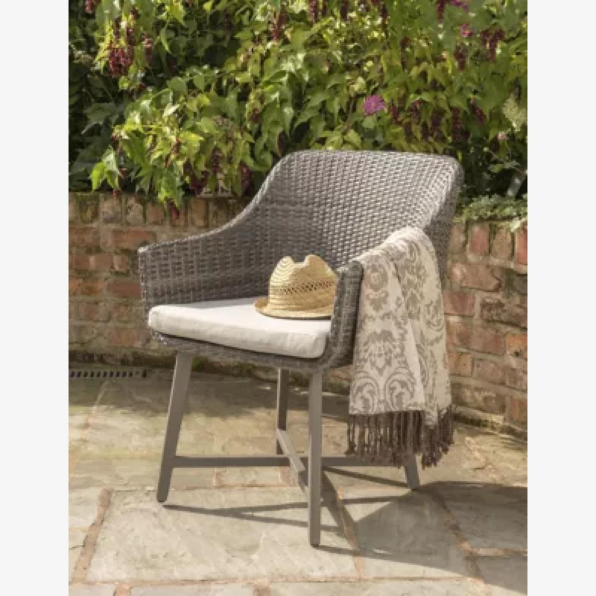 I love the Kettler LaMode four-seater because of its sleek, contemporary grey finish that works beautifully in a variety of outdoor settings. It’s versatile enough to complement both modern minimalist gardens and more traditional outdoor spaces. The woven design adds texture without overwhelming, making it an understated statement piece. Practically, it’s sturdy and weather-resistant, ideal for year-round use. For styling, consider pairing it with neutral or patterned outdoor cushions to inject colour and comfort, and add a casual throw or fairy lights nearby for a cosy, inviting feel. It's a practical yet chic addition that elevates garden dining areas effortlessly.