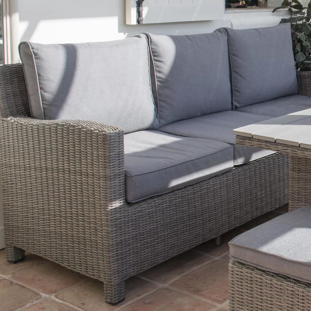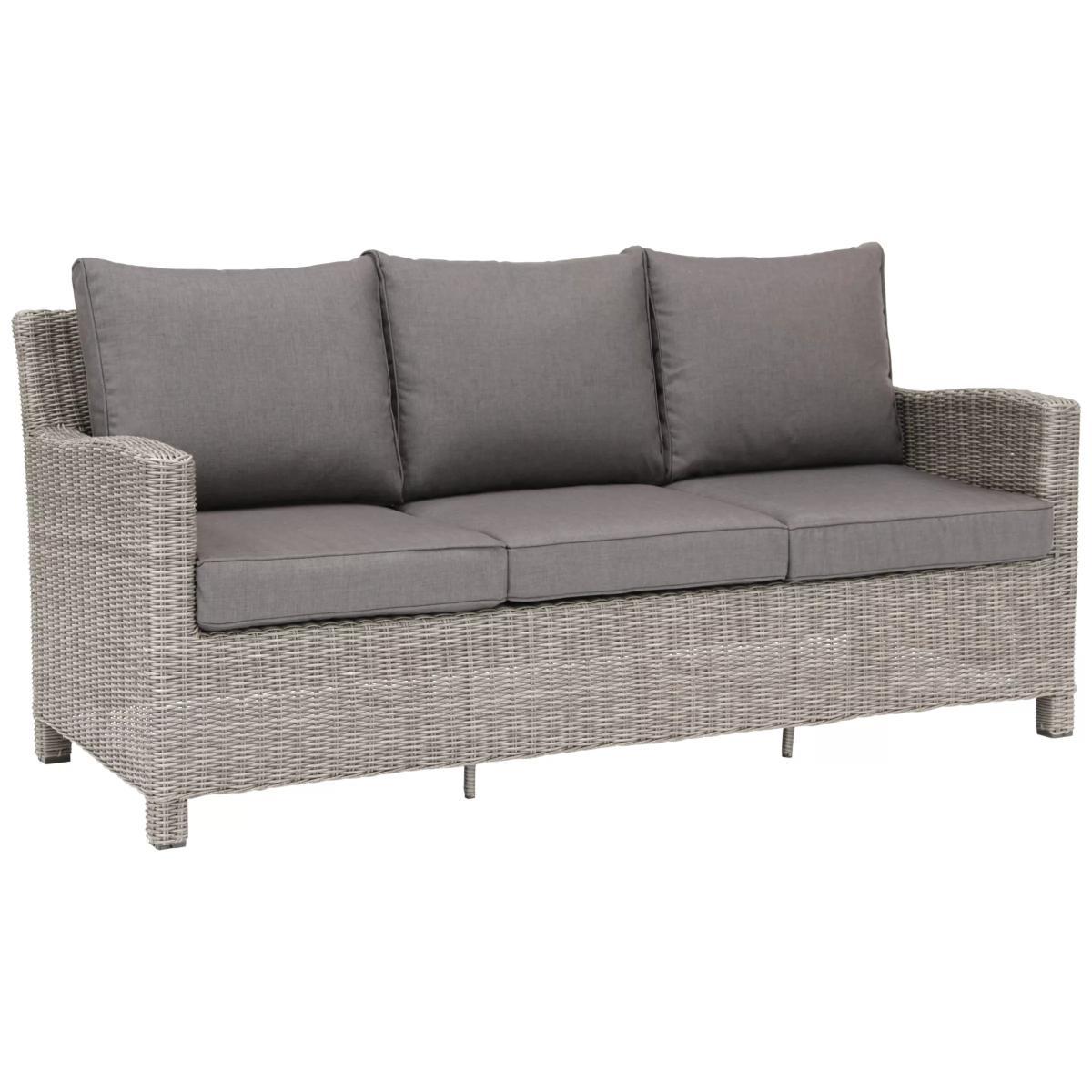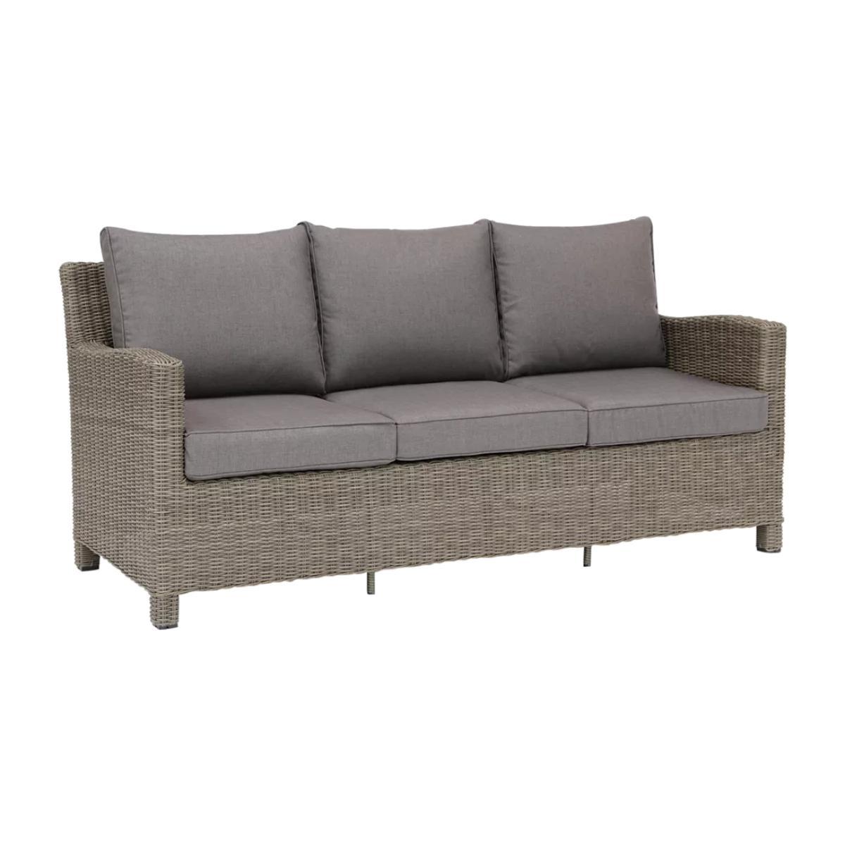 The Palma three-seater sofa is made from high-quality, hand-woven synthetic wicker, making it weatherproof and suitable for leaving outdoors all year round. Fully assembled and equipped with protective footcaps and cushions, you'll be able to relax as soon as it arrives. Suitable as an addition to an existing set or for making your own combination, this sofa coordinates with other Palma sets such as the Palma Corner, Palmer Cube or Palma Mini to extend seating for extra guests. With style and durability at the heart of the design, KETTLER's Palma outdoor furniture is made of weatherproof synthetic wicker with a 6mm half-round weave on powder-coated aluminium frames, creating a hard-wearing traditional rattan look. Key features: Three-seater garden sofa Traditional-style handwoven synthetic wicker Weatherproof, rustproof and UV-resistant Lightweight yet robust aluminium frames Double piped back cushions and 5cm foam core seat cushions Soft, shower-resistant cushions Easy to maintain Match with other furniture in the Palma range Durable and weatherproof Built to last, the sofa is made with lightweight yet sturdy powder-coated aluminium frames and handwoven synthetic wicker with a 6mm half-round weave. The set is weatherproof, rustproof and UV-resistant, so it can remain outdoors all year round without it fading or cracking. Low maintenance The set needs just an annual clean with mild soapy water (without abrasive solvents). The cushions are sponge clean only. If you wish to cover your furniture, a breathable cover can be used but make sure the furniture is dry before pulling it over the top. Soft and comfortable cushions The sofa comes with soft, comfortable seat cushions. The cushions are shower-resistant and easy to remove. Bring them inside when not in use. Want to see it first? You may want to see and get a feel for the product in one of our shops before ordering. We'll be able to tell you where the range you'd like to view is on display.