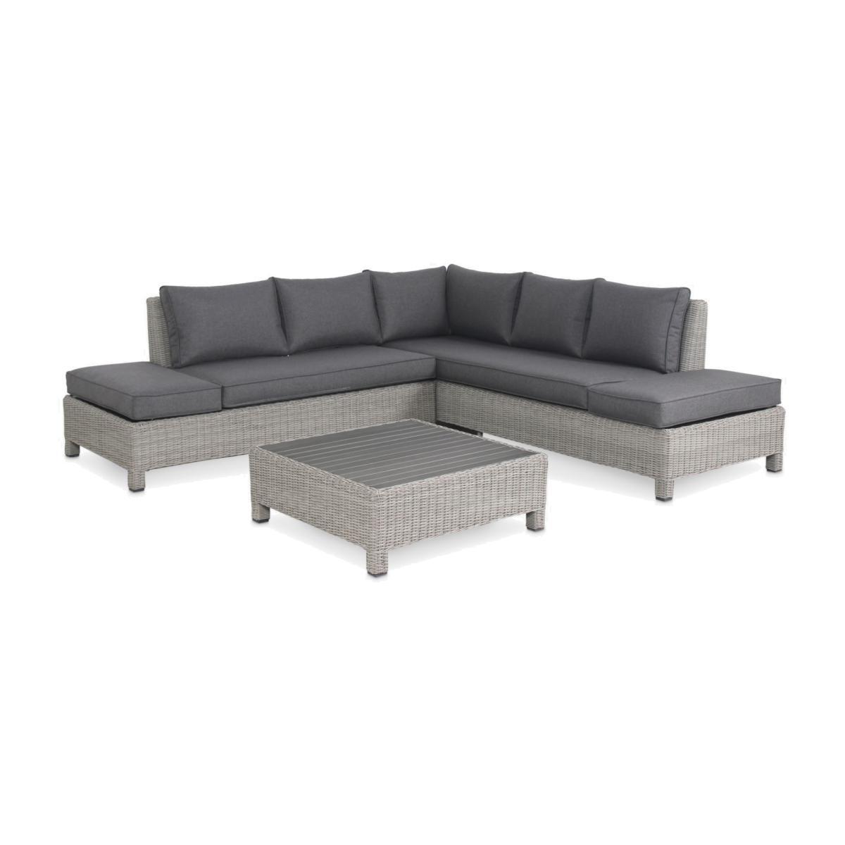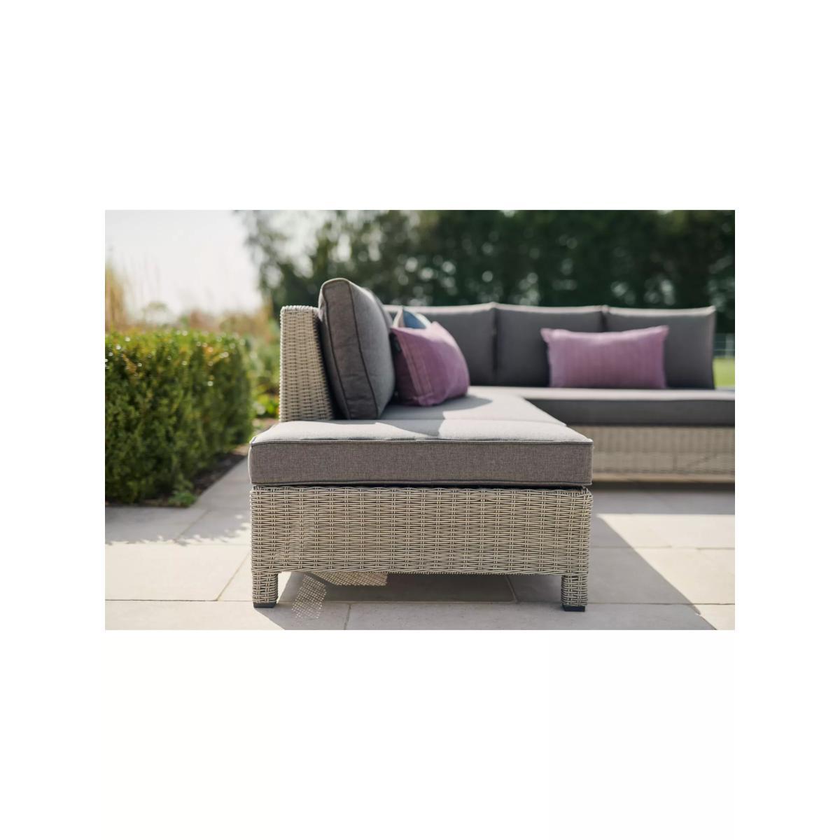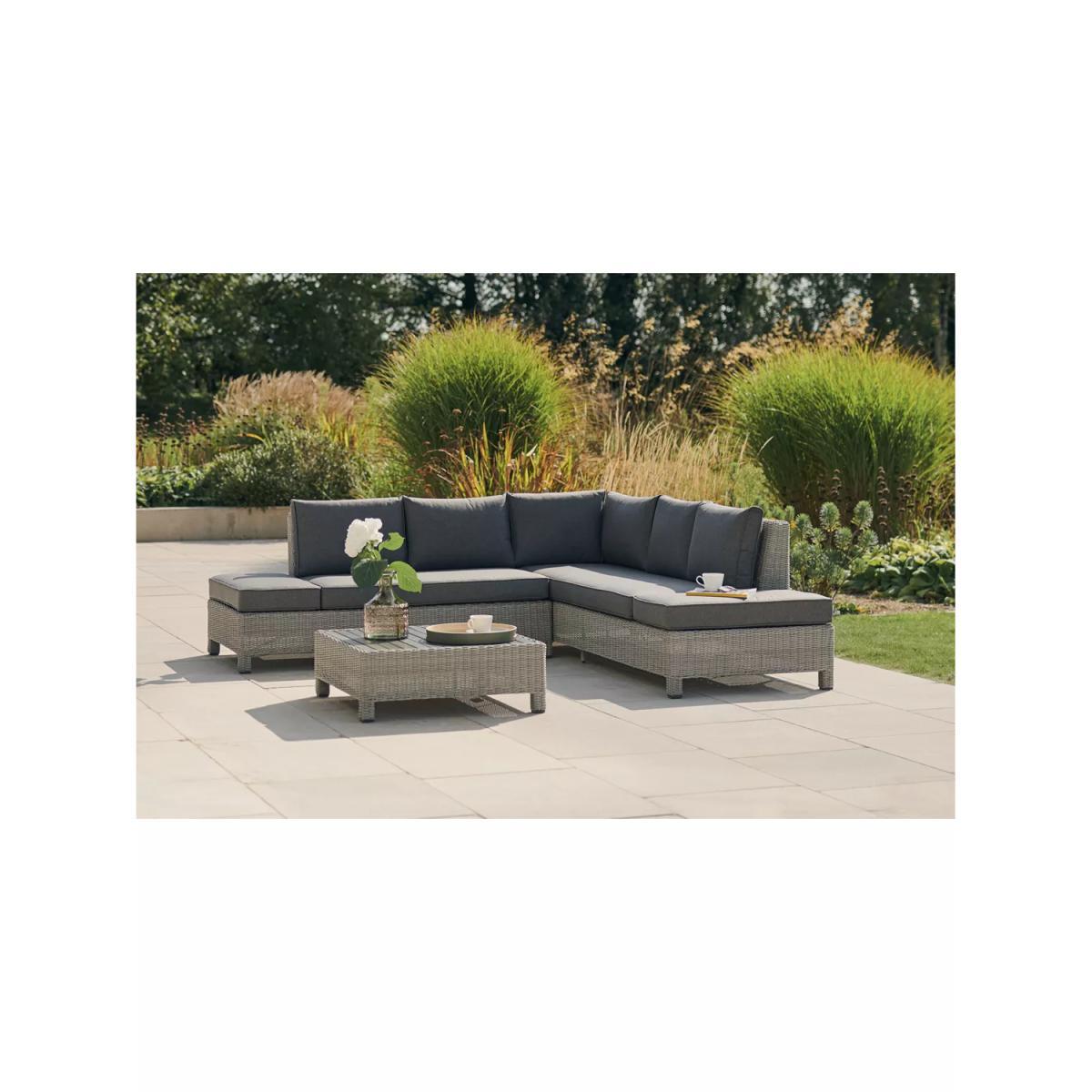 A versatile Palma garden lounging set, with seating for up to five people. The corner set includes a three-seater sofa, two-seater sofa and a low coffee table. With style and durability at the heart of the design, KETTLER's Palma outdoor furniture is made of synthetic wicker with a rounded weave and traditional rattan look. Key features: Square garden coffee table 3-seater sofa, 2-seater sofa Traditional-style handwoven synthetic wicker Weatherproof, rustproof and UV-resistant Lightweight yet robust aluminium frames Comfortable shower-resistant cushions Easy to maintain Mix and match with other furniture in the Palma range Square coffee table The aluminium table has a painted wood-effect slatted table top, creating a natural feel that matches the sofa end side tables. Remove the cushions from the sofa ends to show the side tables and place the cushions on the coffee table to create a comfortable footrest. Durable and weatherproof Built to last, the set is made with lightweight yet sturdy powder-coated aluminium frames and handwoven synthetic wicker with a tight 5mm half-round weave. The set is weatherproof, rustproof and UV-resistant, so it can remain outdoors all year round without it fading or cracking. Low maintenance The set needs just an annual clean with mild soapy water (without abrasive solvents). The cushions are sponge clean only. If you wish to cover your furniture, a breathable cover can be used but make sure the furniture is dry before pulling it over the top. Soft and comfortable cushions The seating comes with soft, comfortable seat cushions and backrests that keep their shape. The double-piped cushions are shower-resistant and easy to remove. Bring them inside when not in use. Choose the perfect outdoor furniture We have a vast selection of furniture for you to choose from which will suit the home or garden. The majority of our furniture ranges have been hand woven using a synthetic wicker. The thinner the weave, the longer it takes for the skilled workers to complete. All weave types are durable so they'll last throughout the seasons. All woven outdoor furniture is UV protected so it will not fade in direct sunlight. All woven outdoor furniture is easy to maintain, simply wipe clean using warm water Flat. A weave of various widths which offers incredible value for money Half round. More detailed with a 3D effect, the half round is a round weave in half which displays a wicker appearance on the top and hollowed underside Double half round. A double strand of half round, this is a wider width of weave which achieves an expensive appearance. Round weave. A very tight weave which is available in various widths, from 2mm to 5mm Rope A selection of our ranges have been made using rope. The yarn is made up of 10,000 (approx) woven strands with a double core for extreme strength, does not attract mould even if wet for a long time and is UV resistant. Want to see it first? You may want to see and get a feel for the product in one of our shops before ordering. We'll be able to tell you where the range you'd like to view is on display.
